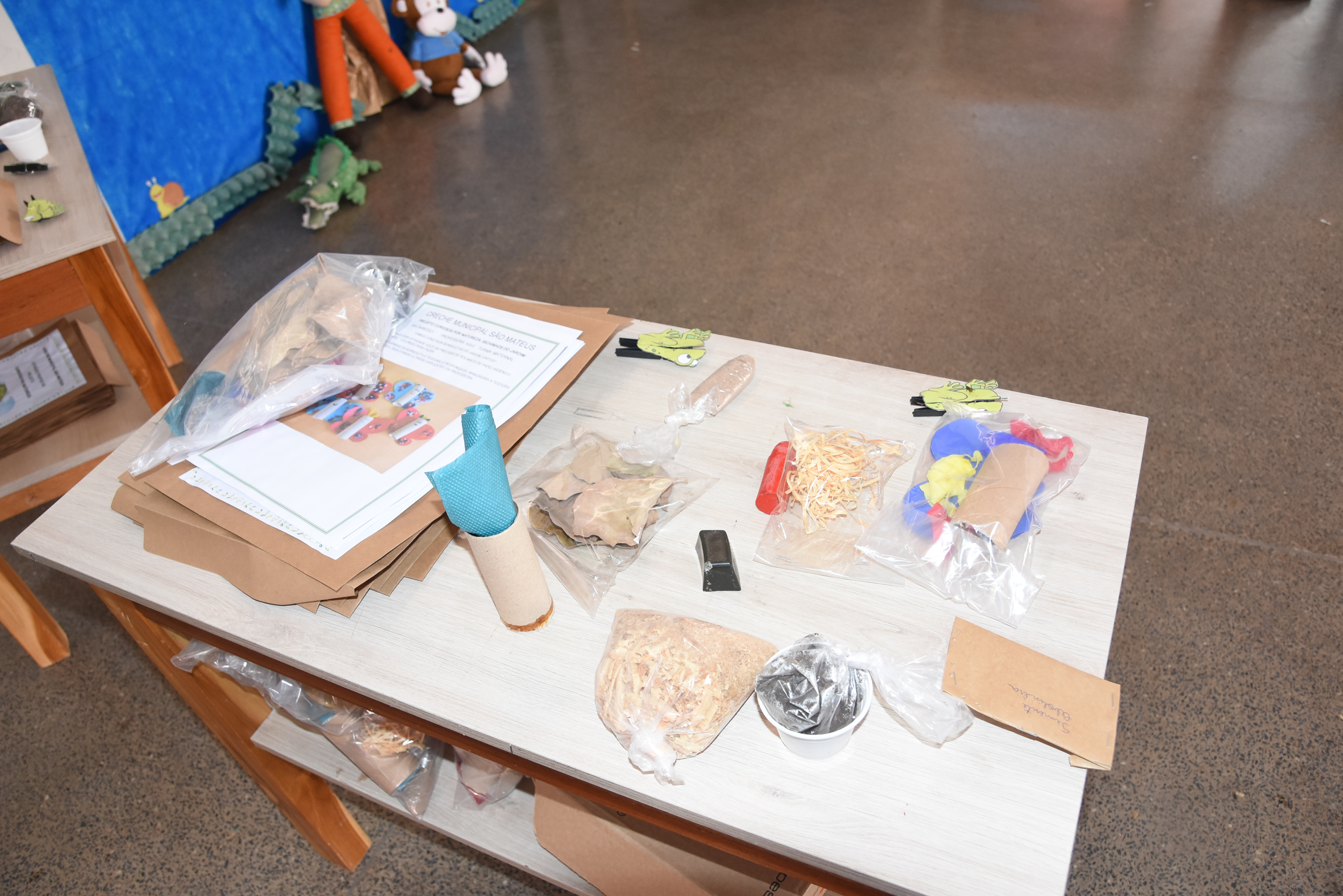 De acordo com o planejamento pedagógico, as crianças estão trabalhando com temas como preservação da natureza e o lixo, animais, plantas e bichinhos do jardim.