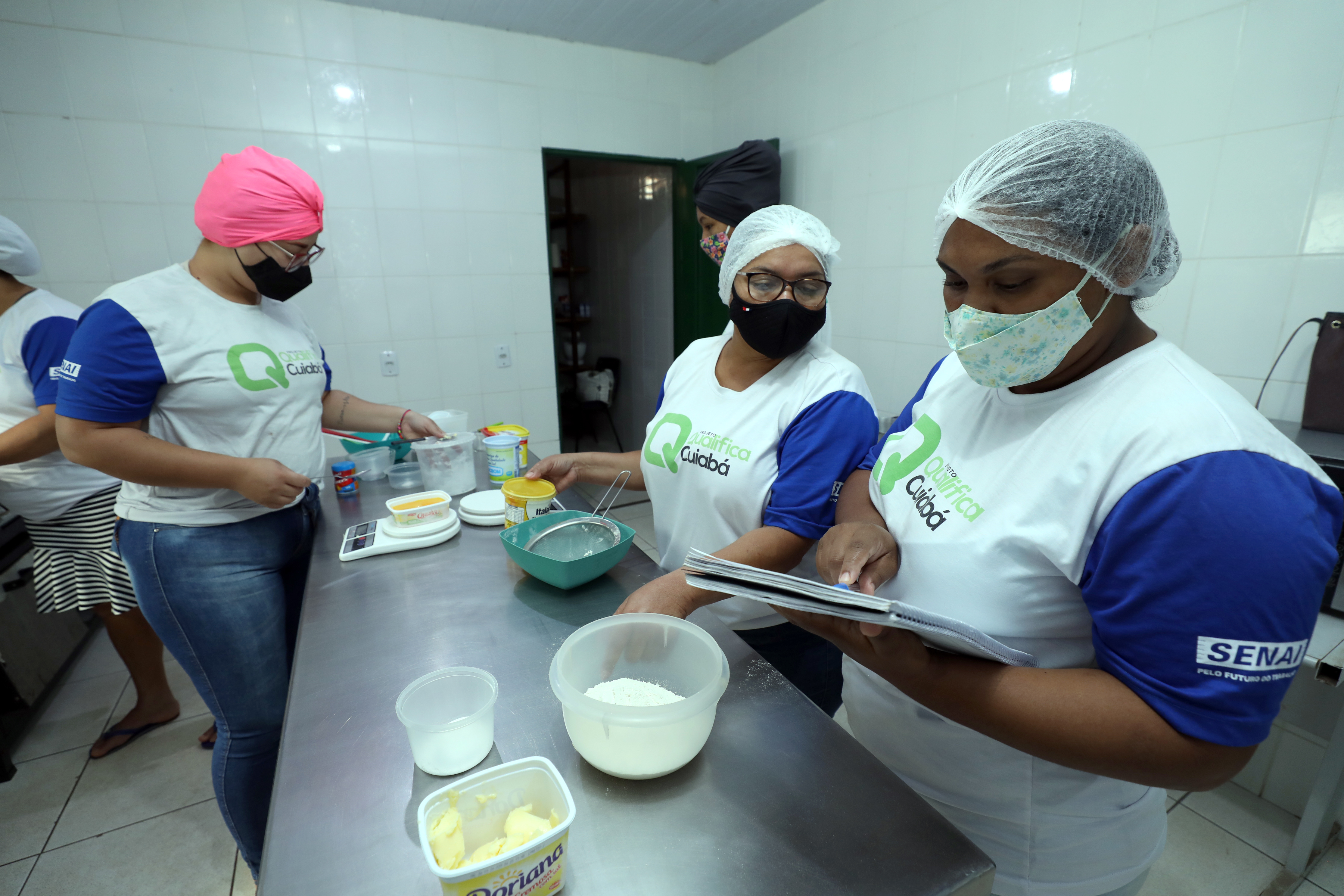 A professora especialista na área da Confeitaria, Célia Ferreira Batista, faz parte da equipe do programa Qualifica Cuiabá desde a sua criação, em 2019. Lembra que durante esse período já capacitou dez turmas, disponibilizando ao mercado, pelo menos, cem novos profissionais. “Muitos alunos chegam pensando que a confeitaria se resumia em apenas bolos confeitados, mas muito pelo contrário, a área é bem ampla e podem ser confeccionados, bolos, doces, pães, entre outros”, avaliou a professora.