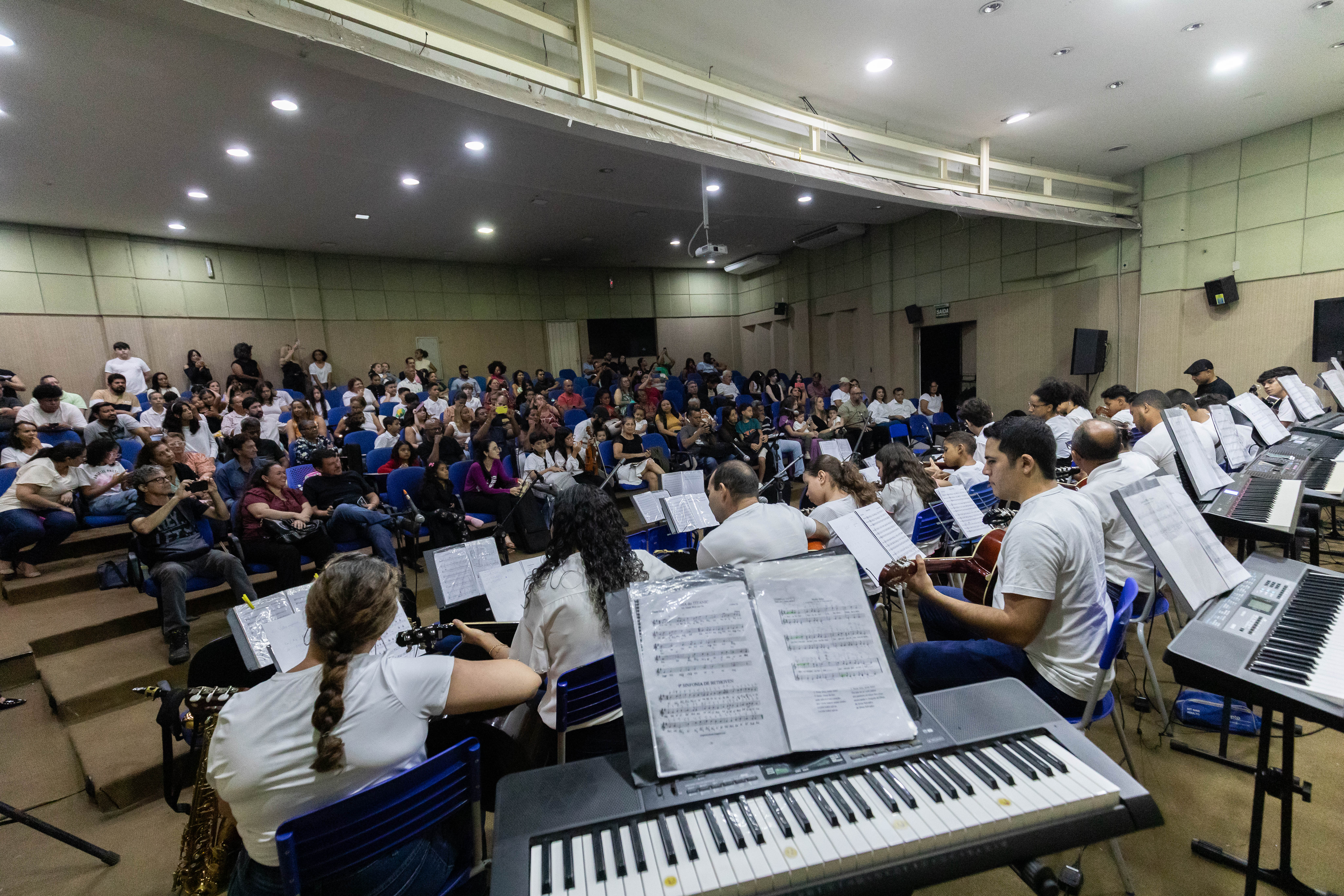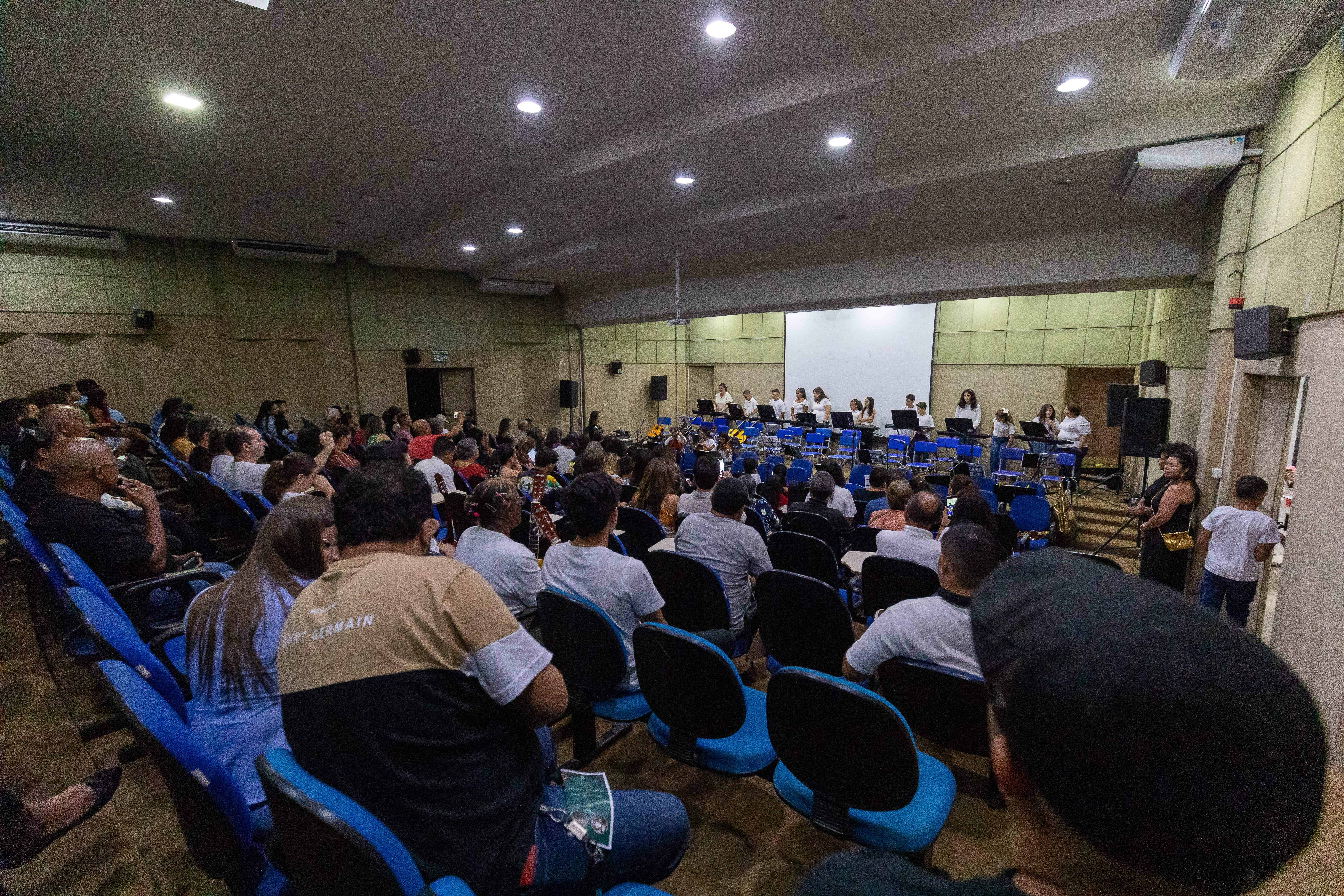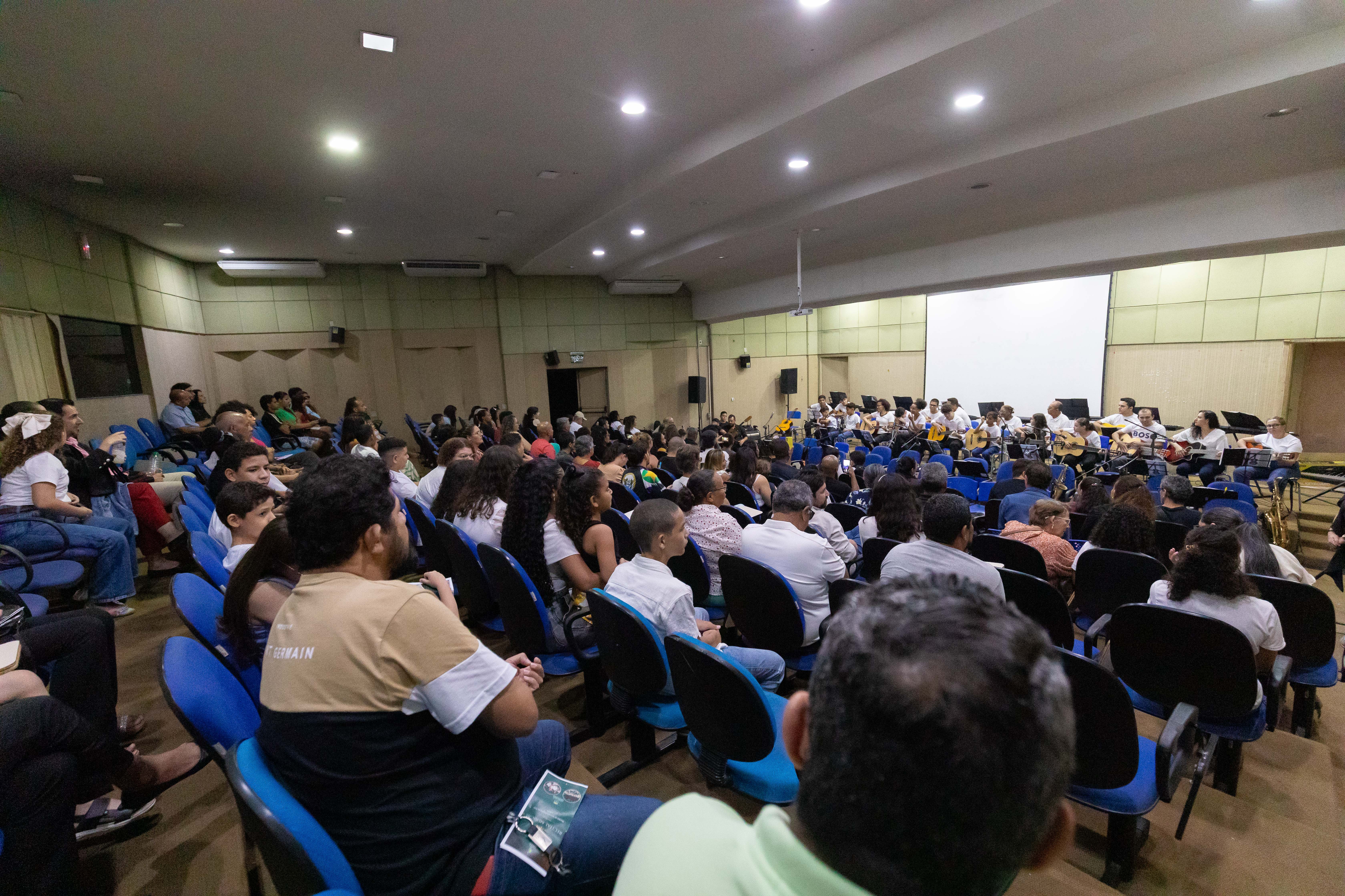 Já pensando em 2026, a Escola Municipal de Música da Prefeitura de Cuiabá, coordenada pela Secretaria Municipal de Cultura, emocionou o público, pais e professores com a apresentação do Recital Anual de fim de ano. Cerca de 50 alunos iniciantes, intermediários e alguns há mais tempo, liderados pelos professores especialistas em música, deram uma demonstração de que o aprendizado não tem idade e que a música integra, socializa e faz bem para o coração. O espetáculo foi realizado na quarta-feira (3), no Colégio Estadual Militar Dom Pedro II, na Av. Mato Grosso. Entre os participantes, realização de sonhos, superação e amor à música.