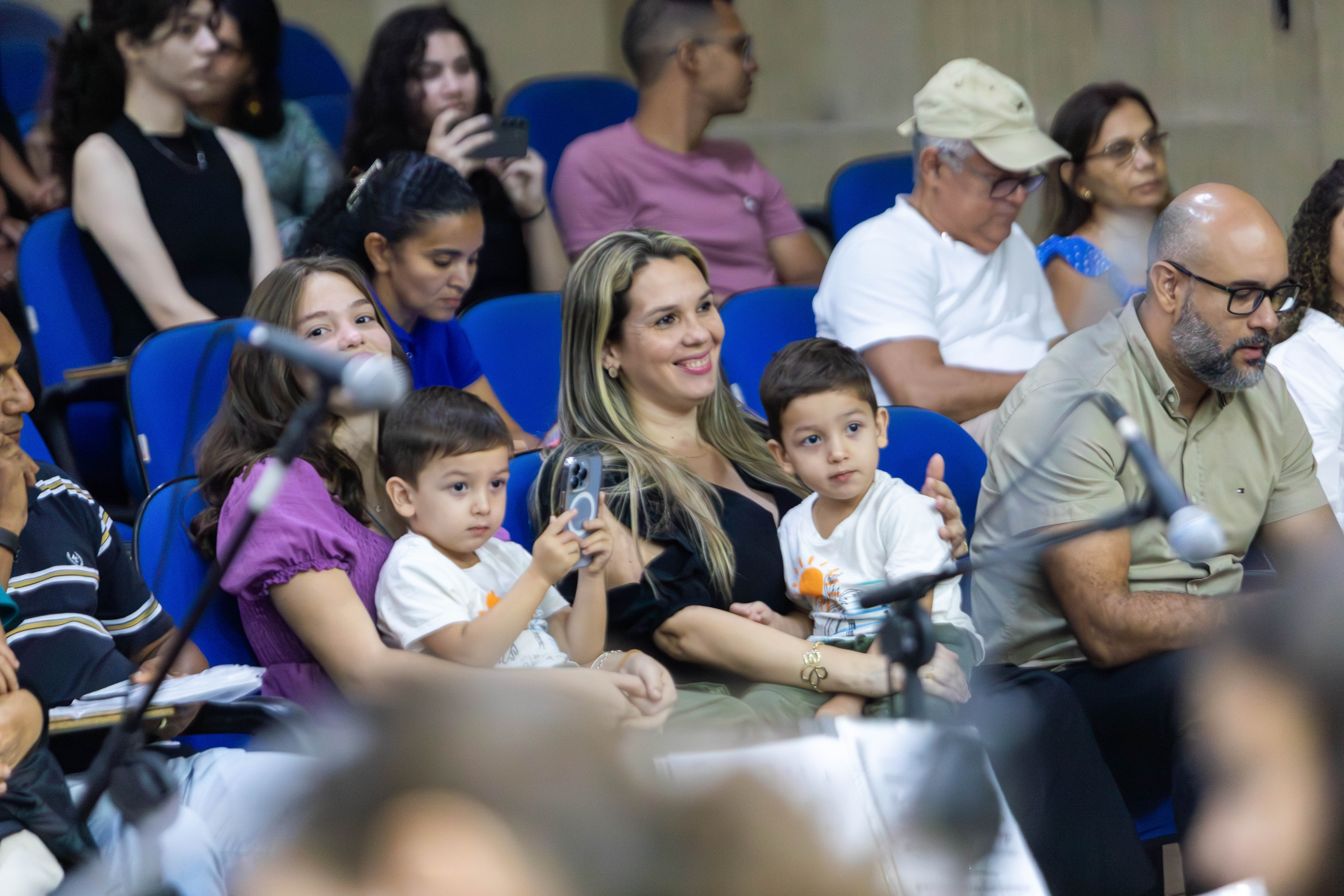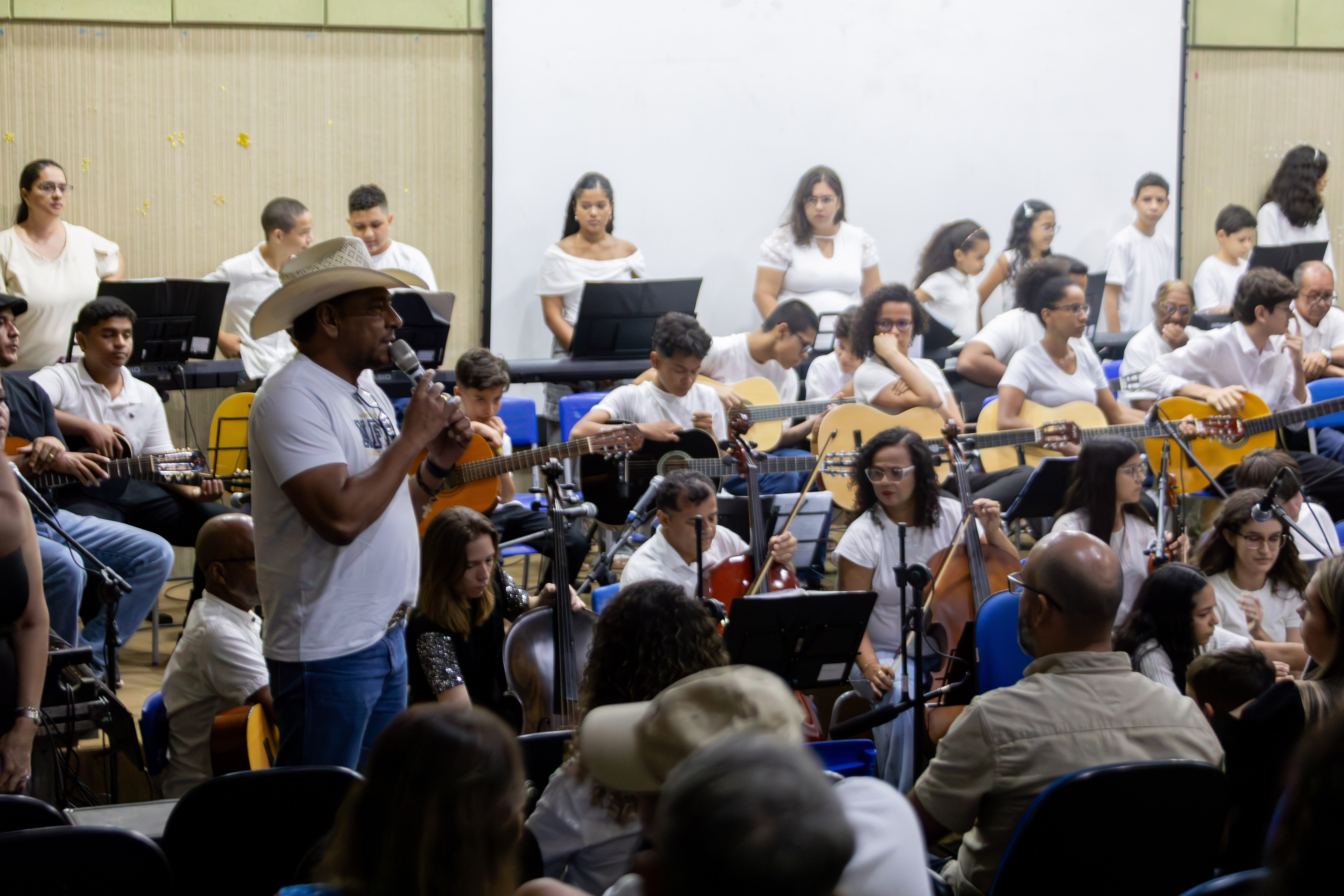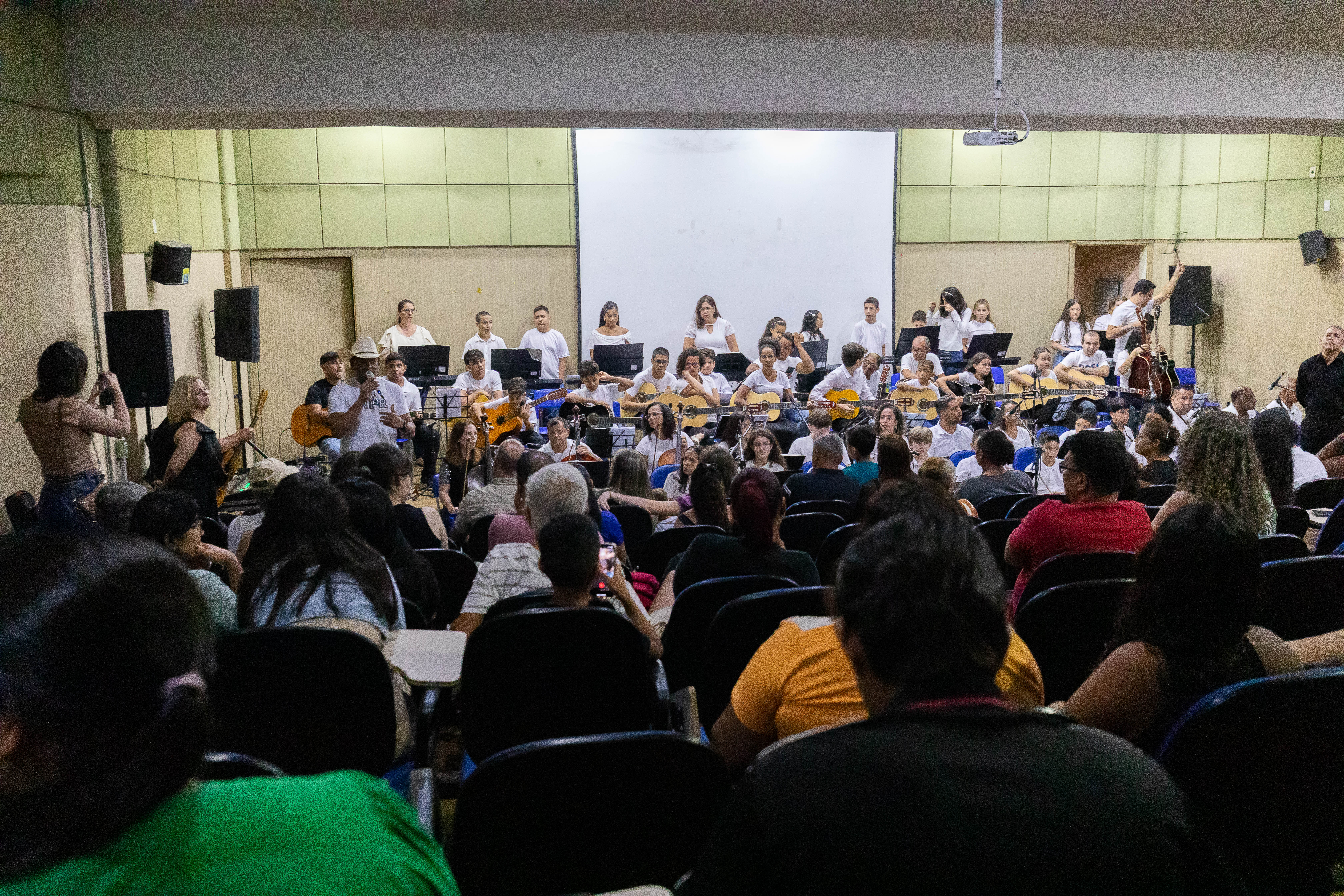 Também agradeceu às famílias que prestigiaram e ao público que compareceu para prestigiar o Recital, porque “sem vocês não teria sentido”, pontuou, lembrando do coordenador Neto Morais e da secretária-adjunta de Cultura, Vilmara Vidica, a quem fez questão de ressaltar que ela tem conexão total com o setor da cultura popular, com o setor da música, e tem trabalhado arduamente para que o projeto não só se mantenha, mas alcance outras escolas da cidade e amplie o número de vagas para mais crianças e adolescentes.