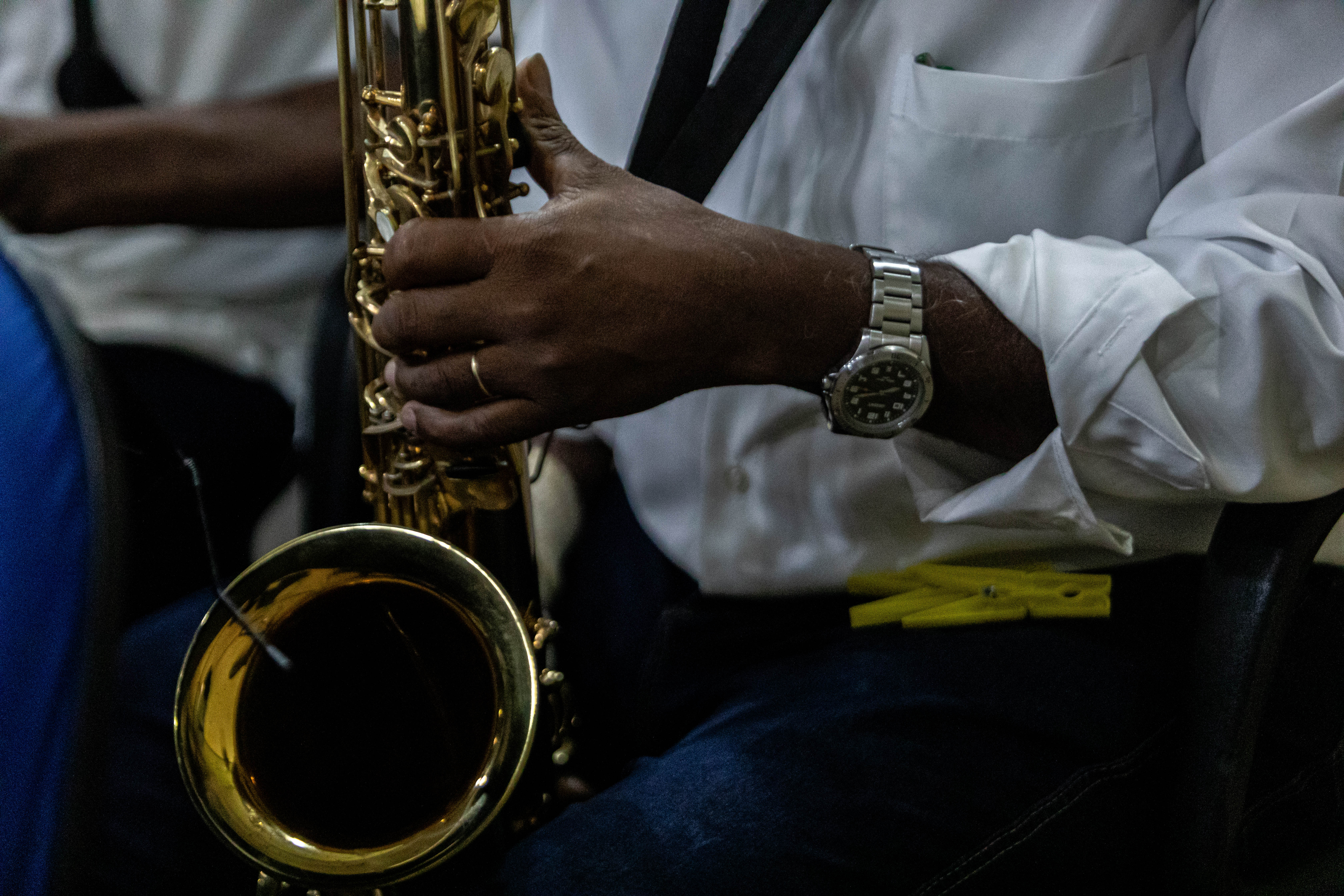 O servidor público da rede municipal, Odovaldo Forte Daltro Júnior, depois de 20 anos com o saxofone guardado, voltou a tocar a convite do professor Fernando Reis, depois de acompanhar as apresentações de seus dois filhos, José Augusto, 13 anos, e João Lucas, de 11 anos, que tocam flauta. “Acabei aceitando o convite e comecei a tocar saxofone há cerca de um mês. Achei que estaria super enferrujado para tocar, mas com a ajuda do professor me dei bem. Hoje estou realizando um sonho, porque eu tinha 10, 12, 15 anos, e parei por 20 anos, construí família, filhos, instrumento guardado, e com o sonho de um dia tocar junto com meus filhos. E deu certo, vamos estar tocando juntos. É uma emoção fantástica, que transborda”.