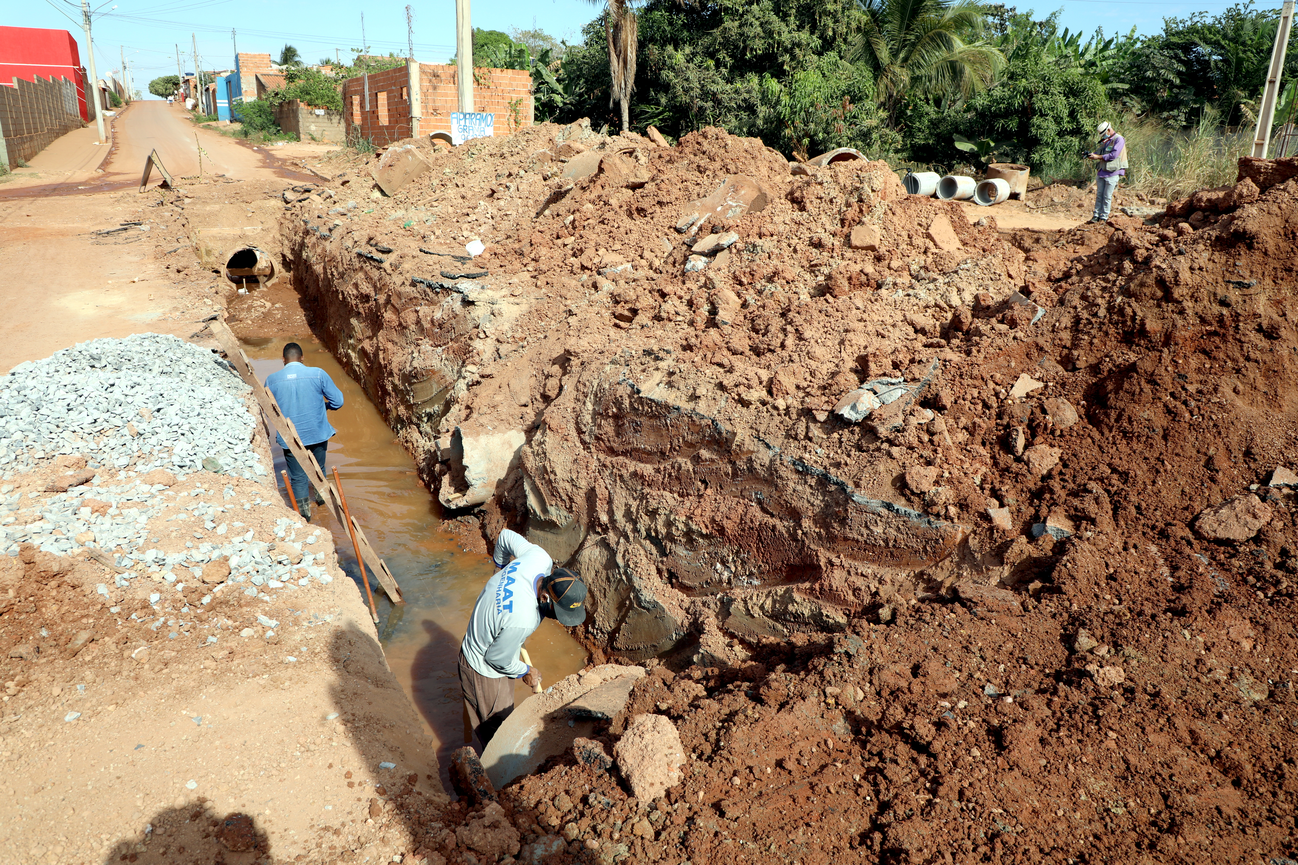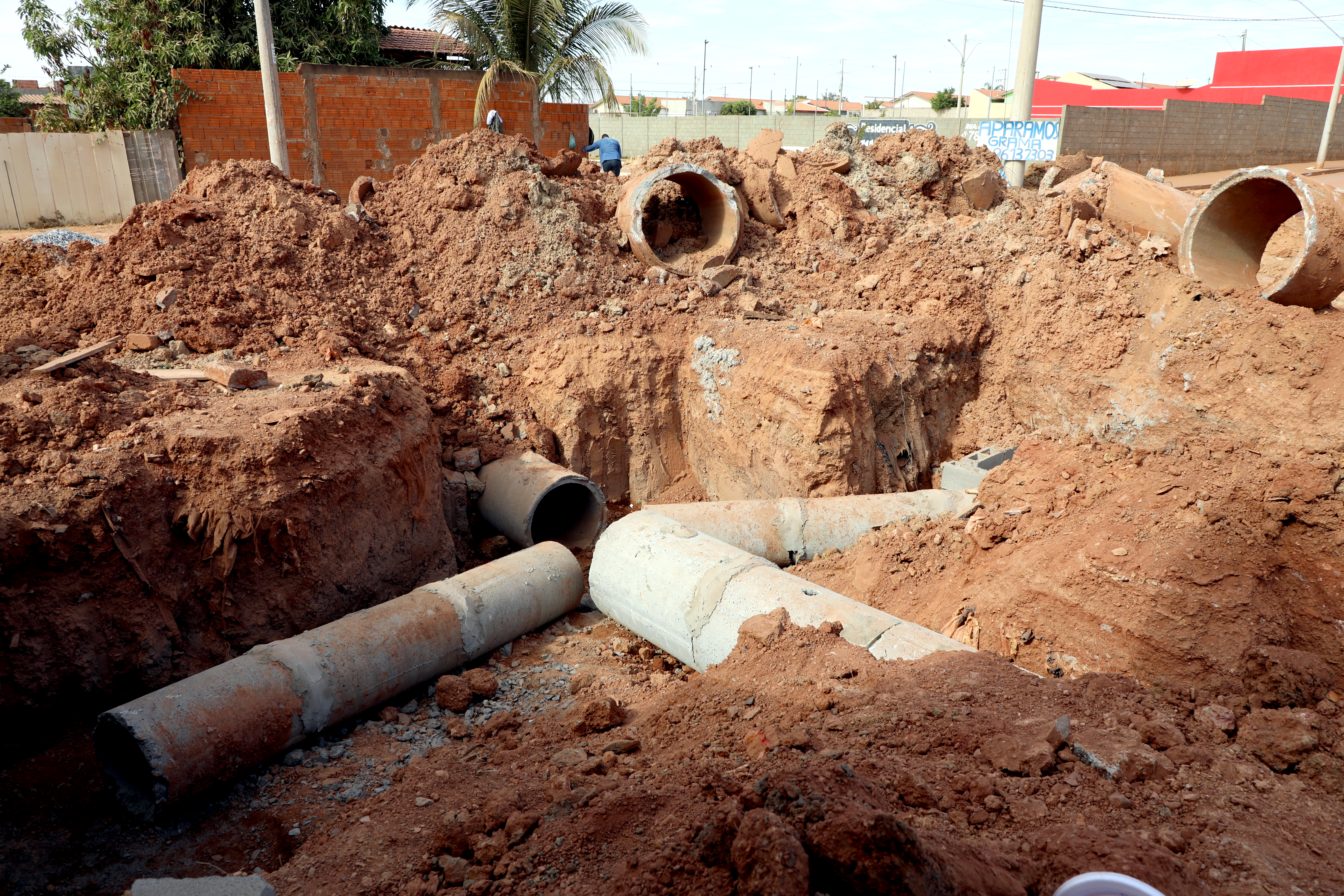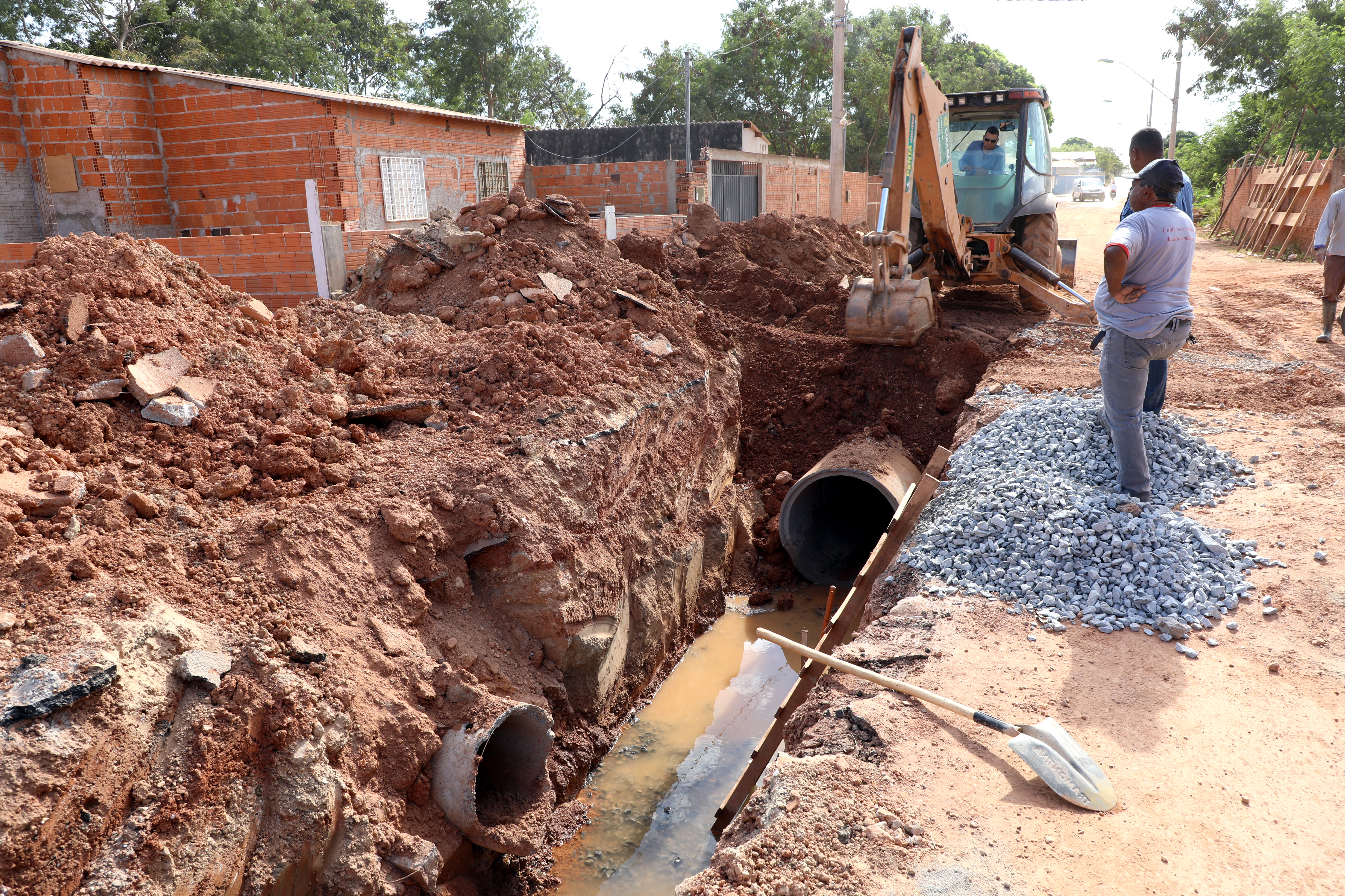 Reconstrução da rede de drenagem em via do Serra Dourada eliminará problema de alagamento
