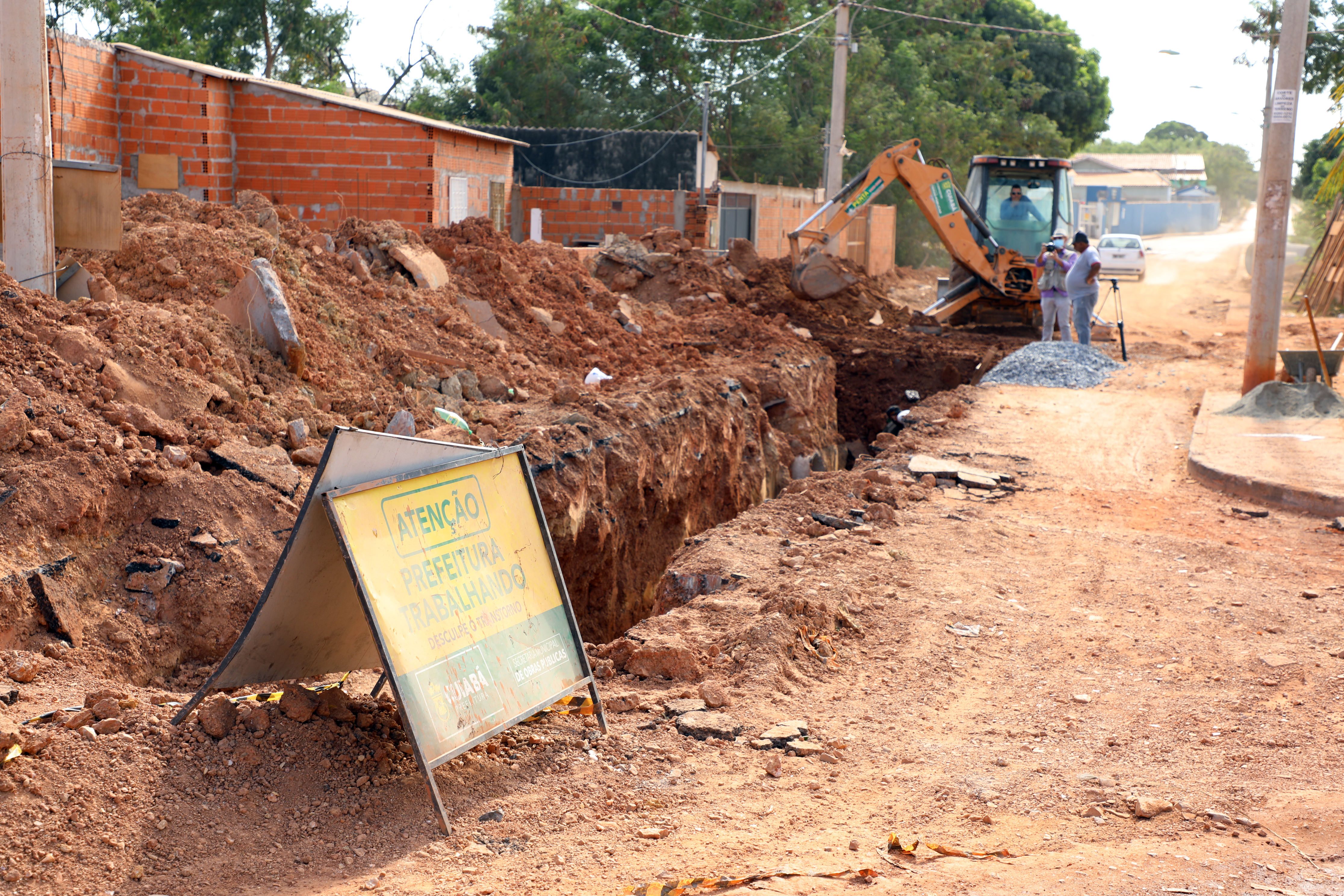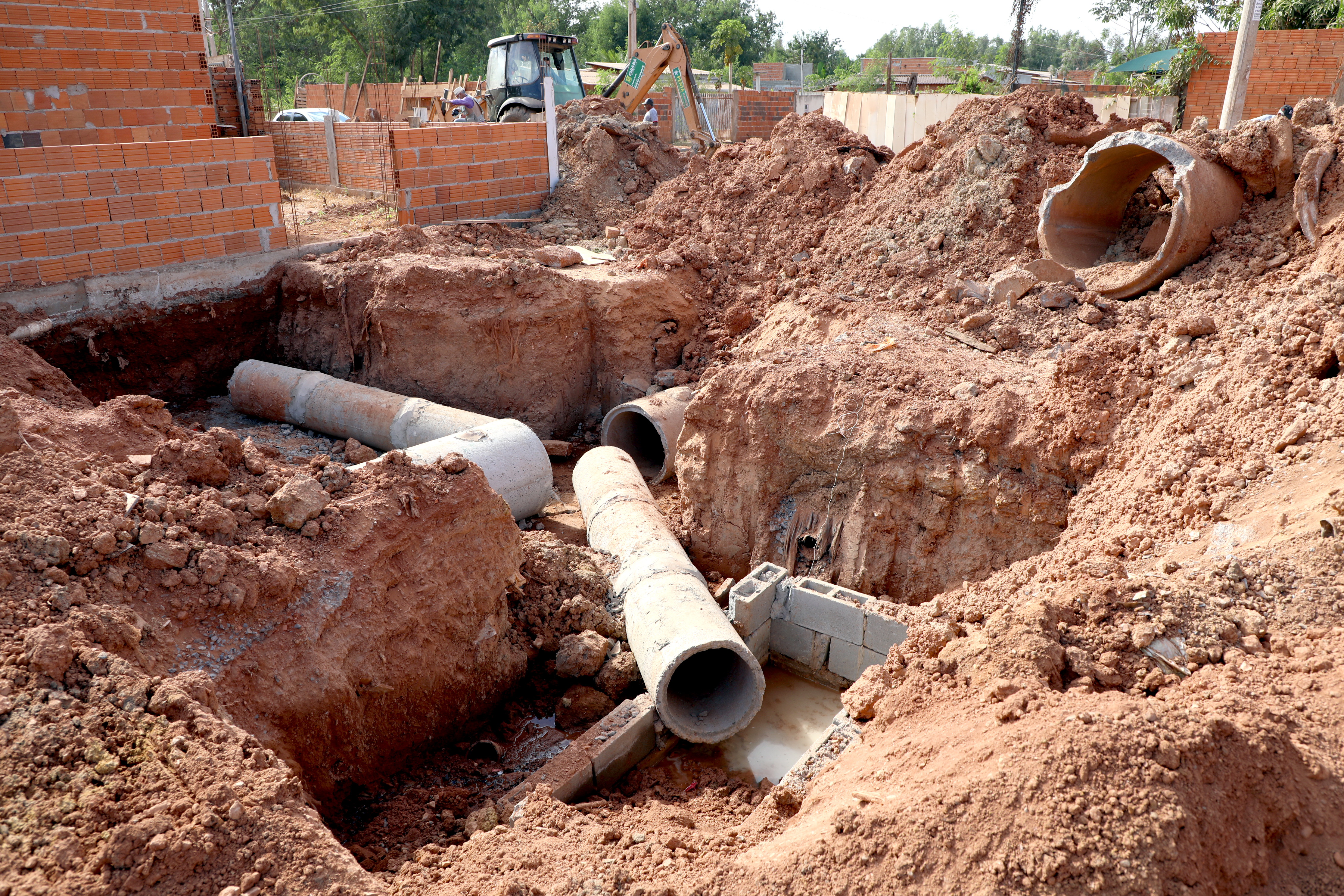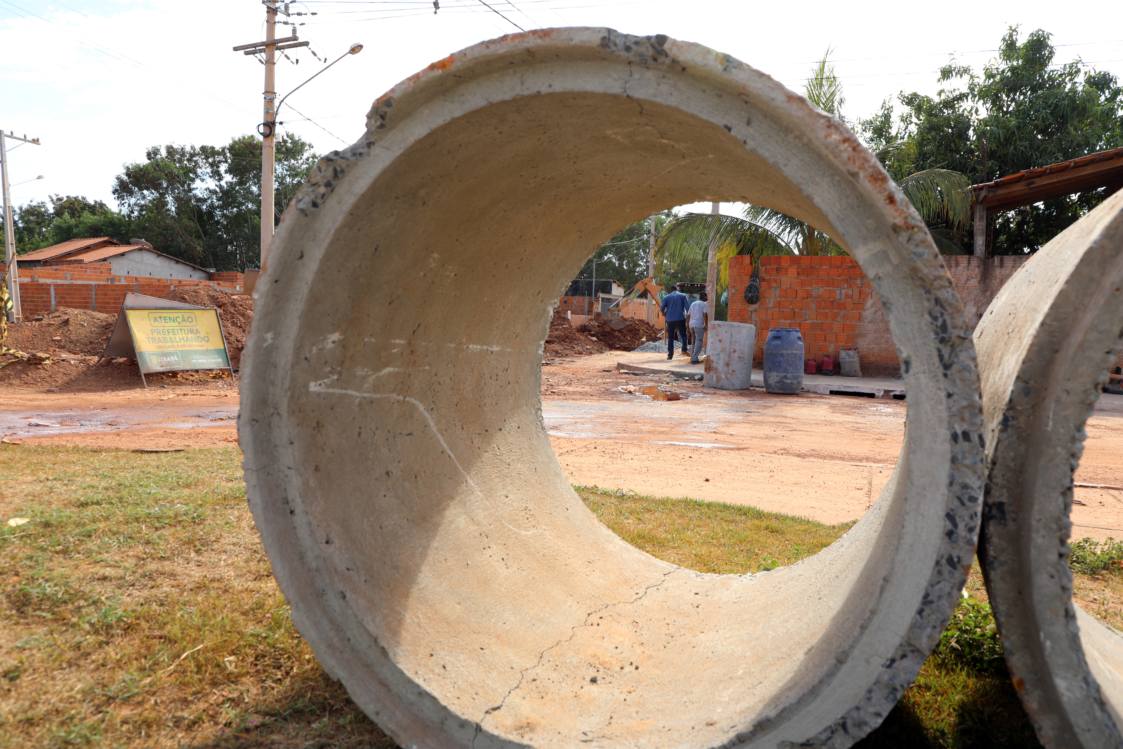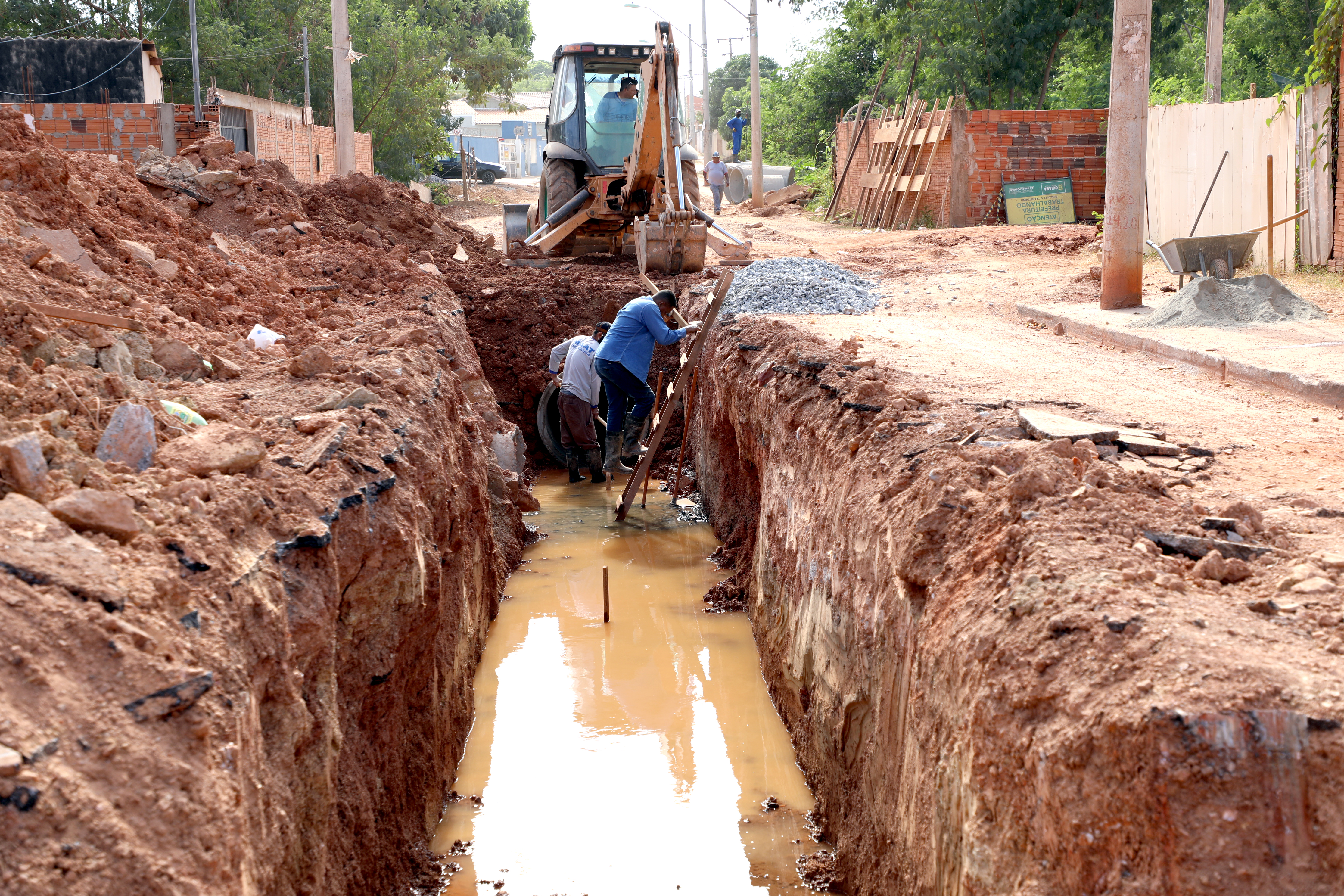 Reconstrução da rede de drenagem em via do Serra Dourada eliminará problema de alagamento