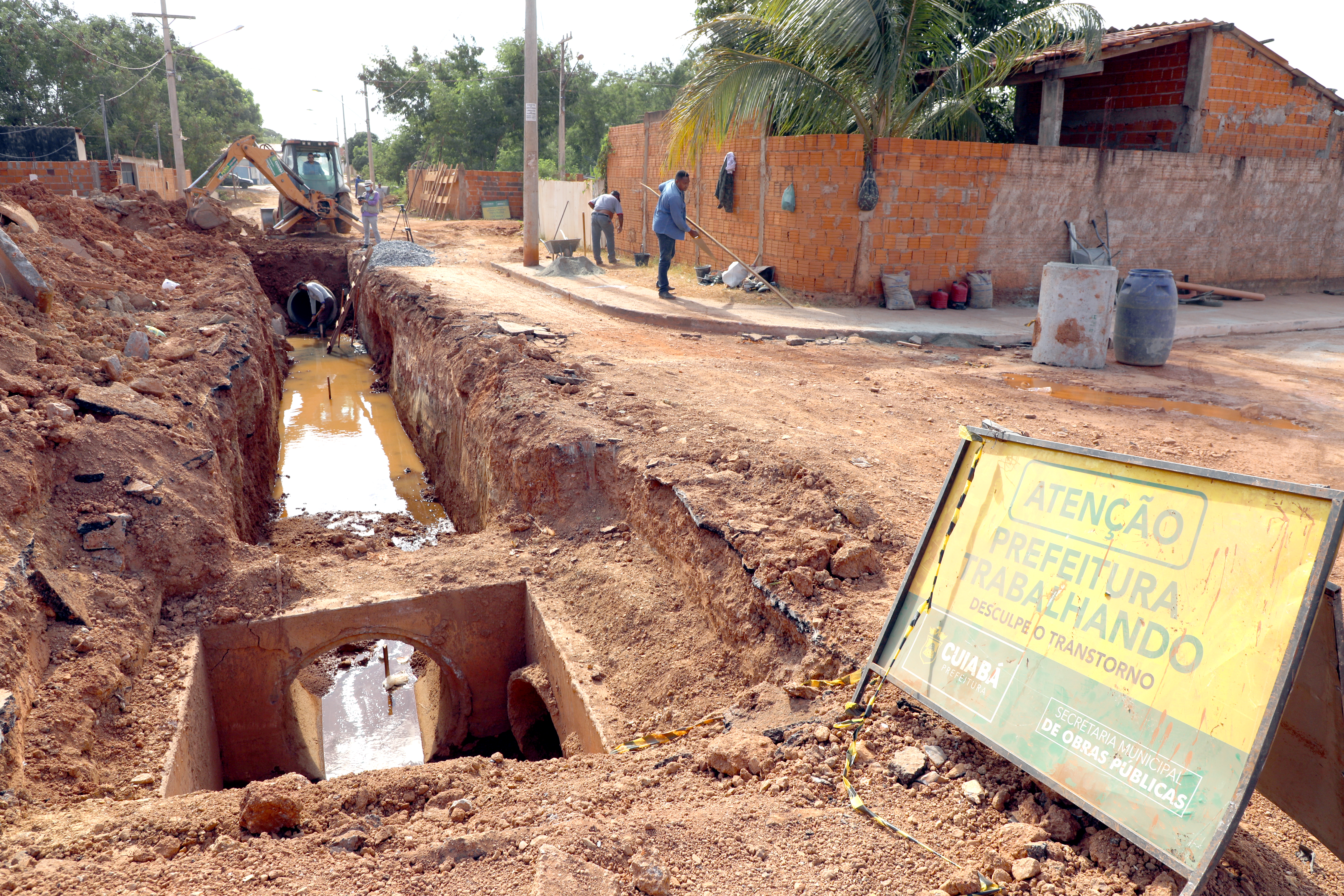 A Prefeitura de Cuiabá está trabalhando para solucionar mais um problema de alagamento identificado pelo mapeamento da Secretaria Municipal de Obras Públicas. Desde o início desse mês de julho, uma equipe está atuando na Rua das Violetas, localizada entre o bairro Serra Dourada e o Residencial Serra Azul.