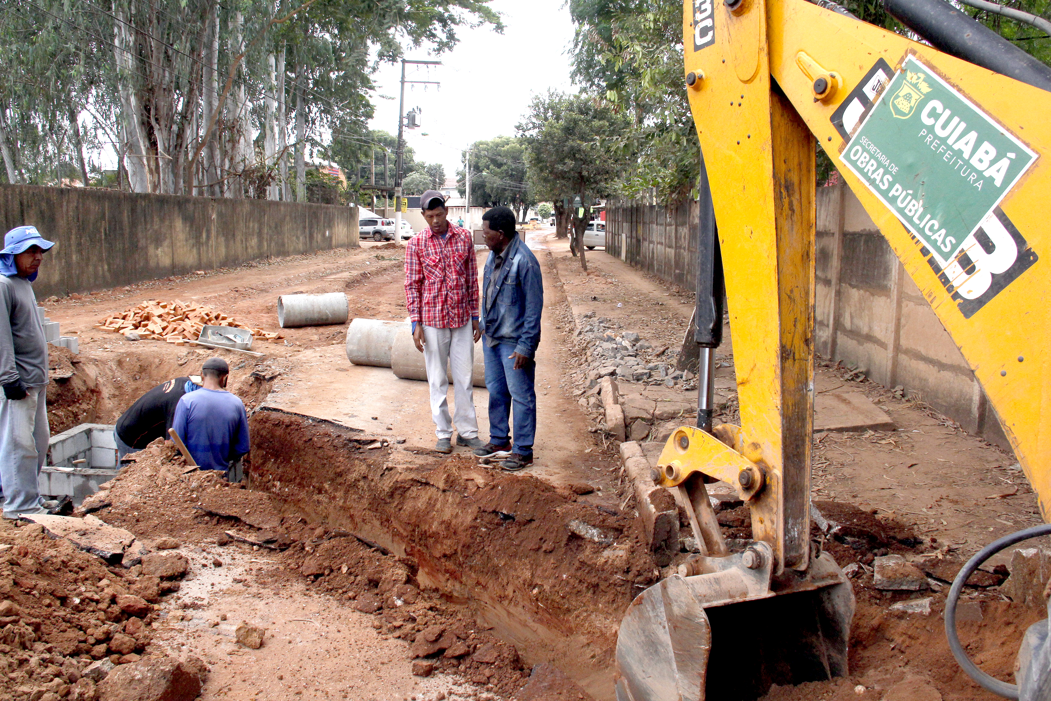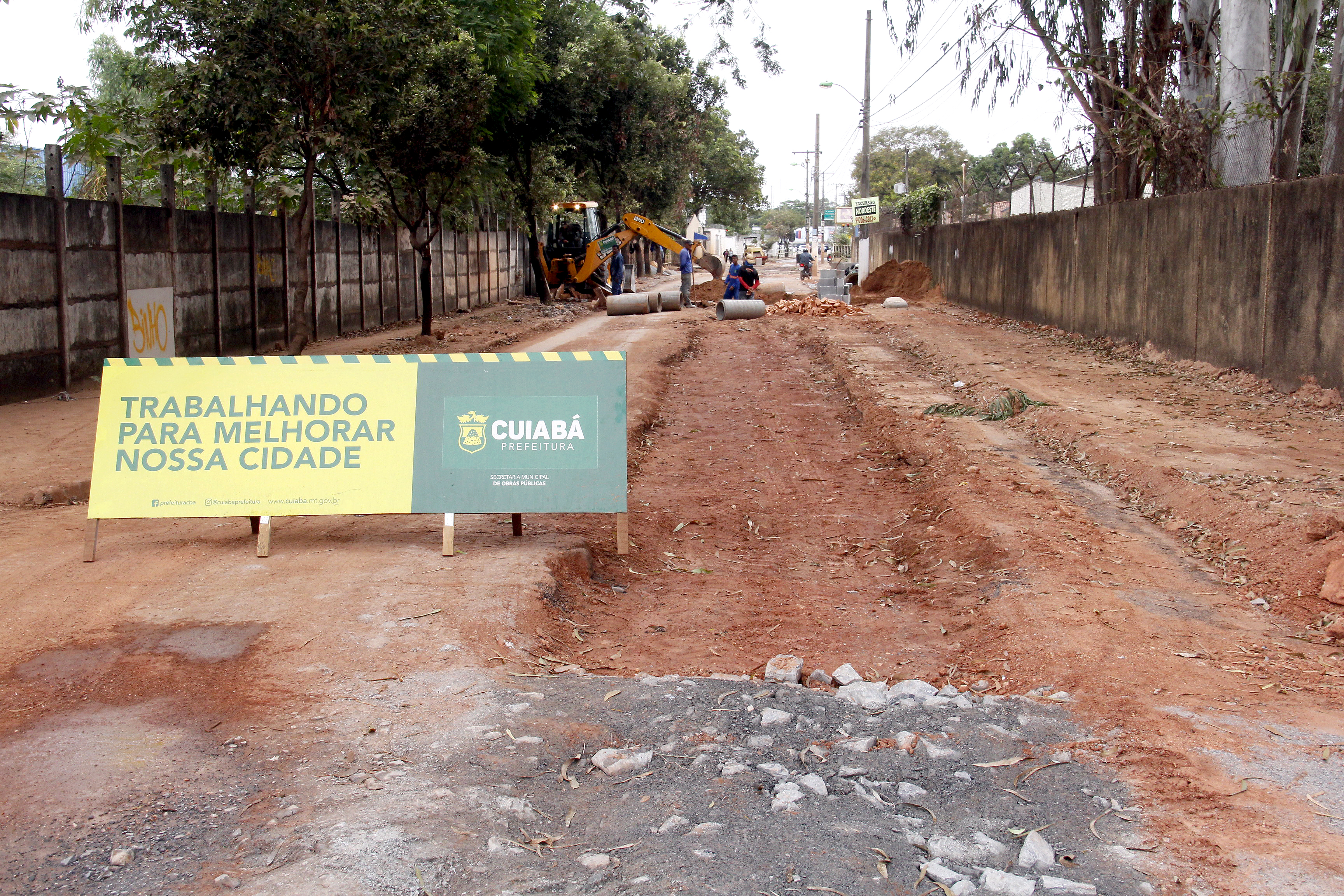 Tomando como ponto de partida o entroncamento com a Rua Projetada, a obra de reconstrução do sistema de drenagem da Avenida Pau Brasil avança de forma célere. O trabalho foi iniciado pela Prefeitura de Cuiabá no mês de abril e tem como objetivo corrigir uma falha no escoamento de água na via que faz a ligação dos bairros Chácara dos Pinheiros e Jardim das Palmeiras à Avenida Fernando Corrêa da Costa.