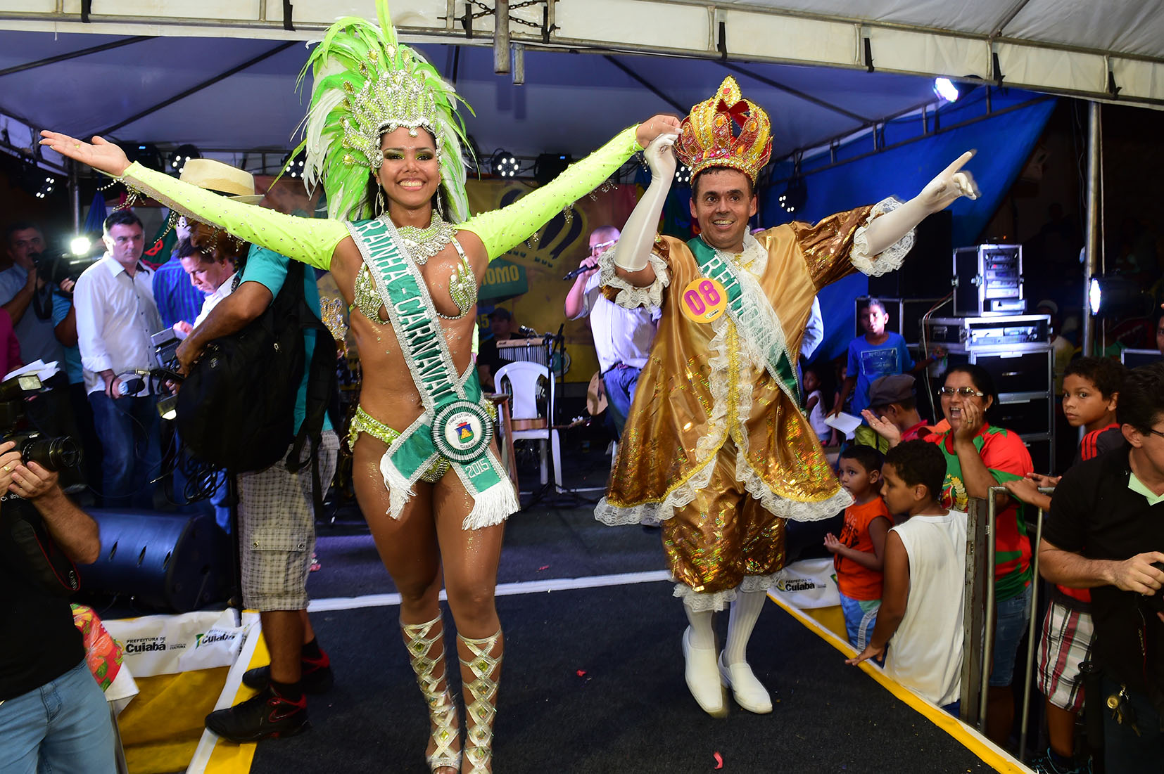 Os novos Rei Momo e Rainha do Carnaval 2015 foram coroados e aplaudidos na noite desta sexta-feira (30) por cerca de 3.500 foliões, que acompanharam os vencedores no ritmo do samba. Welly Gomes Miranda e Marcelo Augusto de Sá Costa acabam de iniciar seu reinado, que já causa fascínio no público pelo domínio na ponta dos pés e simpatia.