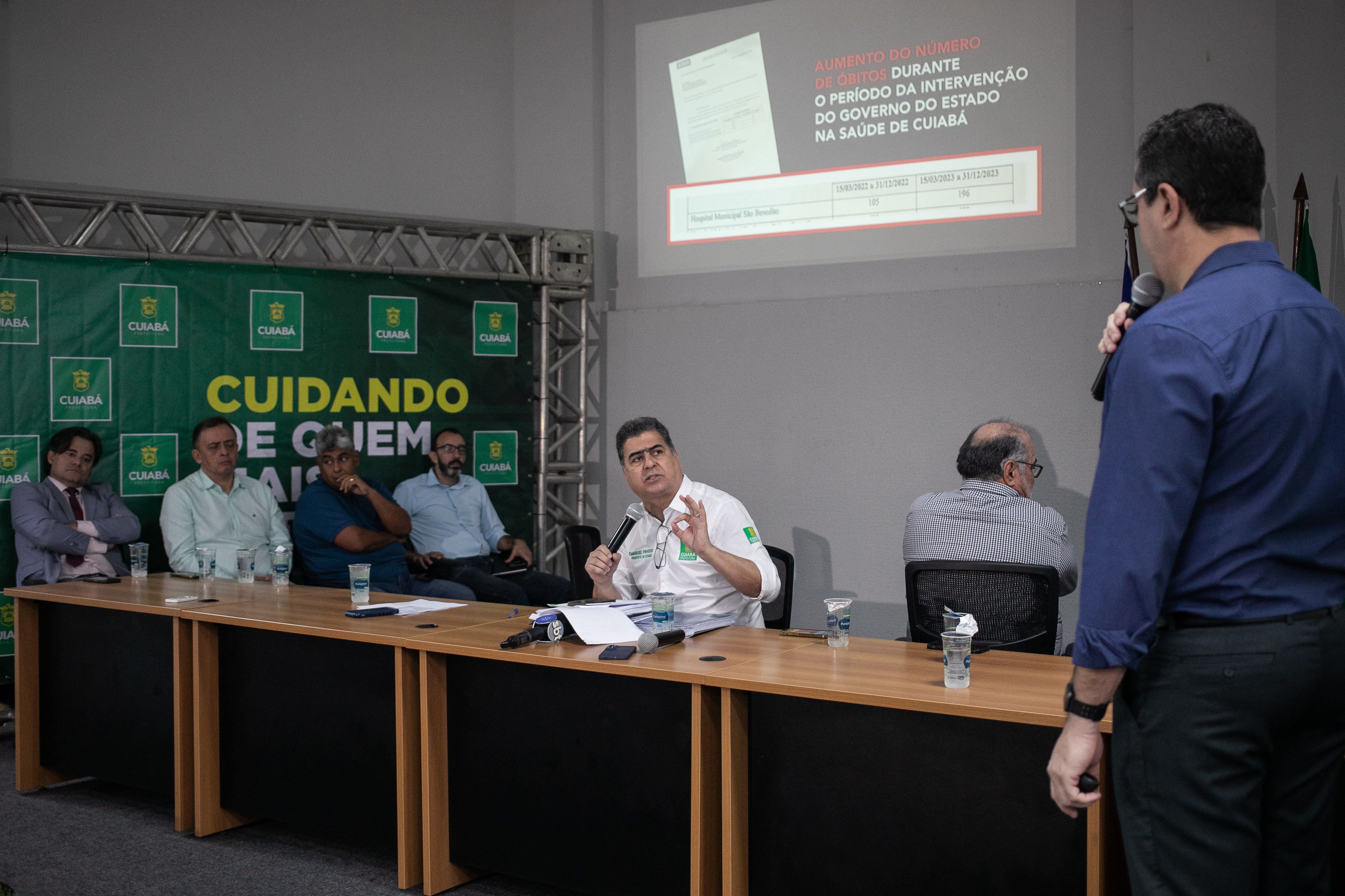 “Do pouco que nós já vimos, percebe-se que conseguiram acabar com a saúde de Cuiabá, desestruturaram a saúde, arrebentaram com a atenção primária, secundária e terciária, arrebentaram com a regulação. Em nove meses e meio, conseguiram a proeza leviana e irresponsável de aumentar em R$ 131 milhões a dívida do Município na saúde, não pagaram o passivo, receberam R$100 milhões do Estado a mais do que no meu período e conseguiram deixar com herança para Cuiabá, declarou o prefeito Emanuel Pinheiro.