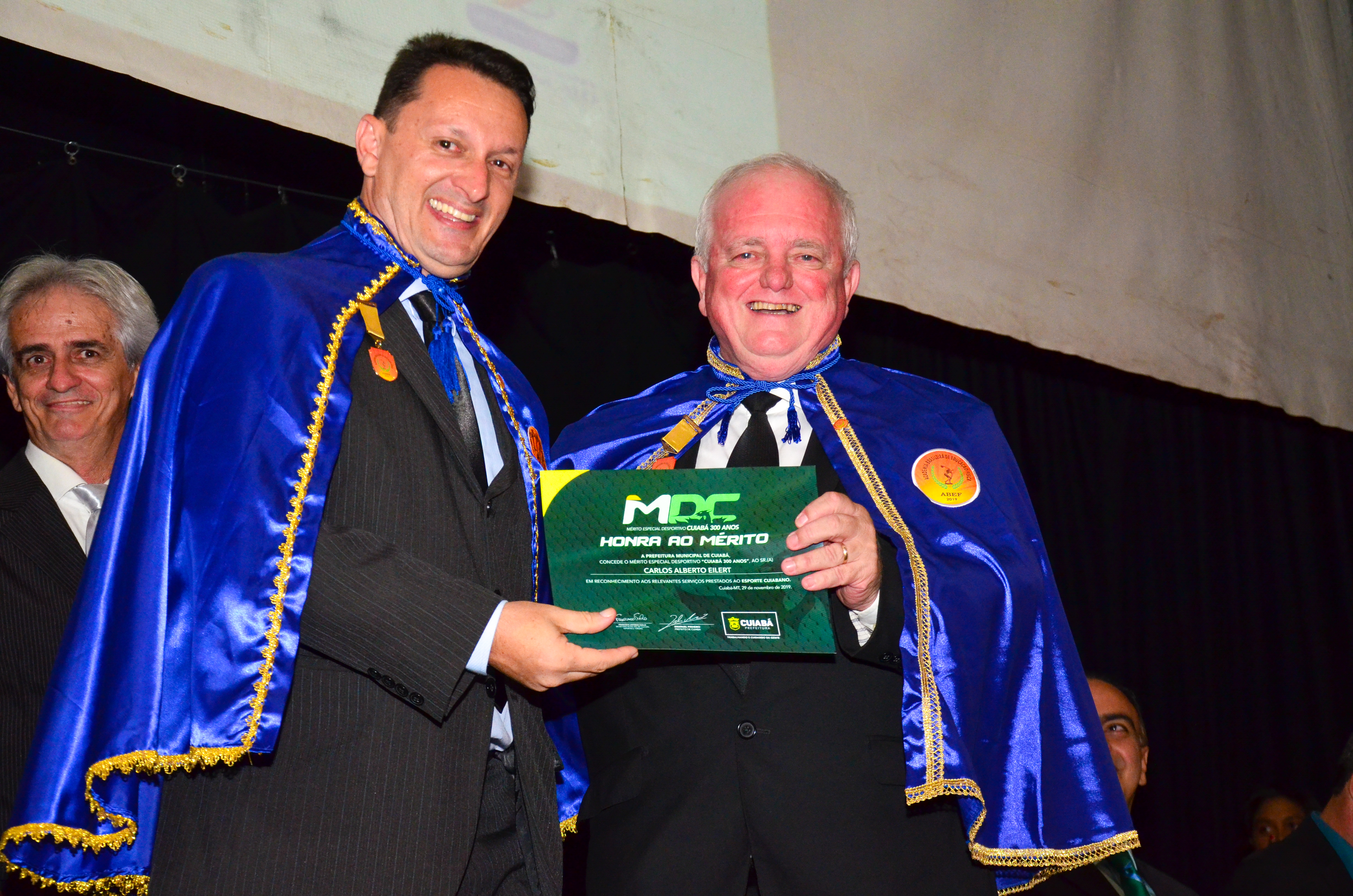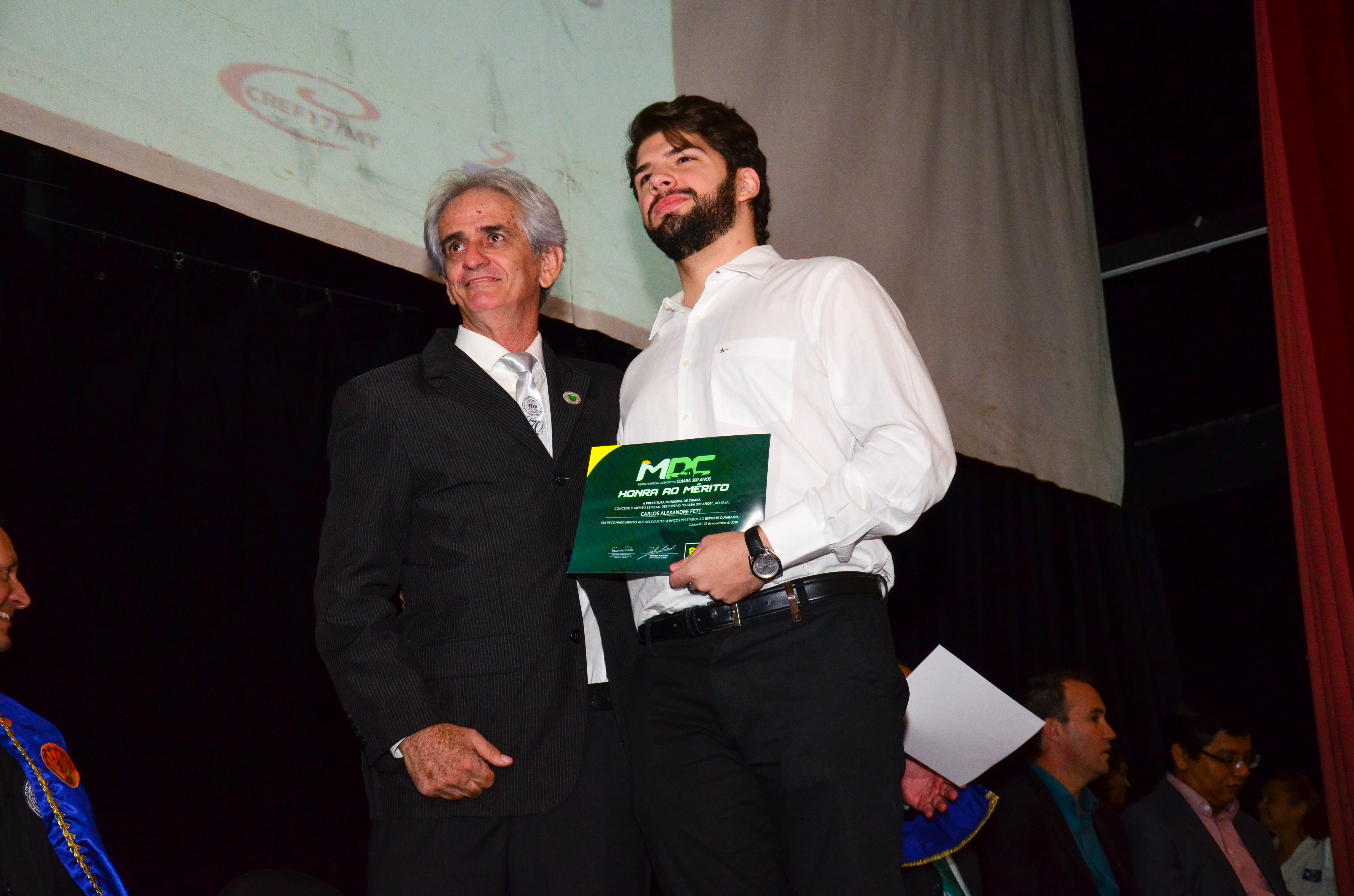 Um dos condecorados da noite foi o presidente do Conselho Regional de Educação Física de Mato Grosso (CREF-MT), o Prof. Me. Carlos Alberto Eilert. Com mais de 40 anos de dedicação à área, Eilert também foi empossado, na sexta-feira, como membro da Academia Brasileira de Educação Física (ABEF). O homenageado destacou como principal feito da instituição o combate aos diplomas falsos e, consequentemente, ao exercício ilegal da profissão.