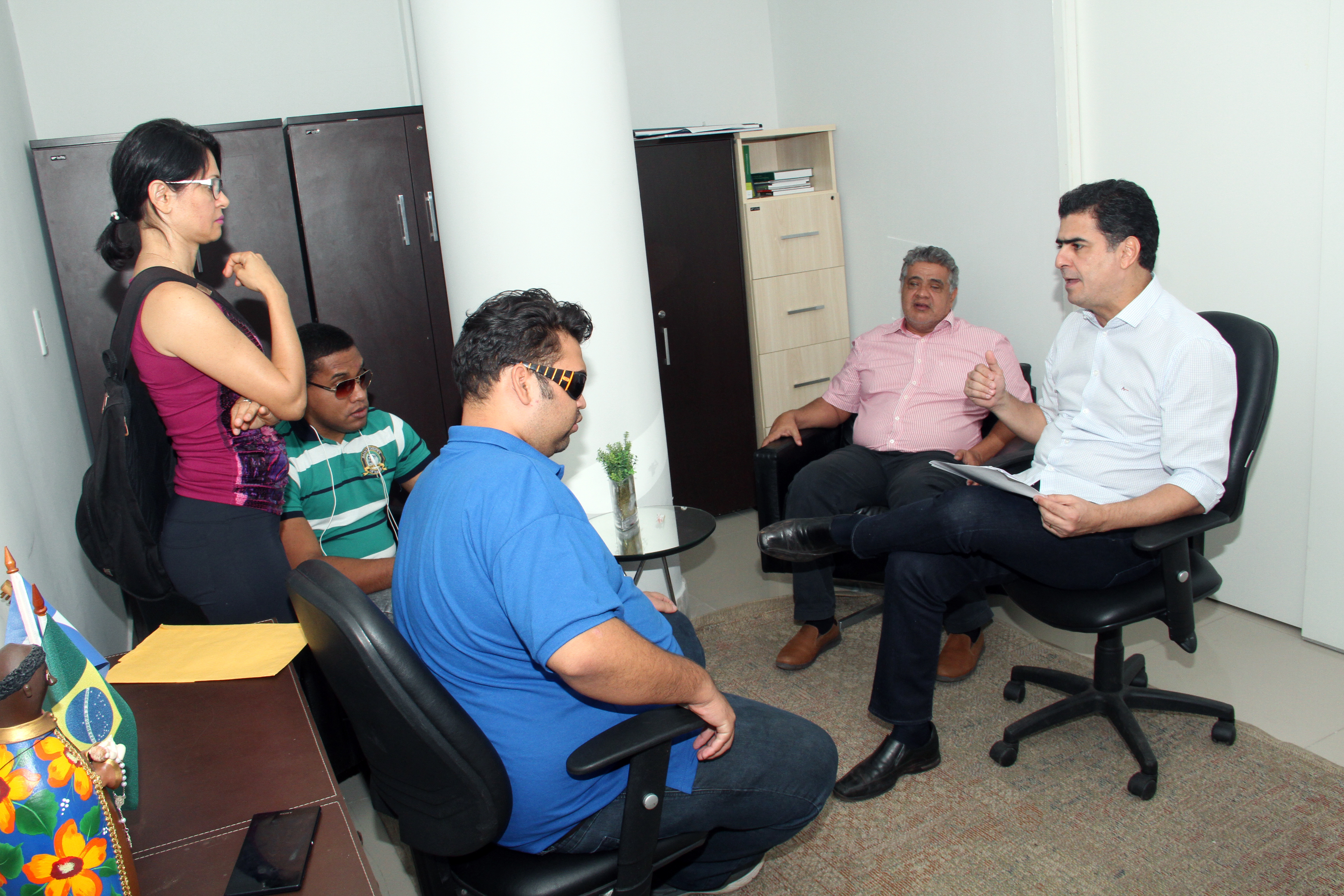 O presidente do Instituto dos Cegos de Mato Grosso, Thiago Lima, e um grupo de deficientes visuais estiveram na Prefeitura de Cuiabá, na tarde desta segunda-feira, 18, para apresentar demandas ao prefeito Emanuel Pinheiro.