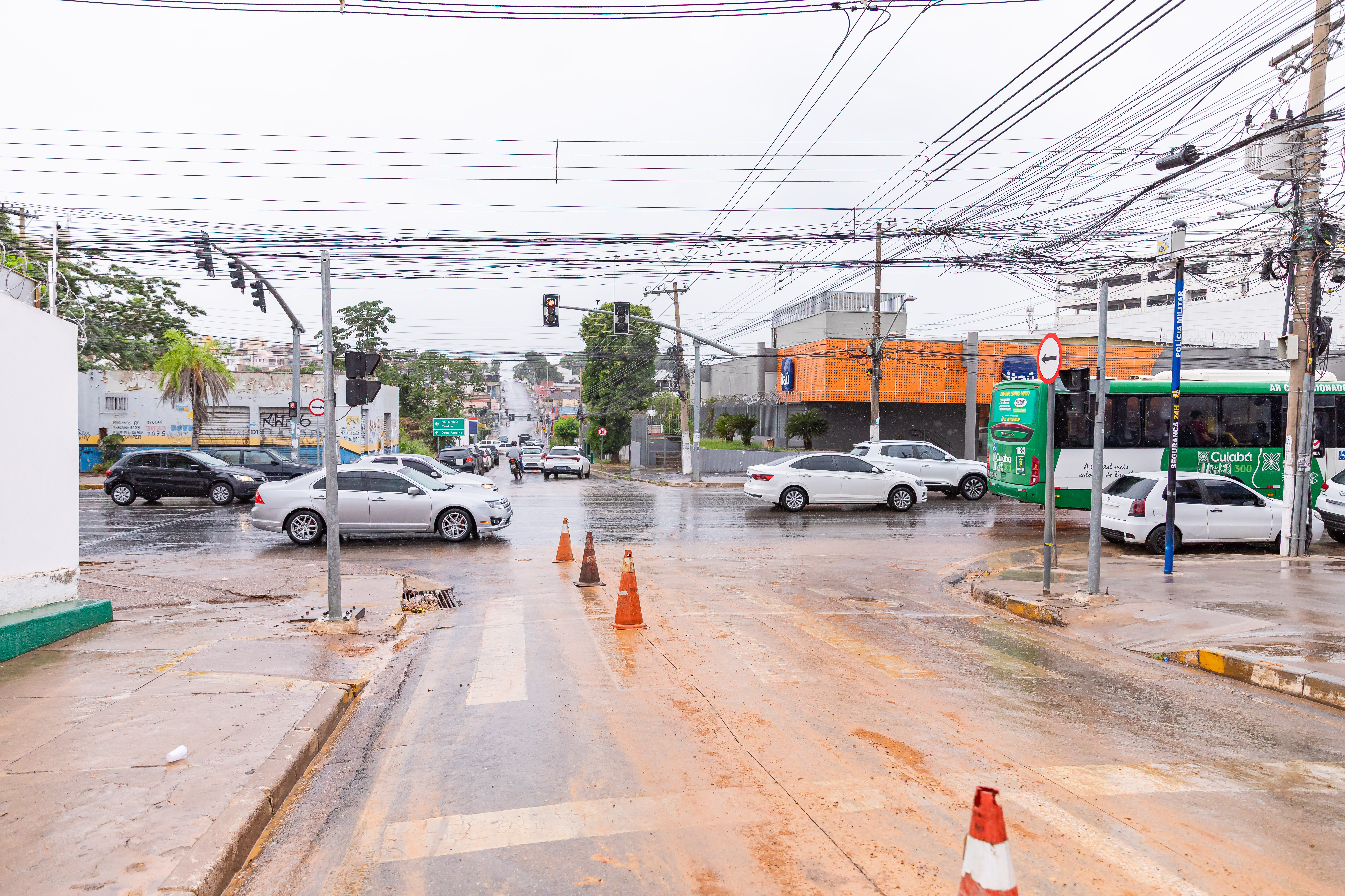 A Rua Major Gama, no sentido oposto (para quem acessa a Av. 15 de Novembro), será liberada. Já foram realizados 15 dias de trabalho para a implantação da rede de drenagem nesse trecho.