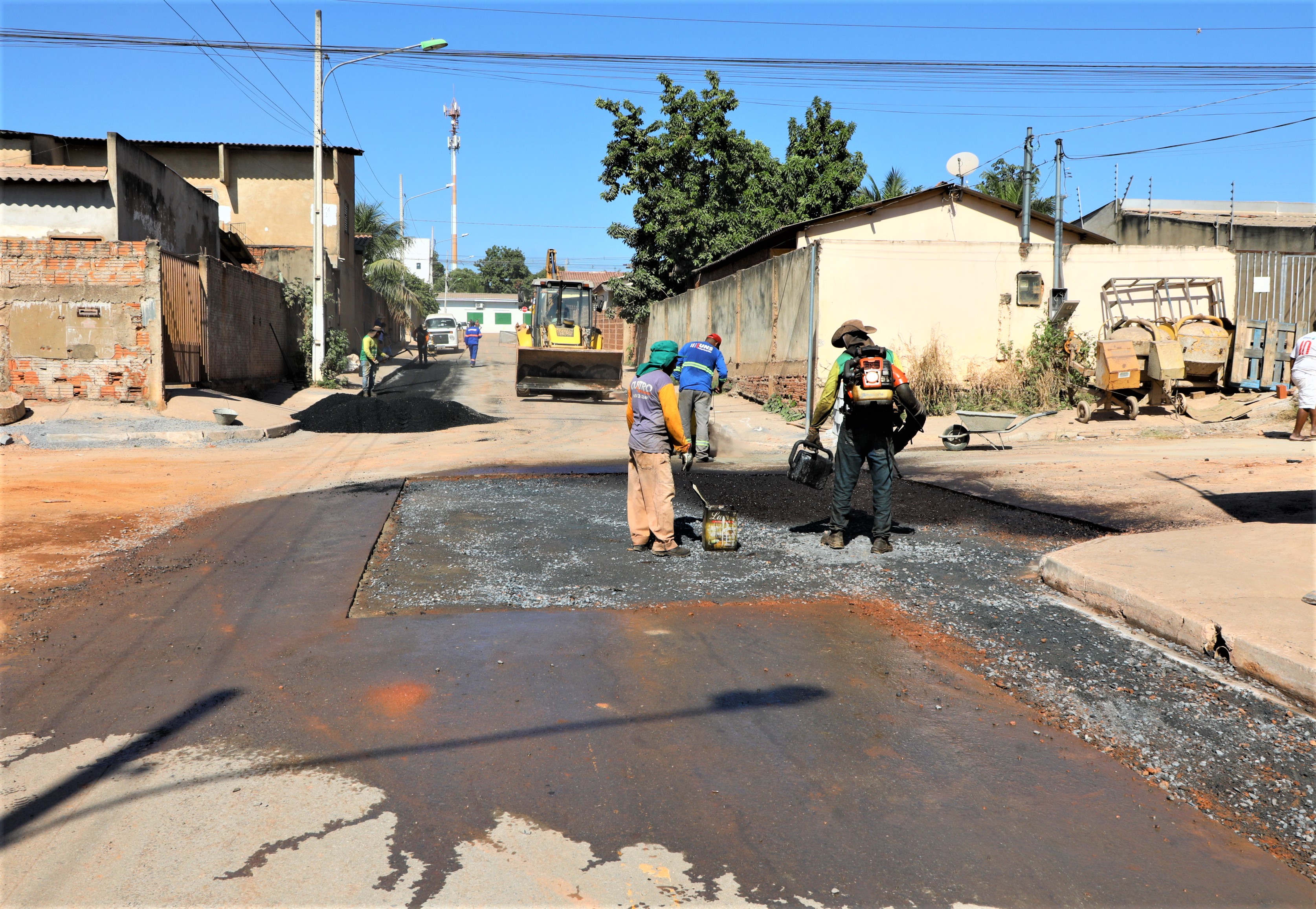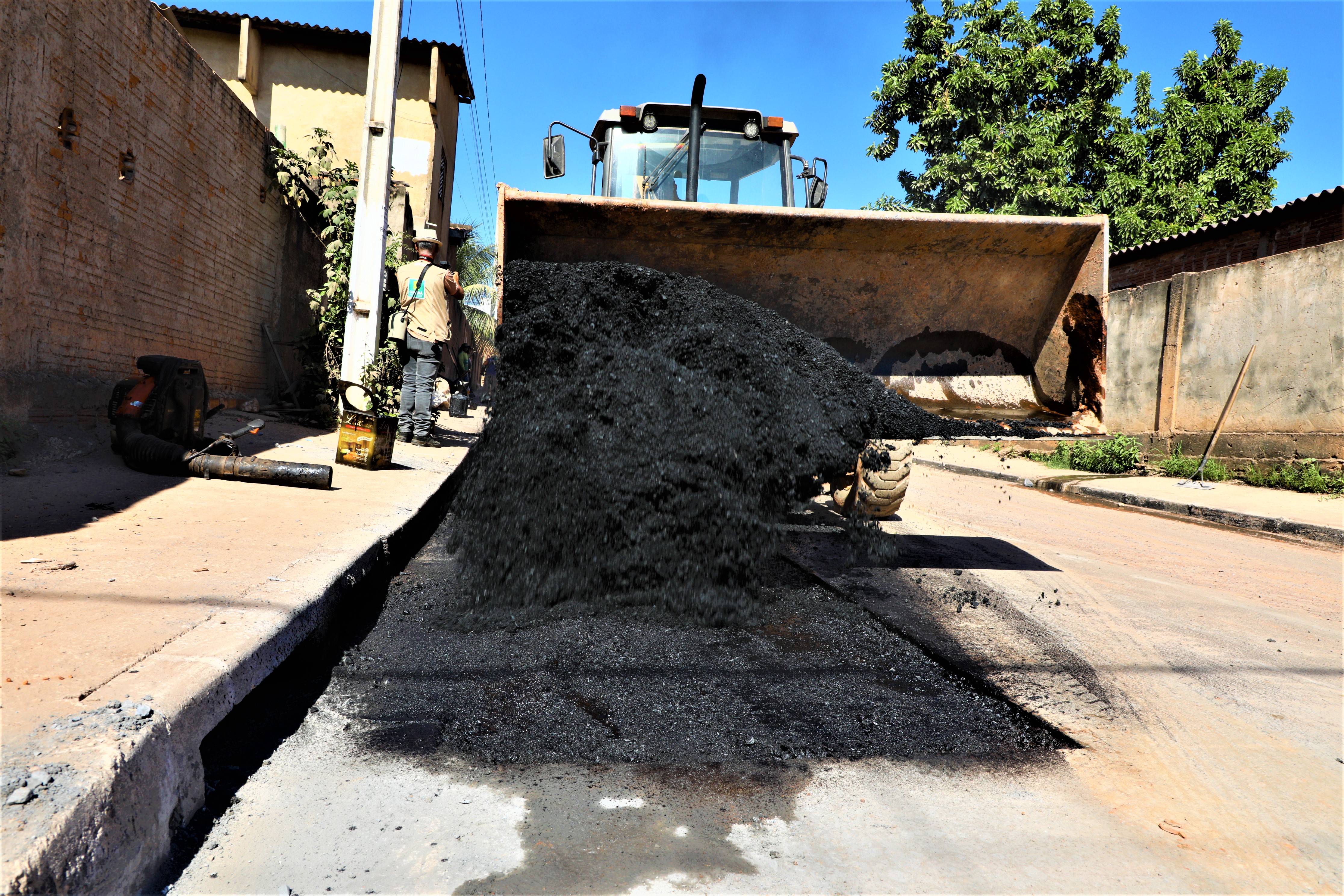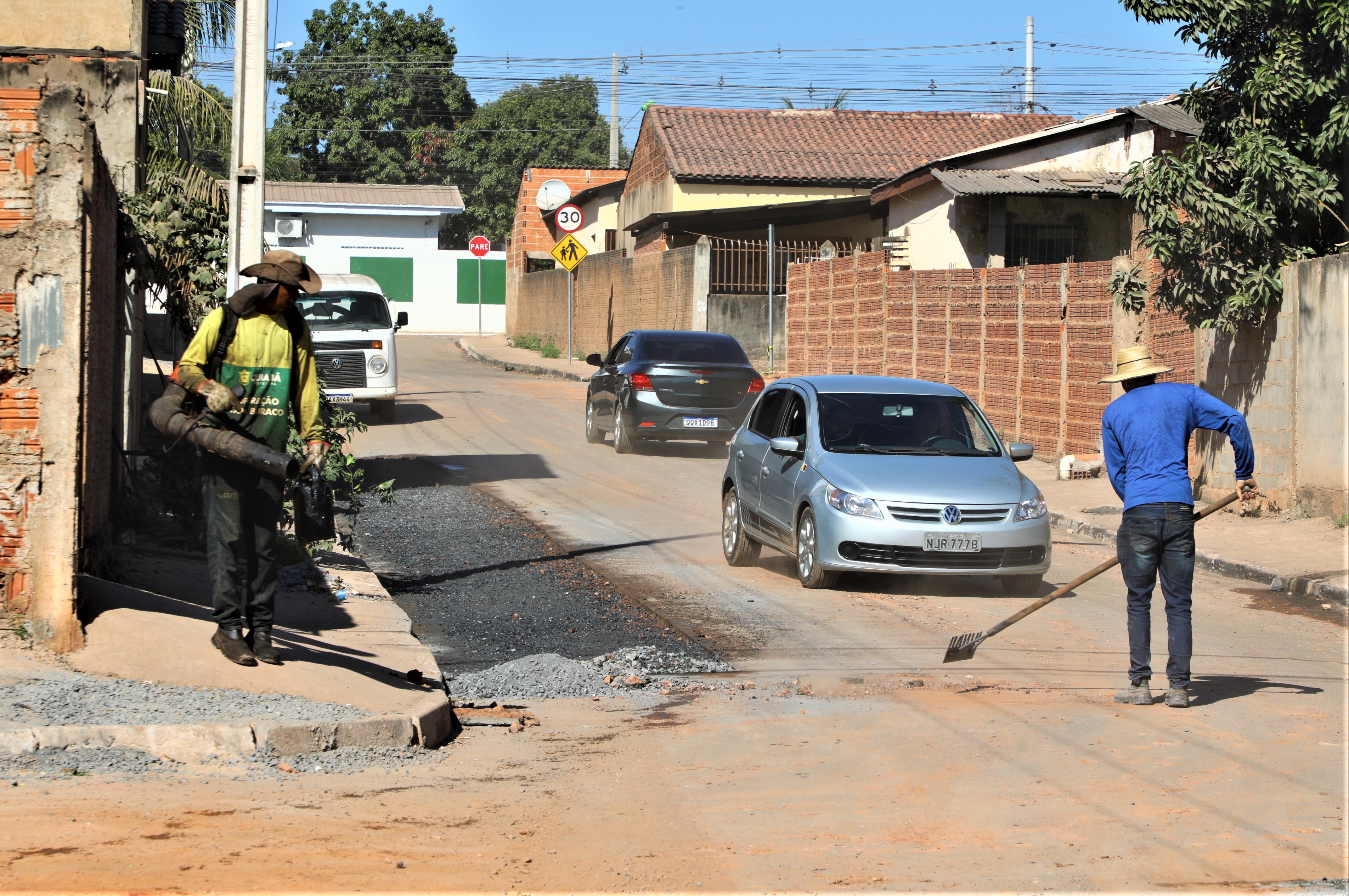 Ruas do Residencial Coxipó recebem recuperação na malha viária