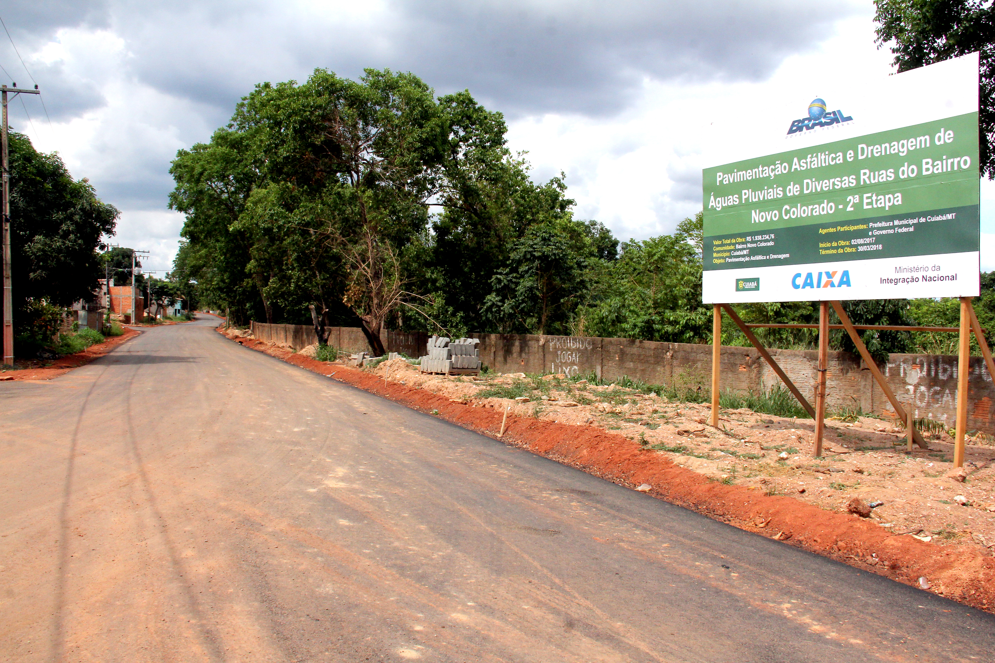 Situado na região Oeste da Capital, o bairro está sendo beneficiado pelo programa “Minha Rua Asfaltada” que, somente neste primeiro ano de implantação, tem levado mais de 150 km de drenagem e pavimentação, simultaneamente, para 20 bairros diferentes. No Novo Colorado , especificamente, são 18 ruas contempladas, totalizando quase 3 km de pavimentação. Para essa obra, a Prefeitura de Cuiabá está investindo o montante equivalente a R$ 1.938.234,76, englobando também a construção de calçadas e meio-fio.