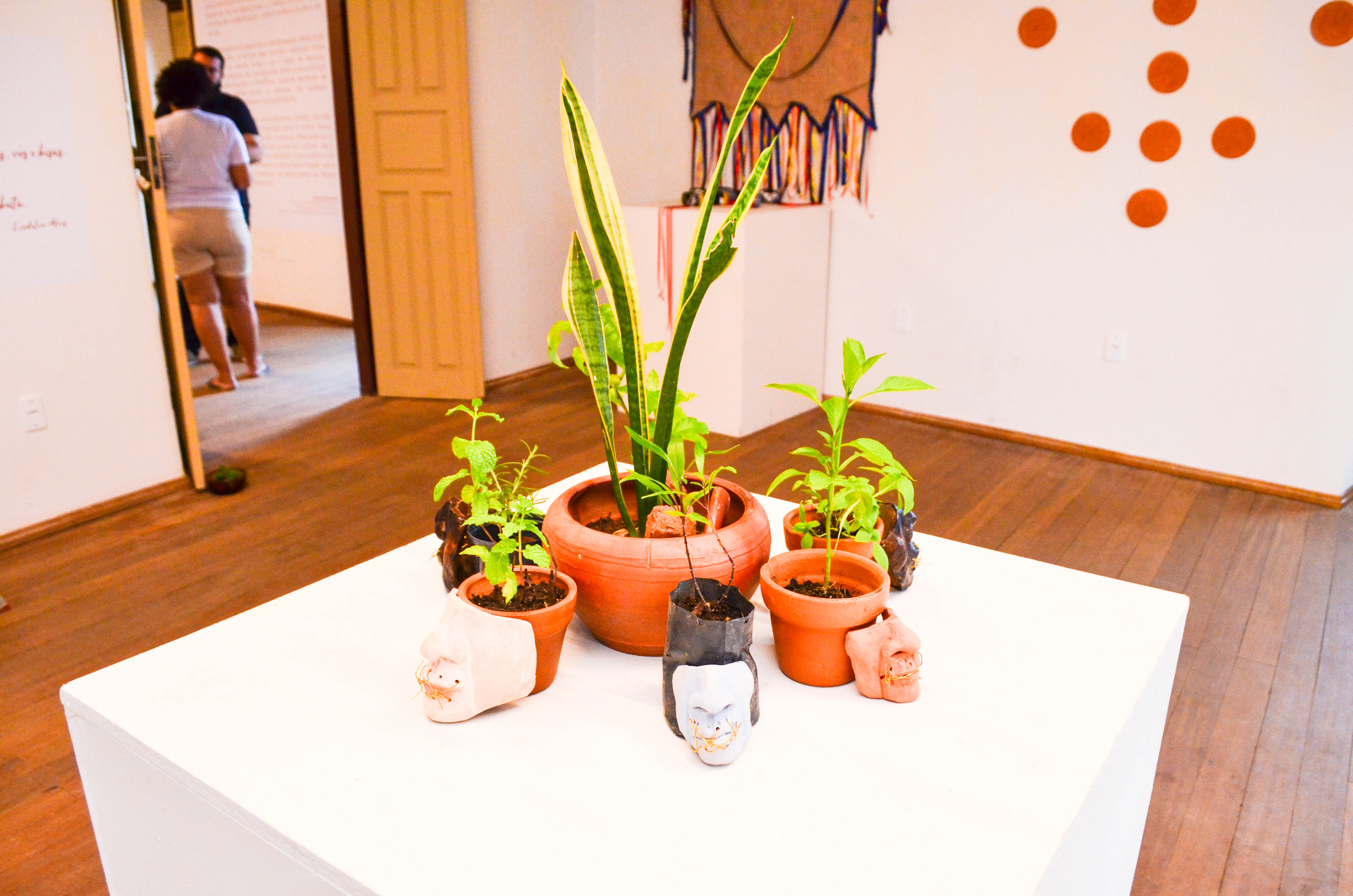 Rodeada por mini rostos de argila e bocas suturadas com cobre, a peça “Tem Benças Que Não Pode Ser Ditas” carrega também uma mensagem crítica. “É como se esse conhecimento fosse censurado, por ser tido como maligno e visto com preconceito. Por isso elas têm as bocas costuradas. Todo mundo faz seus chás, tem suas plantas, mas muitas vezes não fala porque há essa barreira, reforçada pela indústria farmacêutica. Então toda essa sabedoria vai se perdendo”, diz.