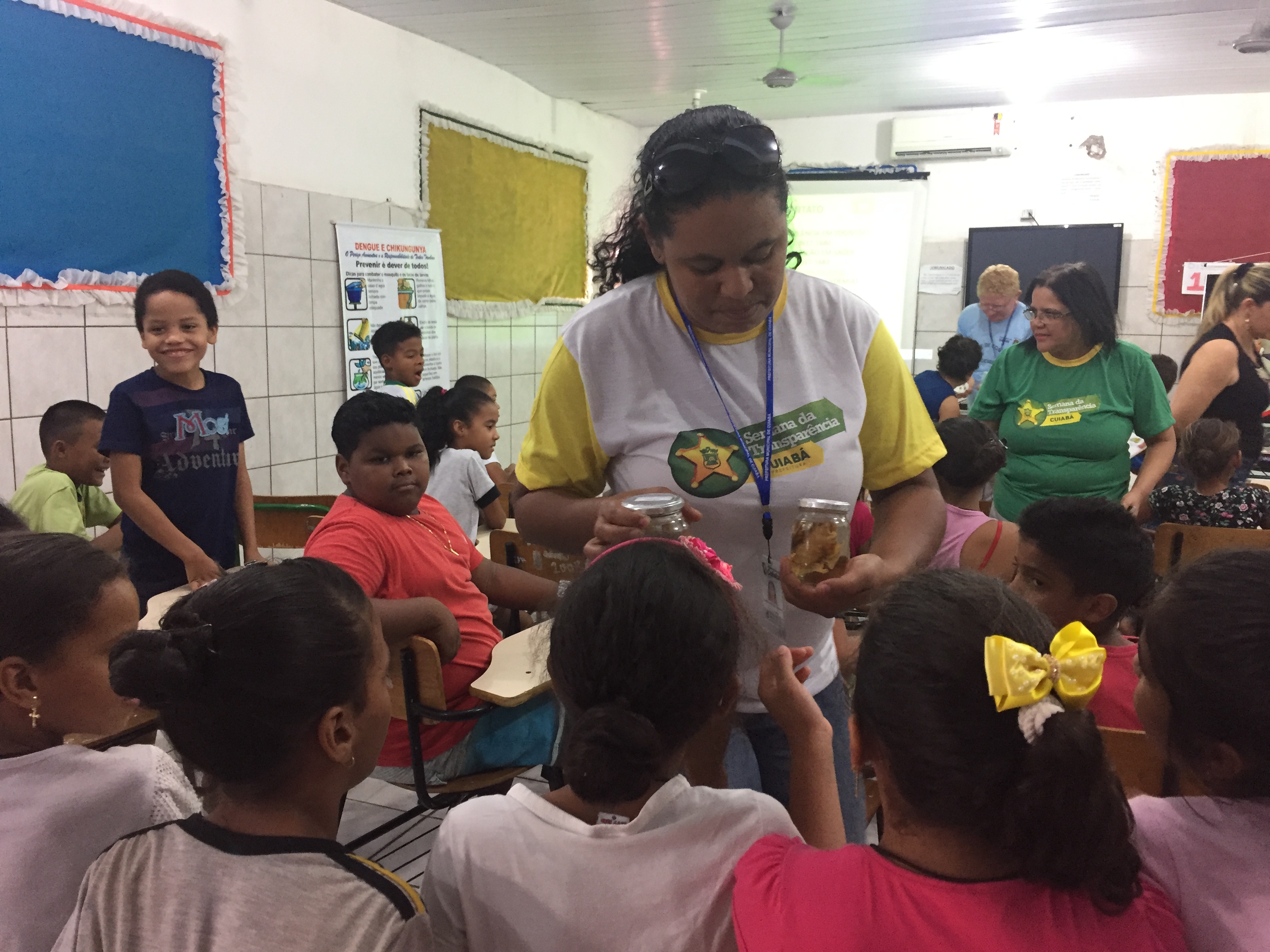 Uma parceria entre a Secretaria Municipal de Saúde (SMS) e a Controladoria do Município resultou em muita diversão e aprendizado para os alunos da Escola Municipal Orlando Nigro, no bairro Pedregal, durante a apresentação da Semana da Transparência e da ‘Exposição orientativa’ de conscientização, prevenção e combate ao Aedes Segypti.