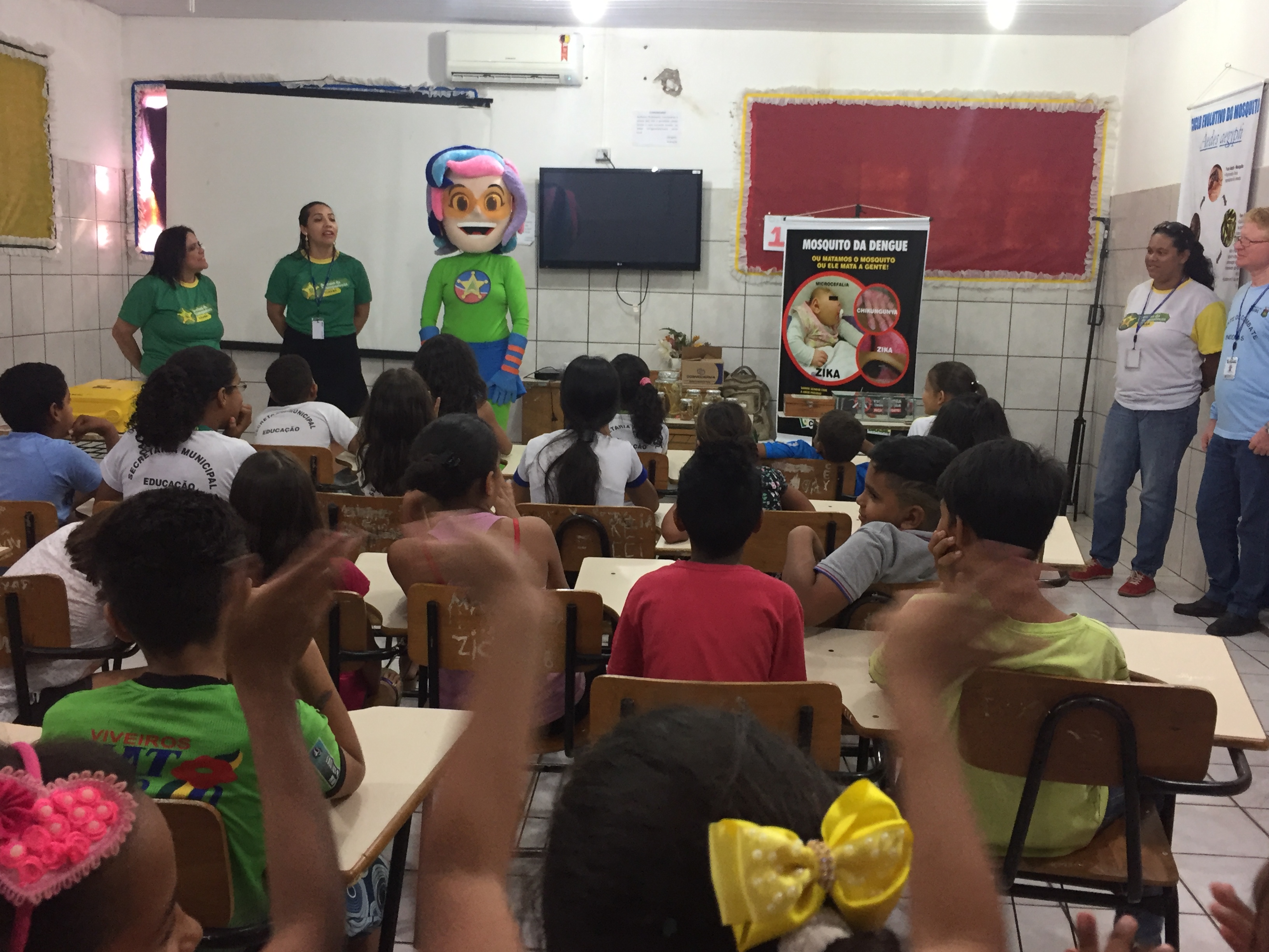 Protagonista da pergunta, a estudante do 4º ano, Angelina Gabriele Silva aprovou a parceria. “Foi muito legal, me senti cidadã e aprendi muito. Serviu para pra relembrar que não podemos descuidar com o Aedes. Mas, o mais legal foi aprender o que é sinantrópicos, porque eu não sabia o que era e descobri que um deles, os Caramujos oferecem um grande risco para nossa saúde e são impróprios para o uso. Por isso, existem tantos no período de chuva”, confidenciou contagiada com a ação das secretárias.