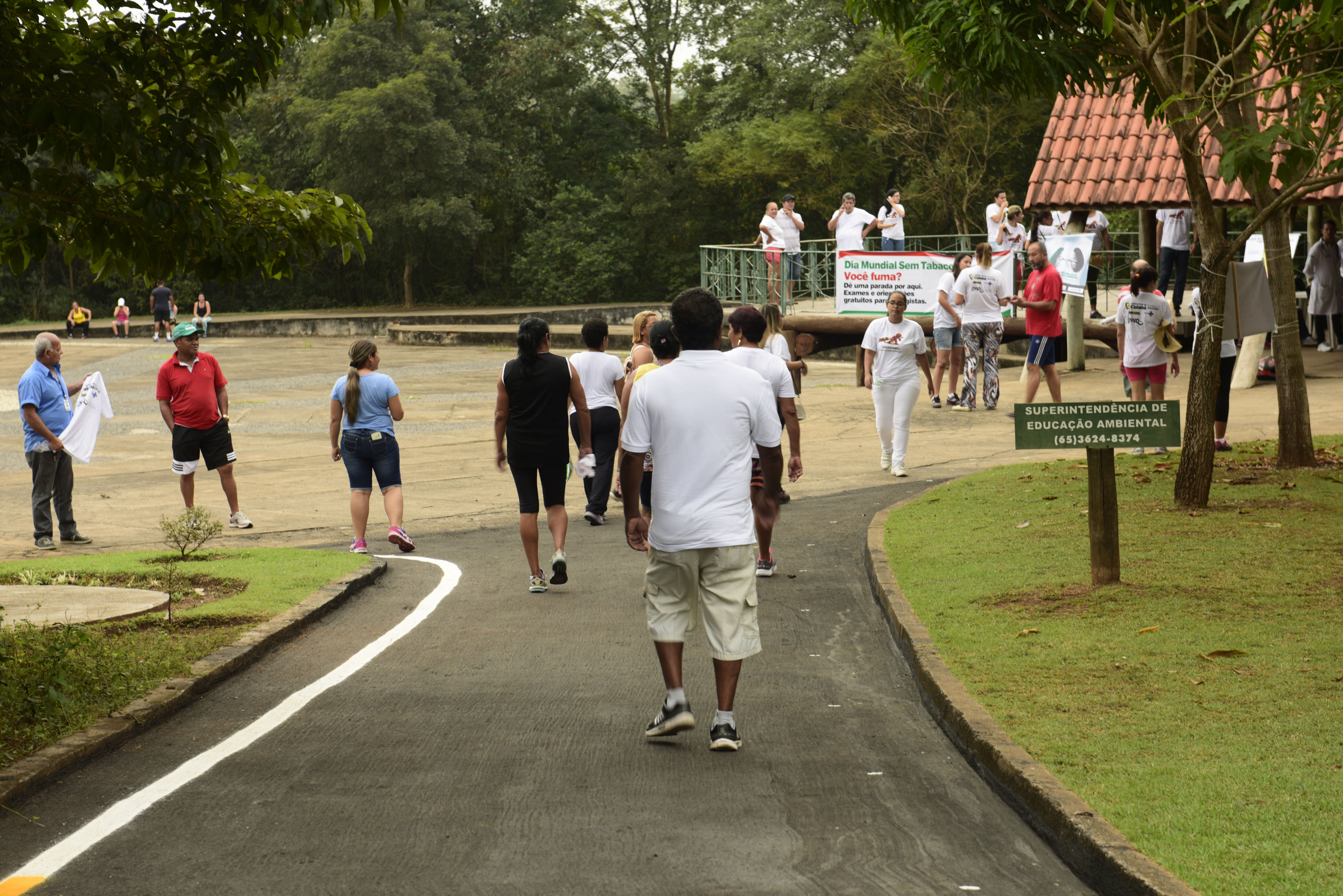 No final de semana, encerrando o mês de combate ao tabagismo, os técnicos da Diretoria de Atenção Básica da Secretaria de Saúde de Cuiabá e pacientes do programa de controle e combate ao tabagismo, realizaram no Parque Mãe Bonifácia, a 1ª Caminhada Livre do Tabaco.