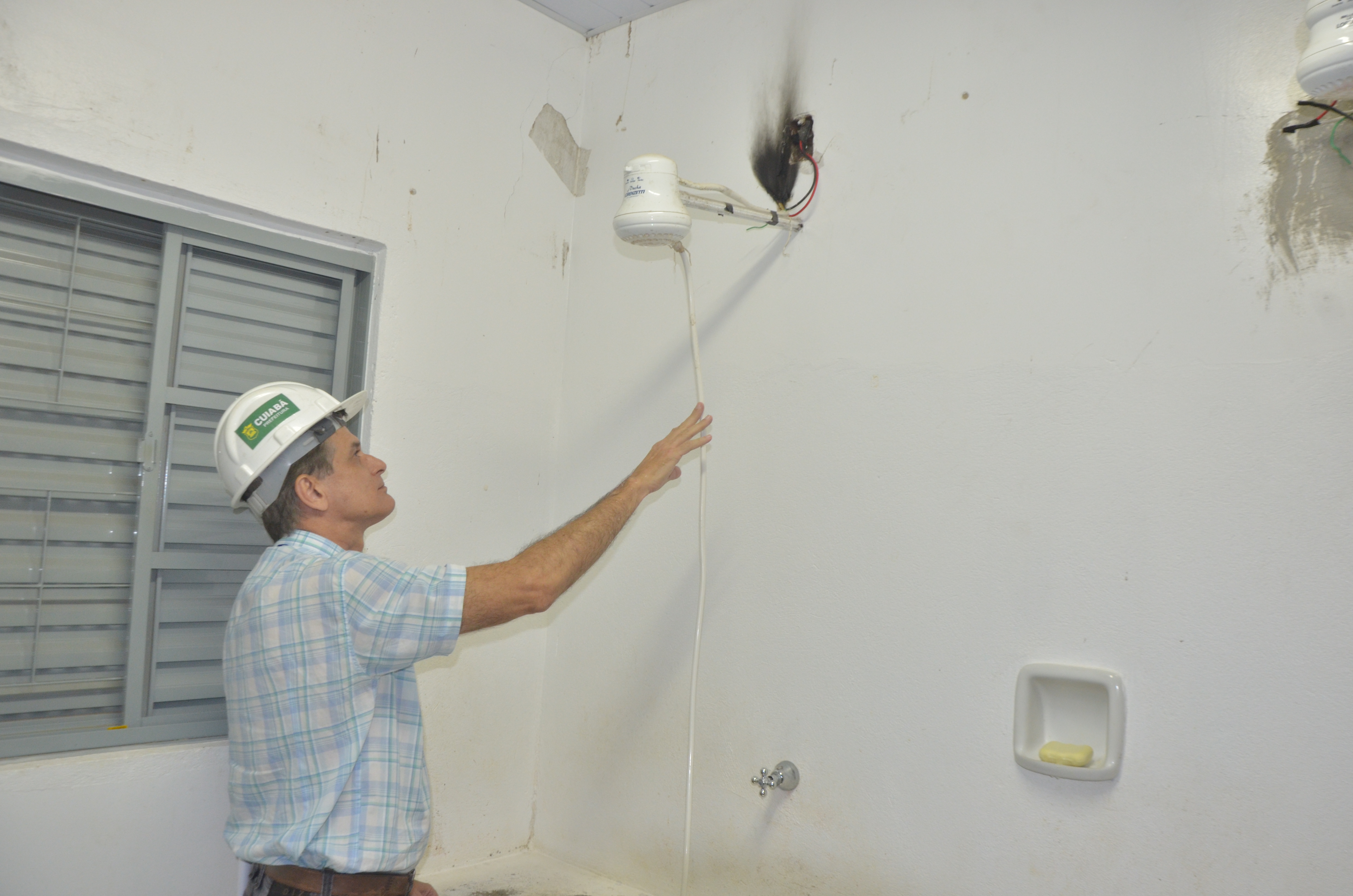 De acordo com o engenheiro eletricista da Secretaria, Rubens Mariano, a corrente da parte elétrica do banheiro é muito alta para a instalação monofásica existente sendo o principal motivo de ter ocasionado o aquecimento do chuveiro.