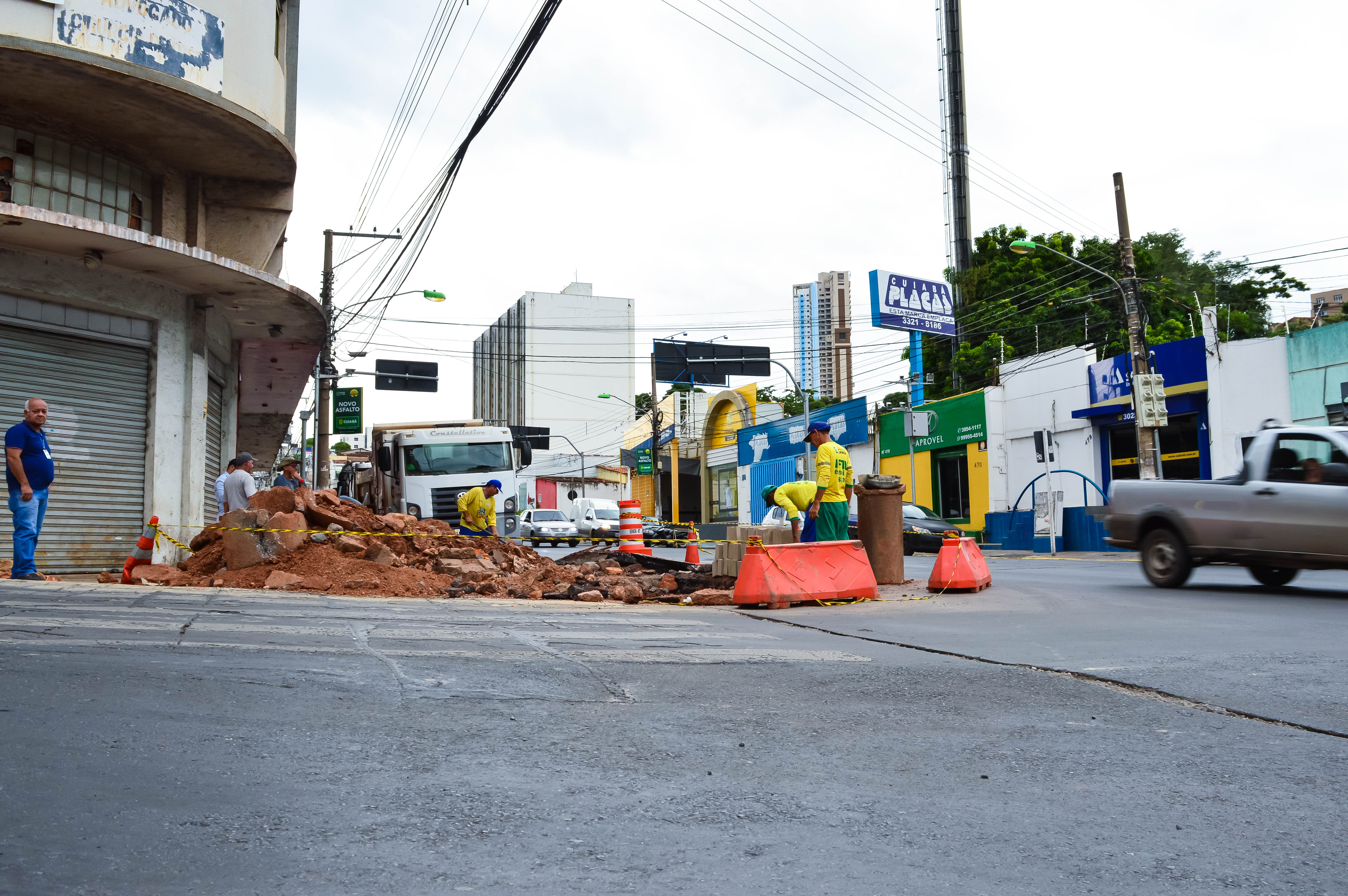 A Prefeitura de Cuiabá deu inicio nessa terça-feira (20) a uma intervenção emergencial na área central da Capital. A atuação, realizada por meio de uma equipe da Secretaria Municipal de Obras Públicas formada por pelo menos 10 trabalhadores, está ocorrendo no cruzamento da Avenida Isaac Póvoas com a Rua Comandante Costa, onde foi identificado o rompimento de uma caixa de passagem de águas pluviais.