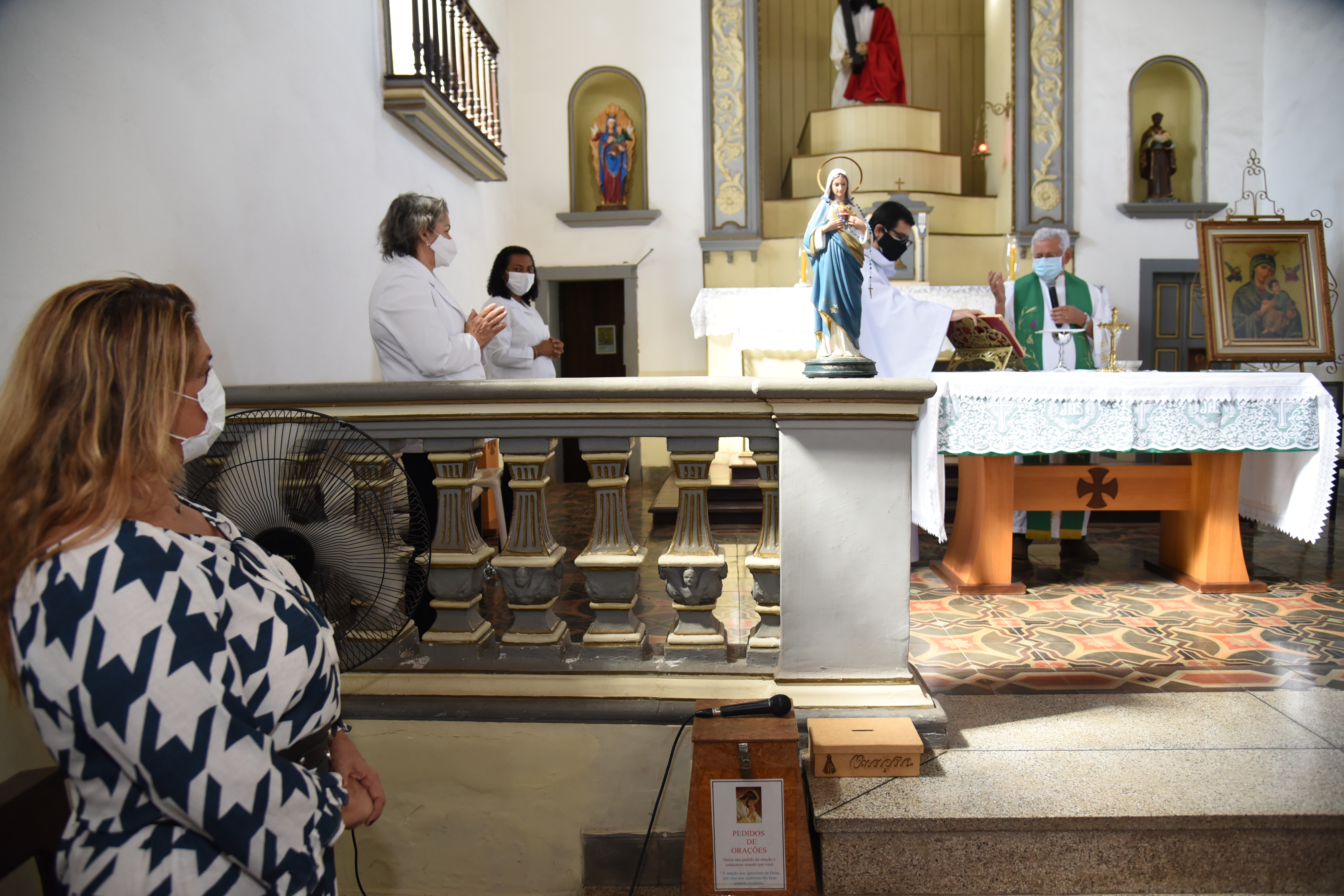 Secretária Carlina prestigia a retomada das missas na Igreja Senhor dos Passos após 18 meses fechada
