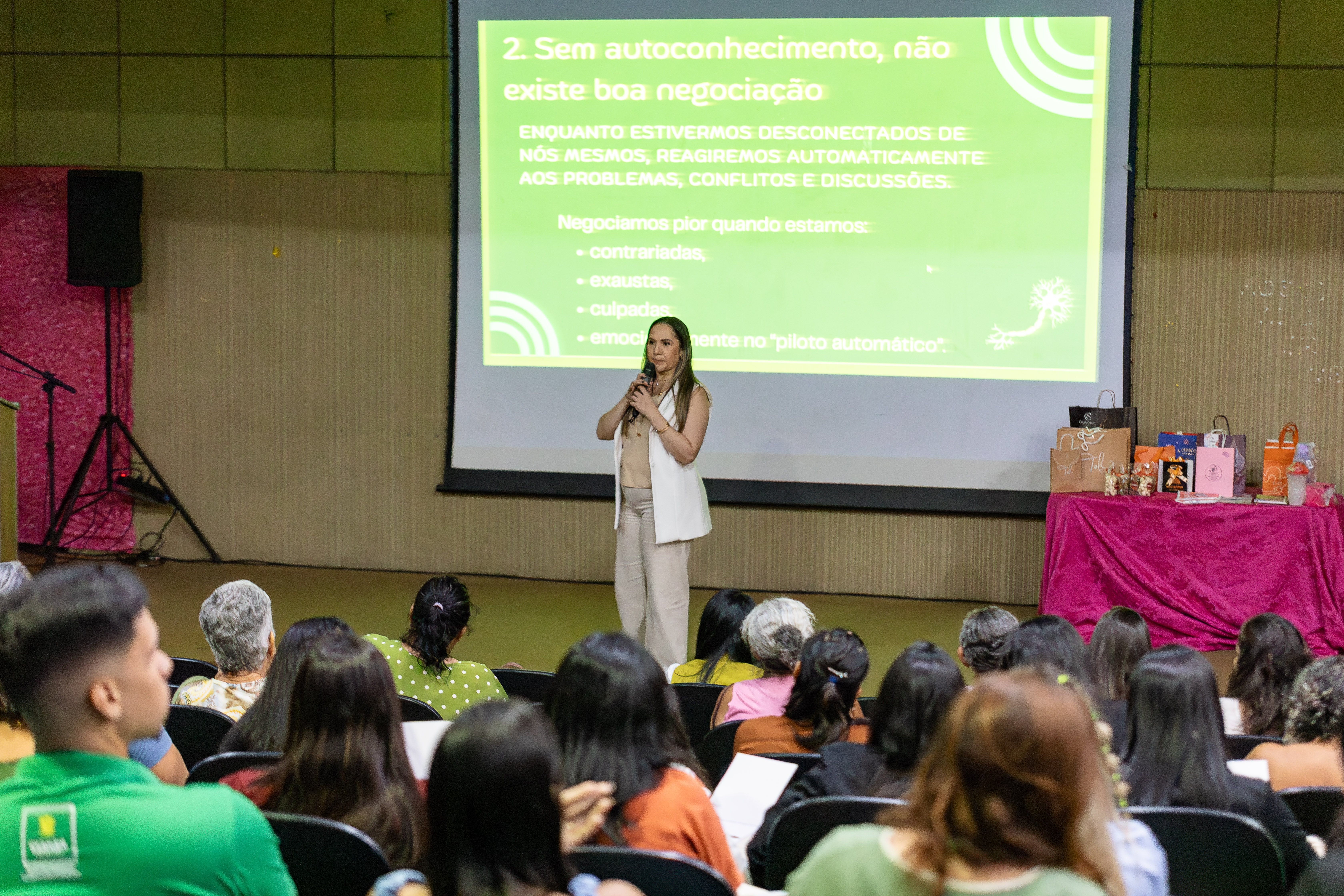 Durante o evento, mais de 100 mulheres ouviram sobre temas essenciais para o fortalecimento dos seus negócios, estratégias de vendas, gestão e posicionamento no mercado. A proposta foi oferecer ferramentas práticas e ampliar o olhar empreendedor, incentivando cada participante a transformar sua habilidade em fonte de renda sustentável. Entre os temas estavam educação financeira, linhas de crédito para empreendedoras, inteligência emocional e casos de superação que já são sucesso no mercado.