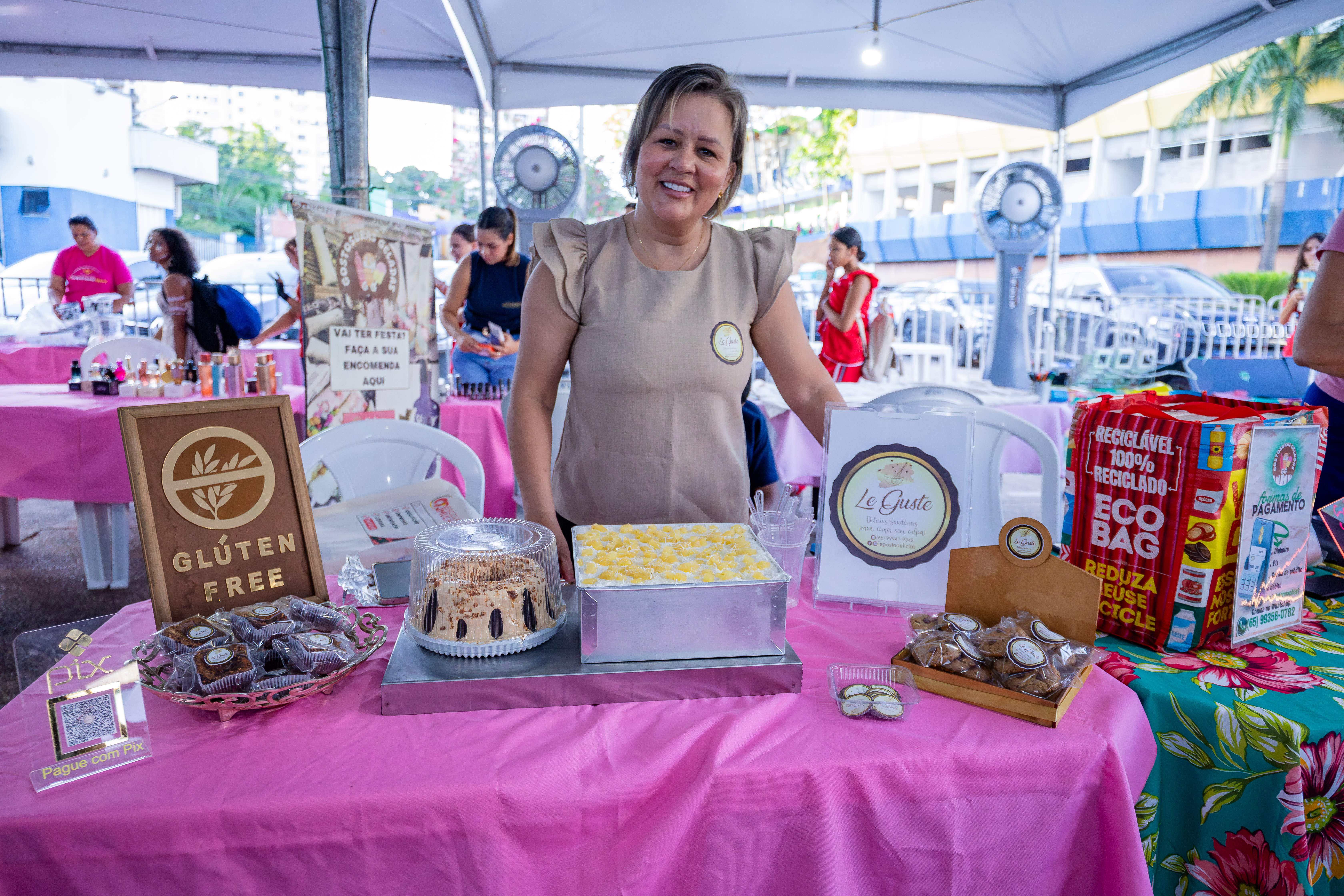 “Vim para o evento para inspirar essas mulheres, e aprendi muito. Amei as palestras. E posso afirmar que estou só começando no meu negócio. Comecei vendendo bolo de pote de porta em porta, fiz minha marca, cumpri um propósito com Deus e ele transformou minha trajetória. Minha preocupação sempre é como o produto vai chegar ao cliente. Isso faz muita diferença”, ensinou Taliane Duarte, proprietária da La Chocolê Doceria.