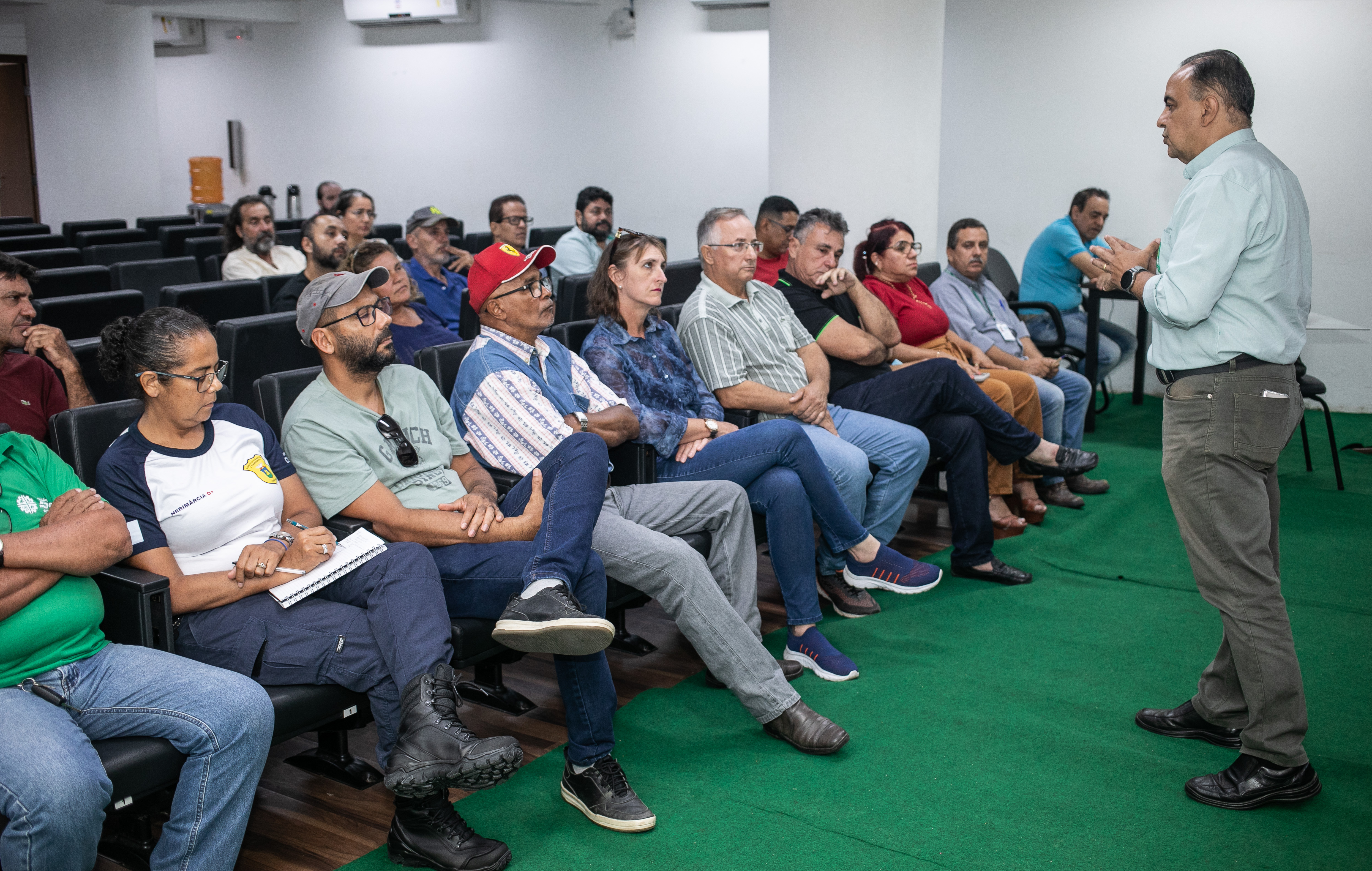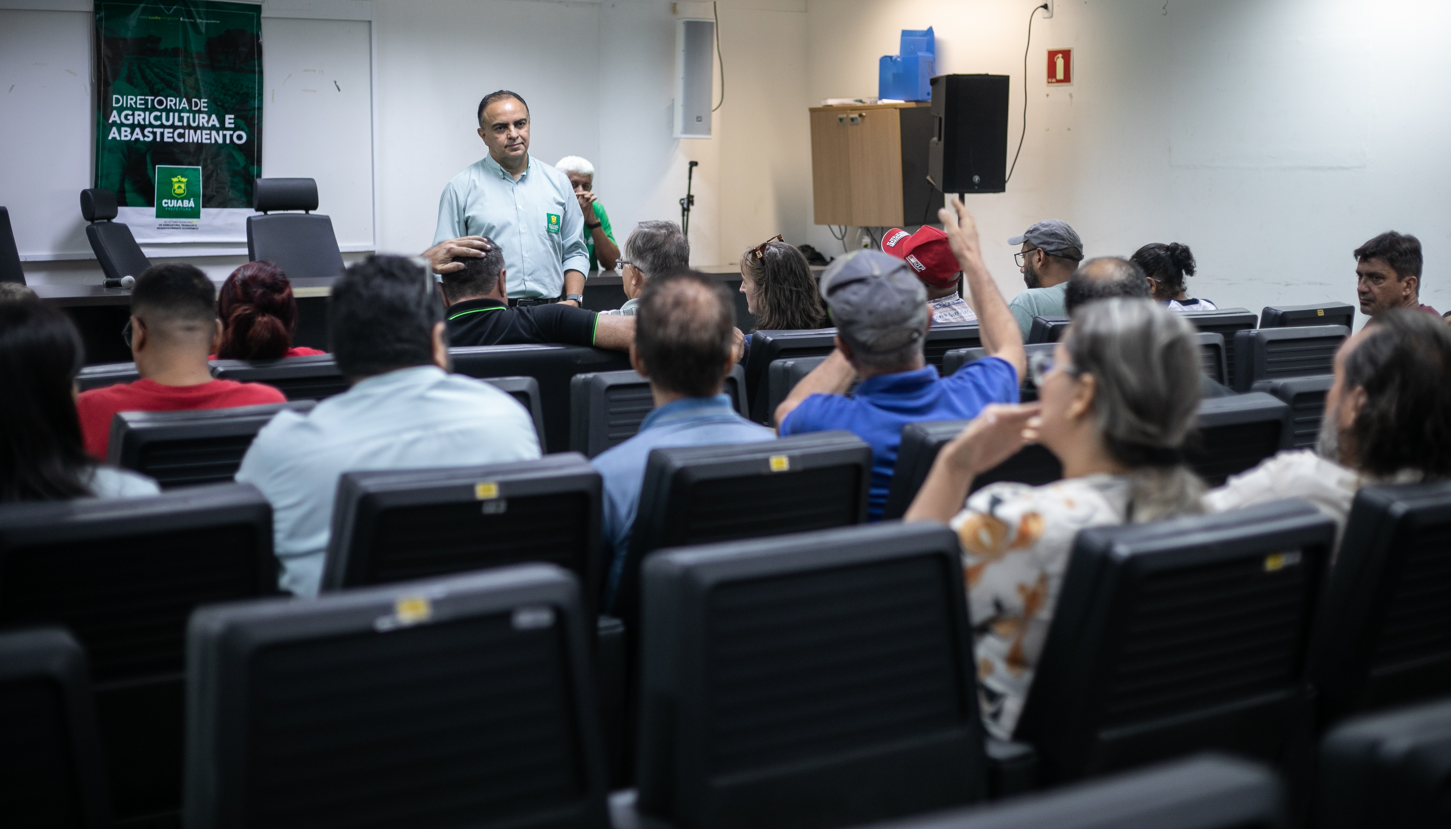 O secretário Municipal de Agricultura, Trabalho e Desenvolvimento Econômico, Francisco Vuolo, realizou uma reunião na tarde desta quinta-feira (15) com produtores da cadeia de apicultura da Baixada Cuiabana para alinhar metas e diretrizes que fundamentarão a criação da cooperativa para produção e comercialização de mel em Cuiabá. O encontro aconteceu no auditório da Prefeitura de Cuiabá, com apoio da secretária-adjunta, Cácila Nassarden e representantes da Diretoria de Agricultura e Abastecimento da Secretaria Municipal de Agricultura, Trabalho e Desenvolvimento Econômico (SMATED).