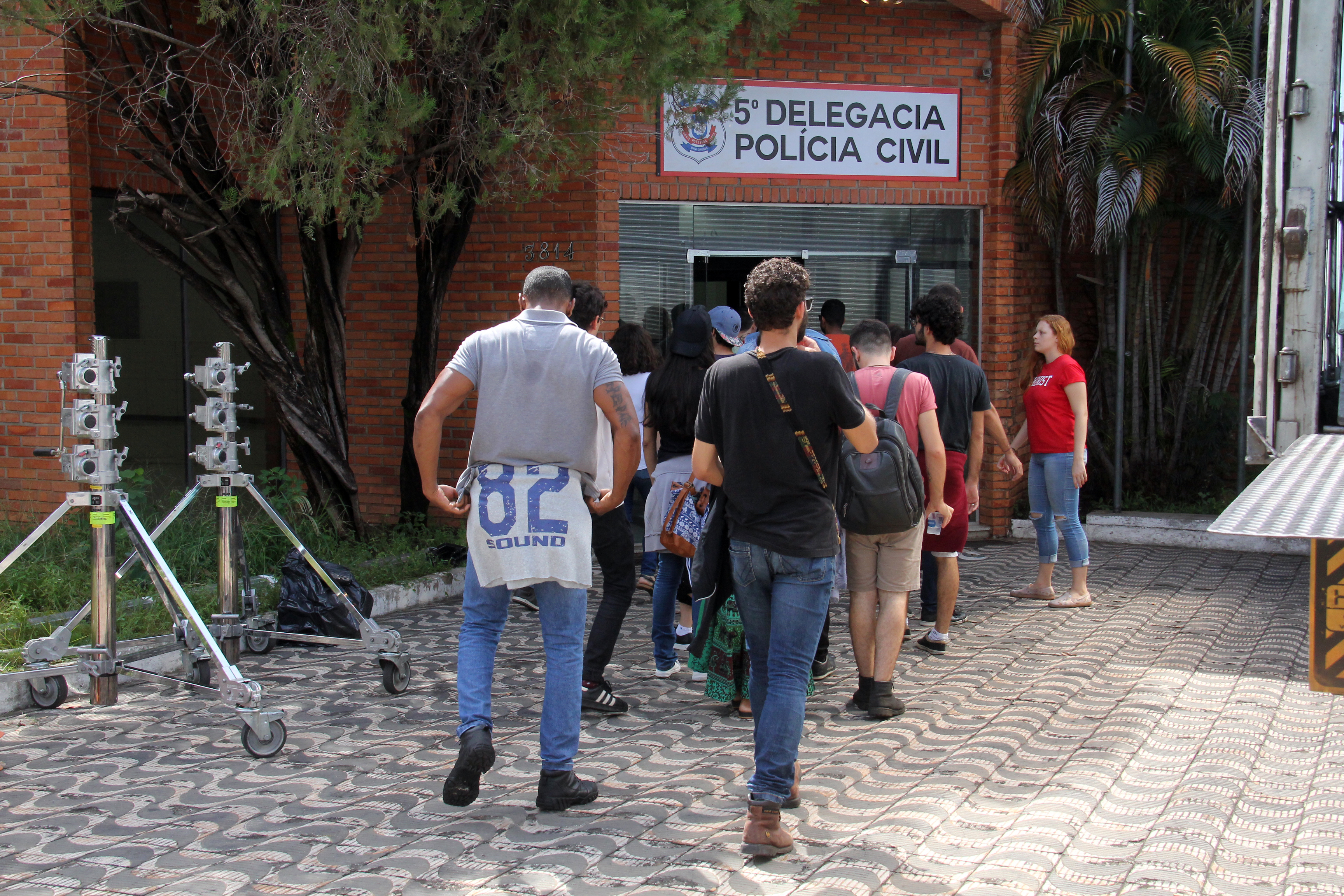 Logo cedo, por volta das 7h da manhã, a equipe técnica chegou com toda sua parafernália para montar a estrutura para a cena da Delegacia de Policia, utilizando como cenário, a fachada e a estrutura do prédio do antigo Bic Banco, entre as ruas Barão de Melgaço e Campo Grande.