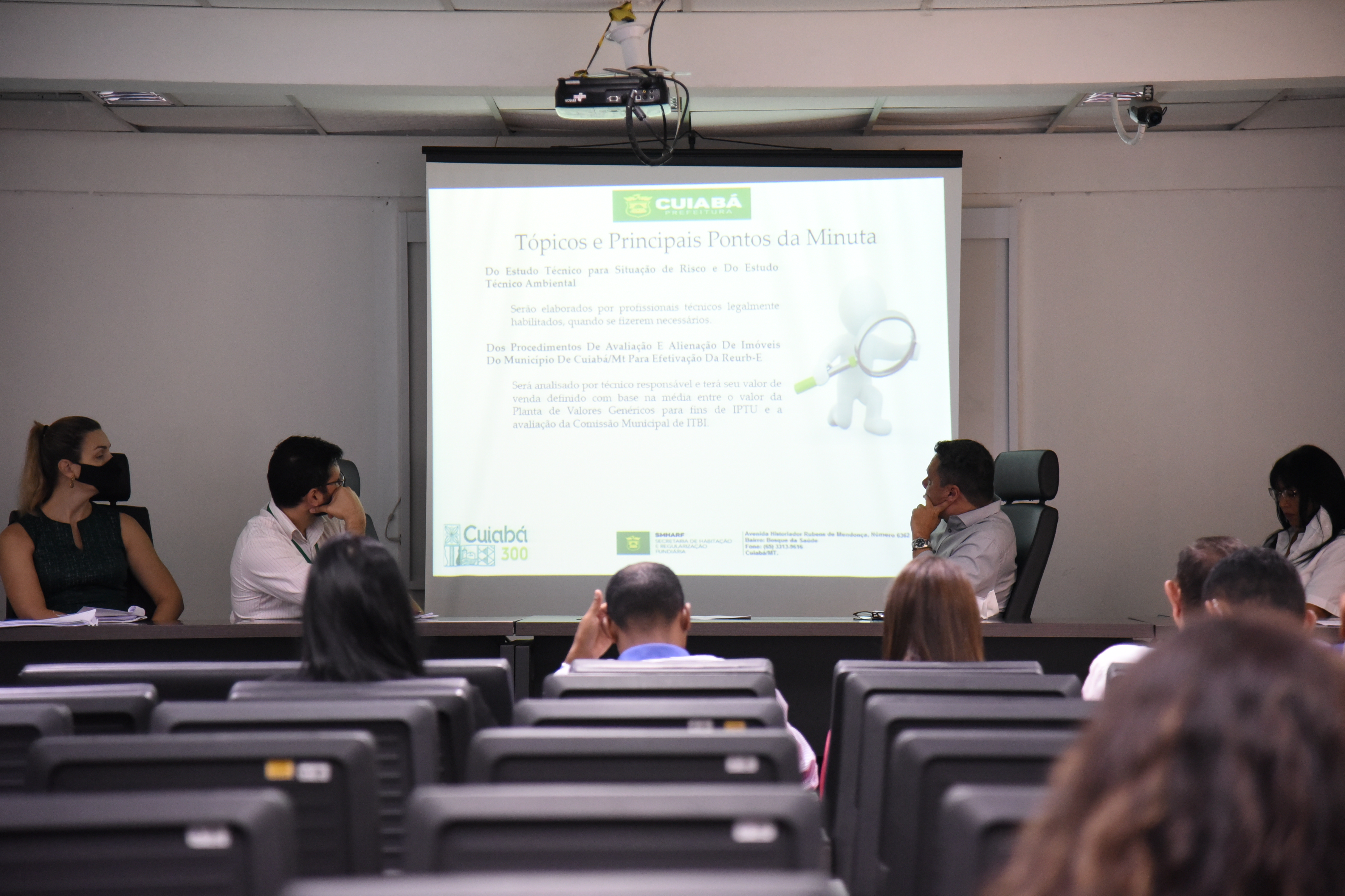 A Secretaria Municipal de Habitação e Regularização Fundiária realizou, na sexta-feira (17), audiência pública e debateu propostas para atualização da atual legislação sobre a regularização fundiária, em conformidade com a REURB 13.465/2017. Garantido ampla participação popular, para 2022, a temática será levada para apresentação de proposições nas regionais: Norte, Sul, Leste e Oeste do município de Cuiabá.