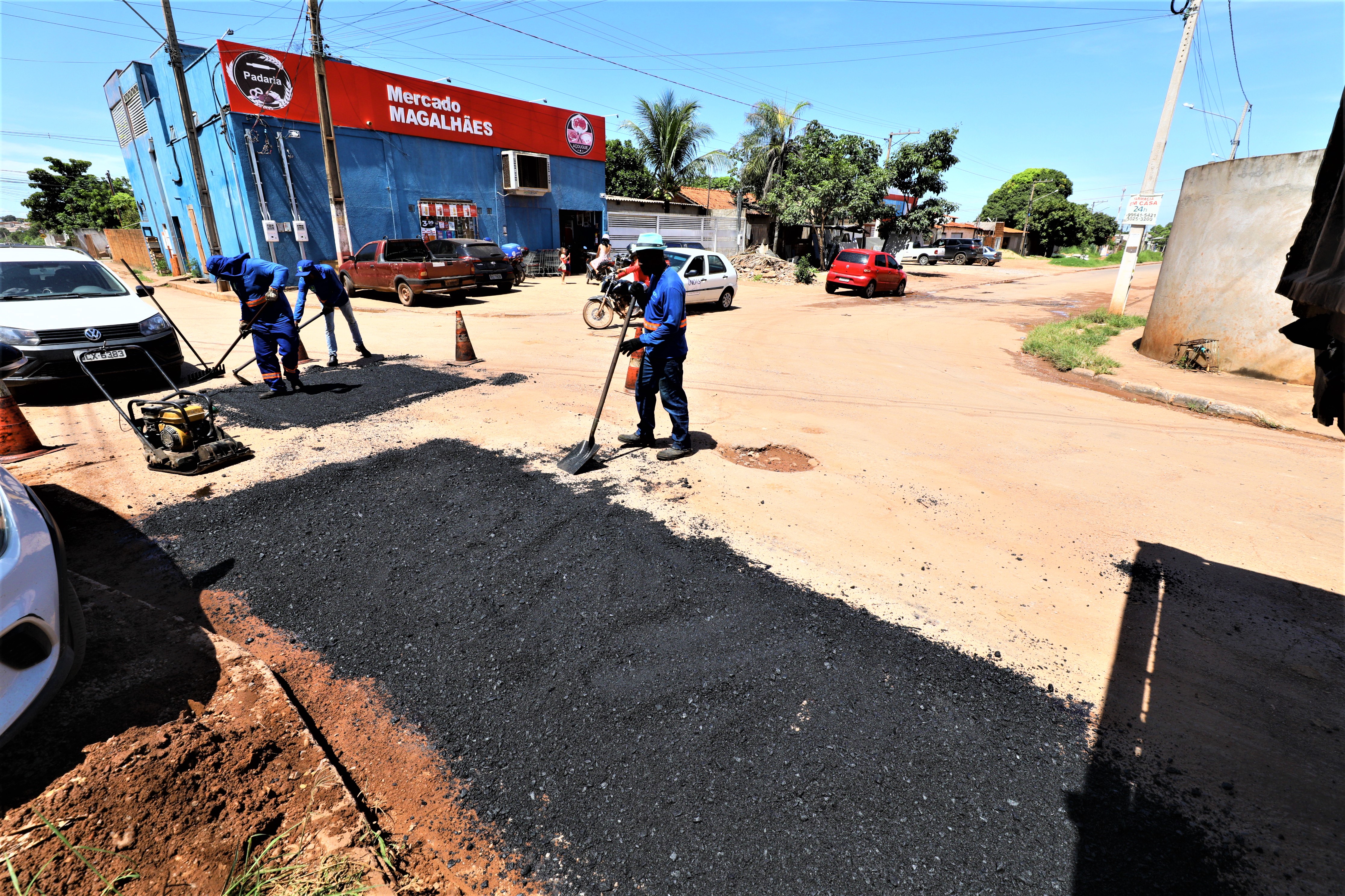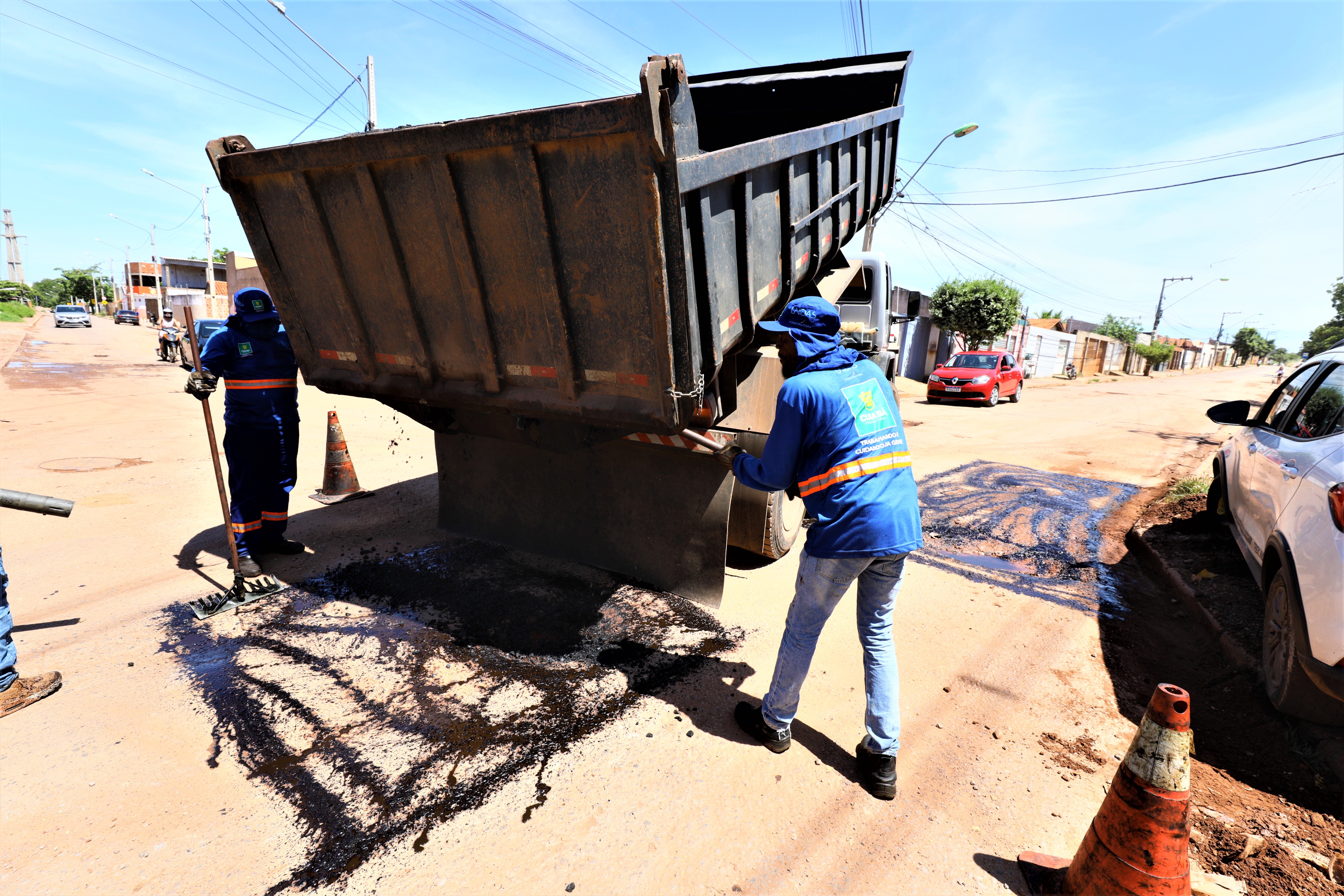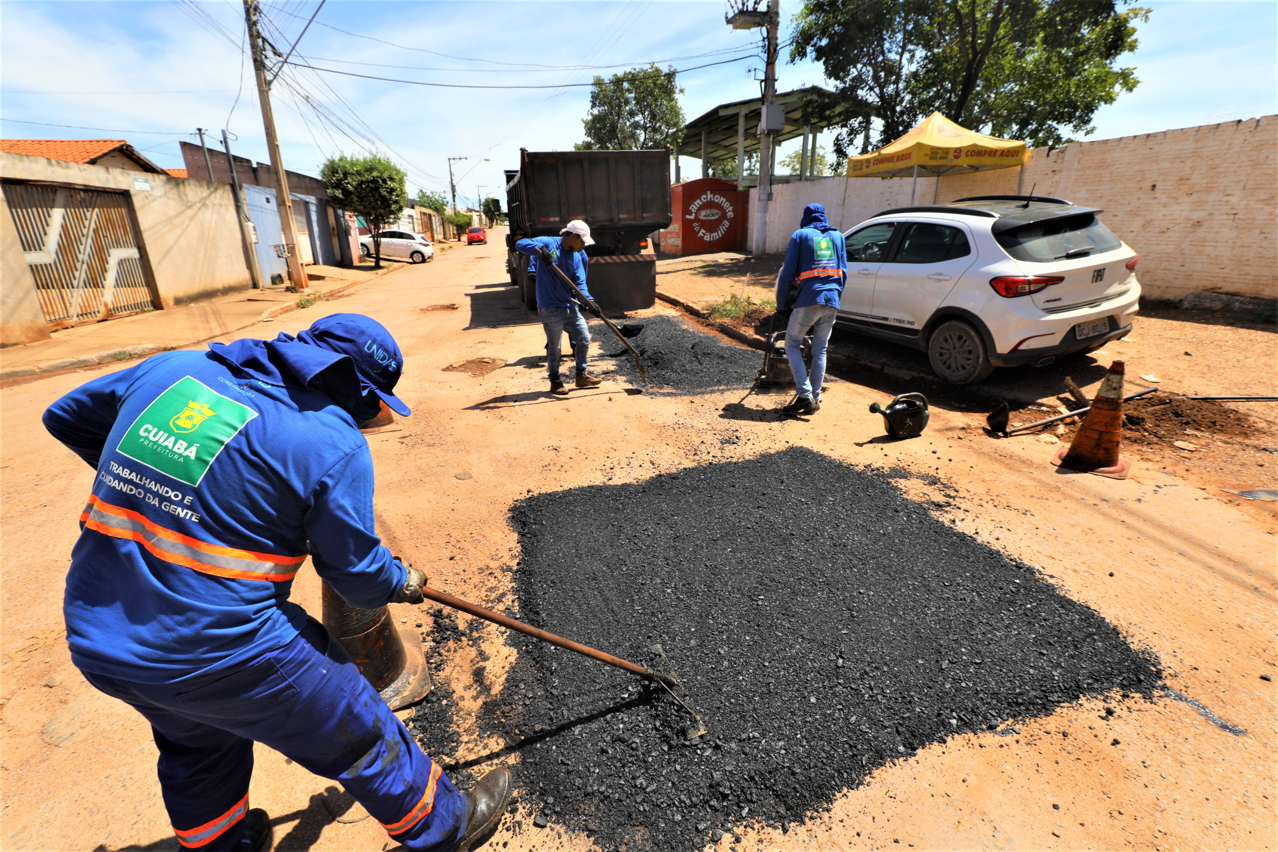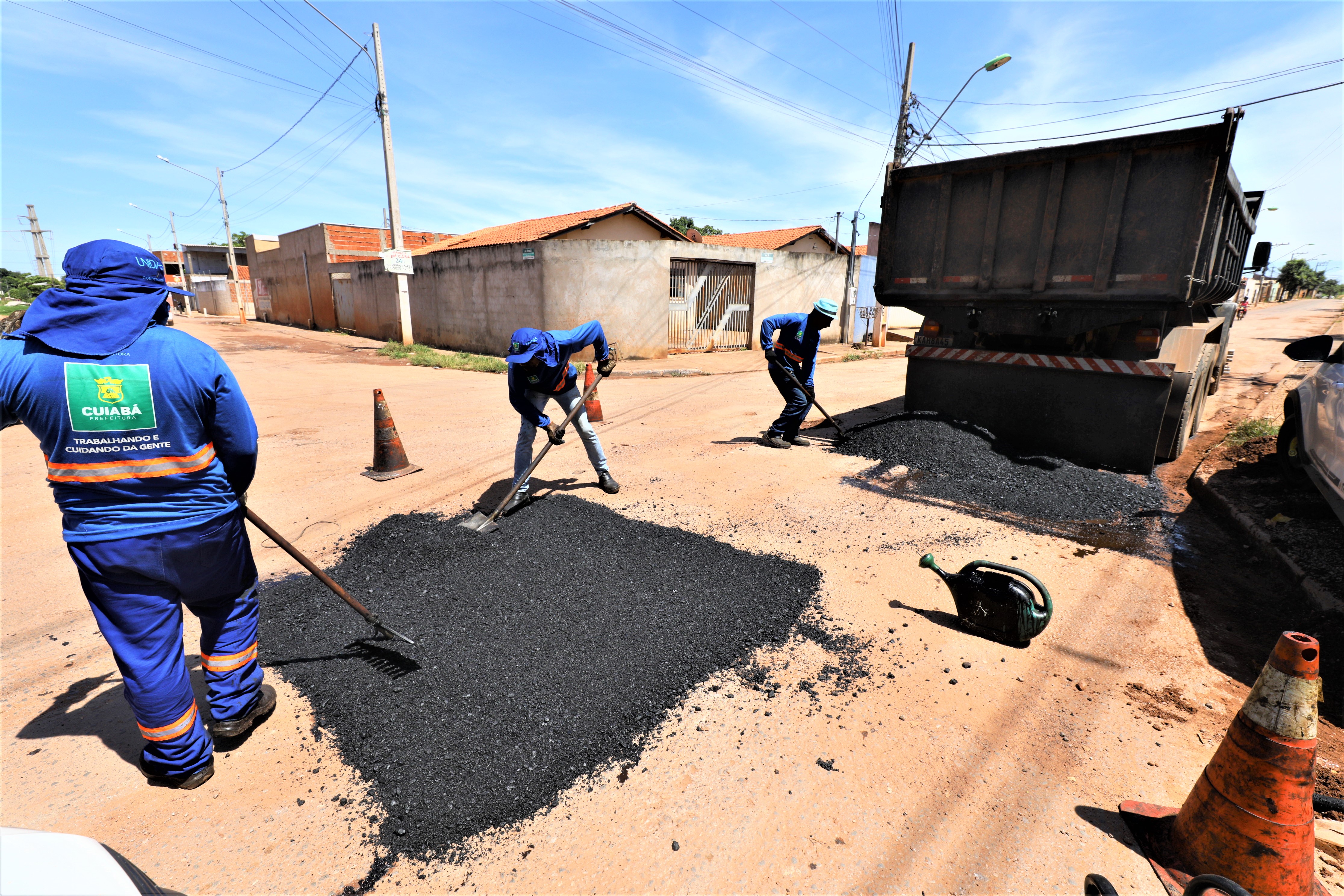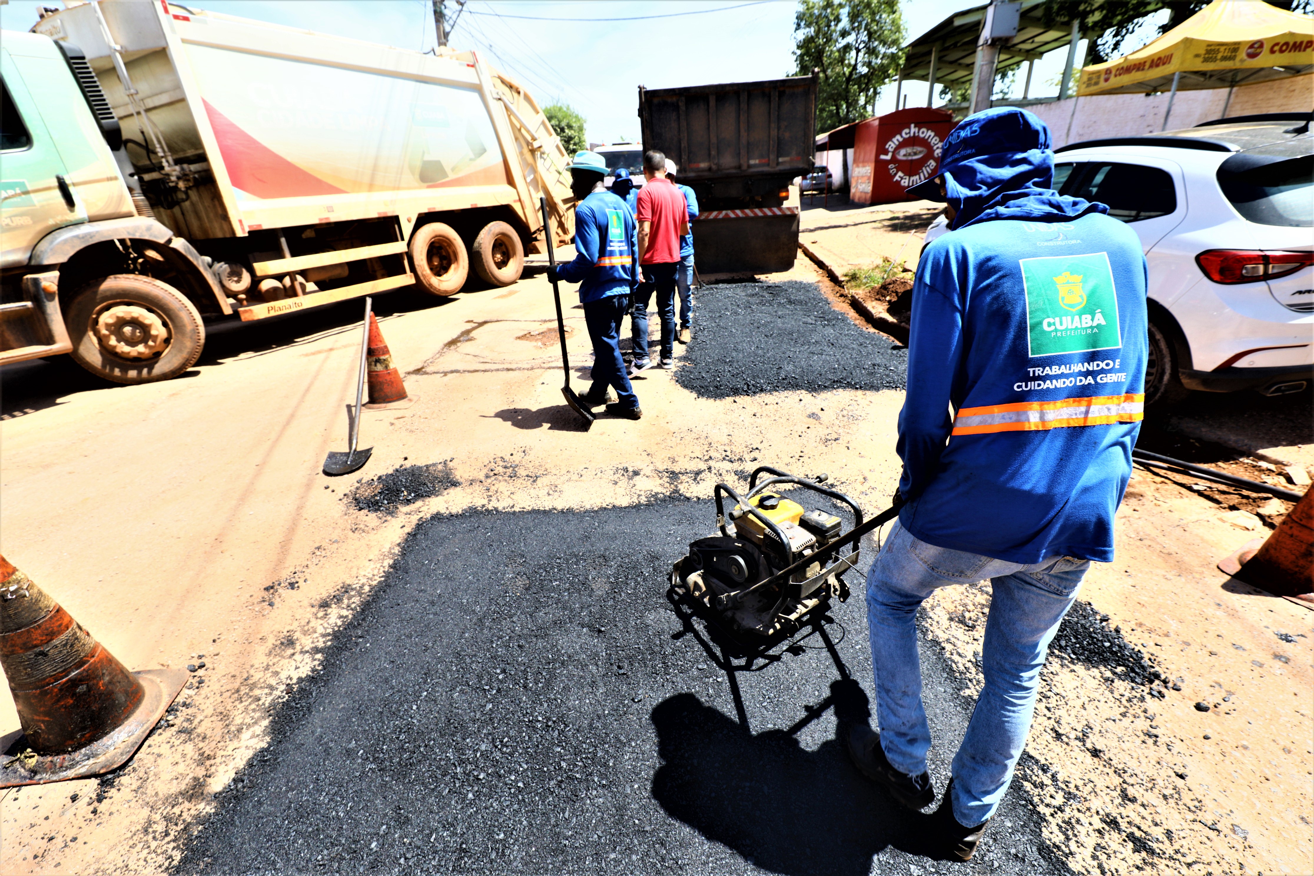 Secretaria de Obras atende diversas regiões de Cuiabá com tapa-buraco durante esta semana