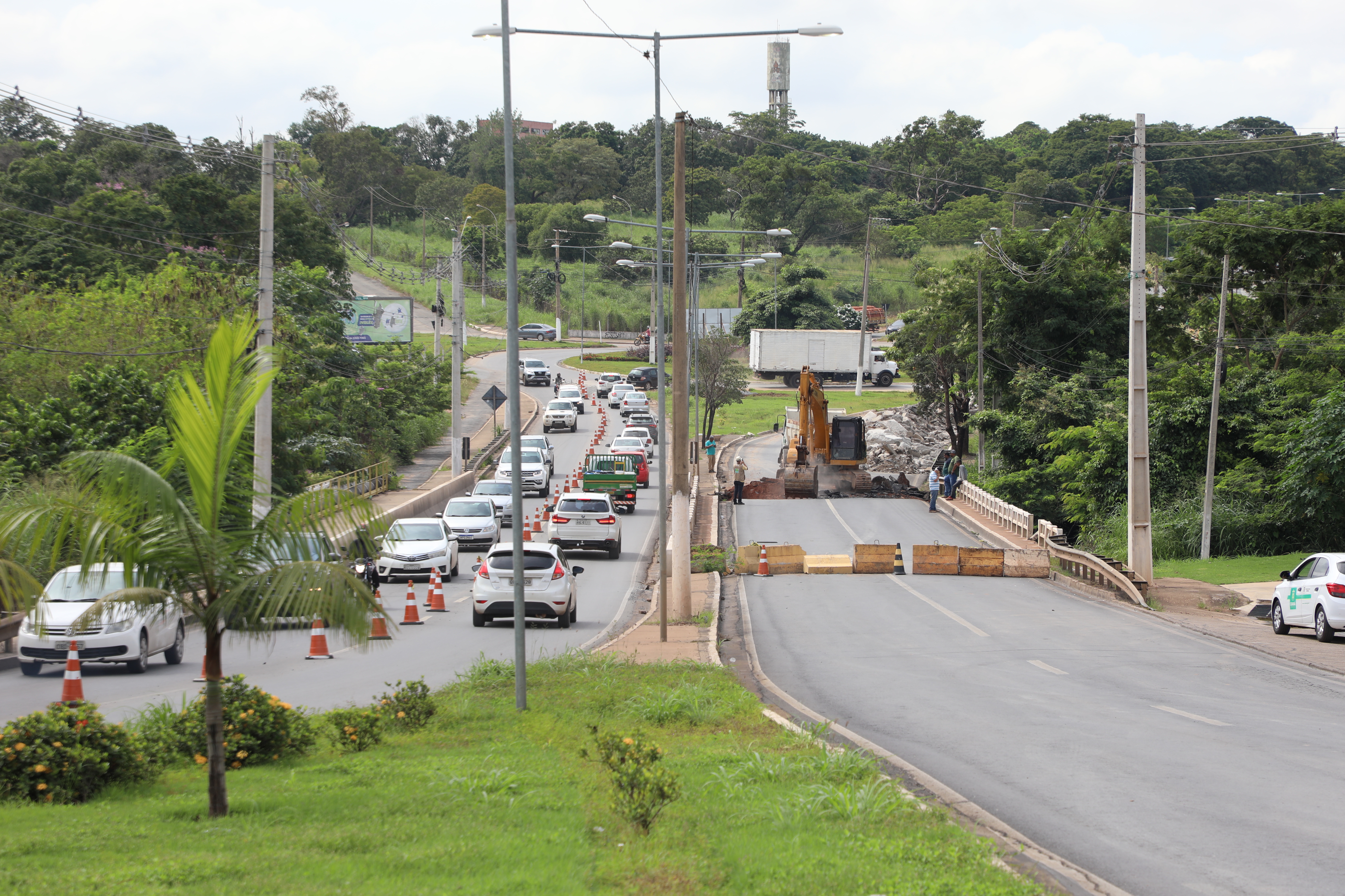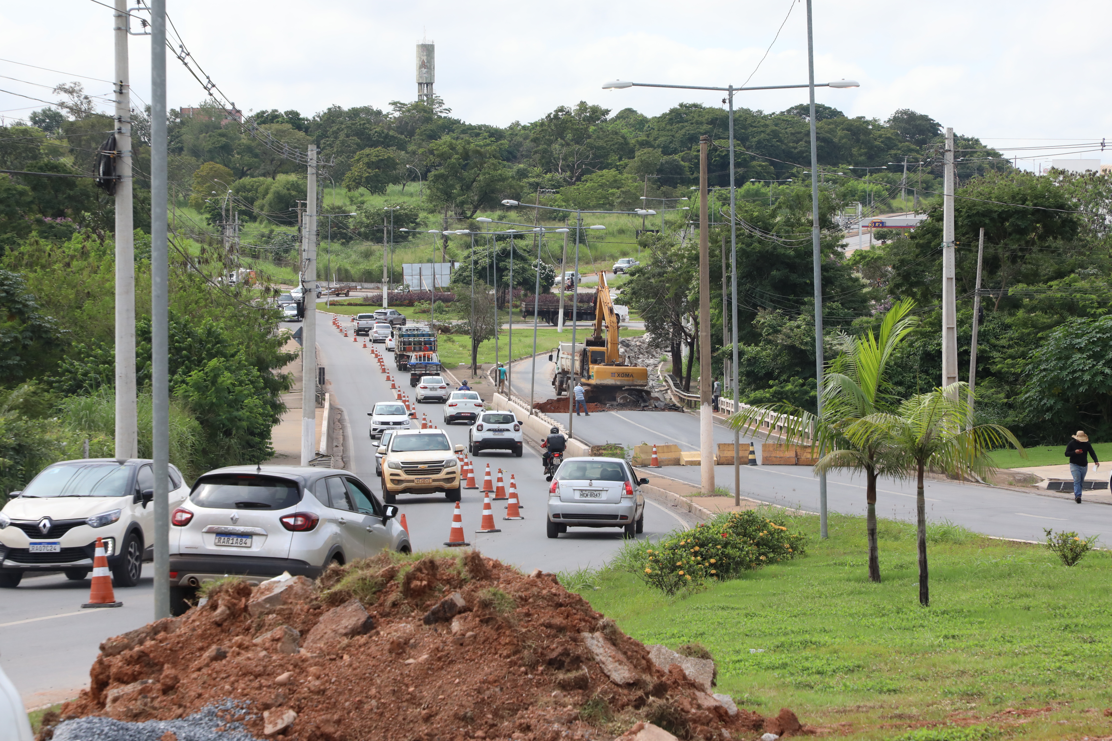 Na última sexta-feira (18), a pista sentido bairro-centro foi interditada pela Defesa Civil em razão de uma erosão registrada no local. Com a finalidade reforçar a segurança dos pedestres e motoristas que trafegam pelo trecho, a Secretaria Municipal de Mobilidade Urbana (SEMOB) esteve presente, implantando toda a sinalização adequada, inclusive, com auxílio de blocos de concreto. Os agentes municipais fizeram adequações na pista bairro-centro, a fim de minimizar os impactos no trânsito, transformando-a em mão dupla.
