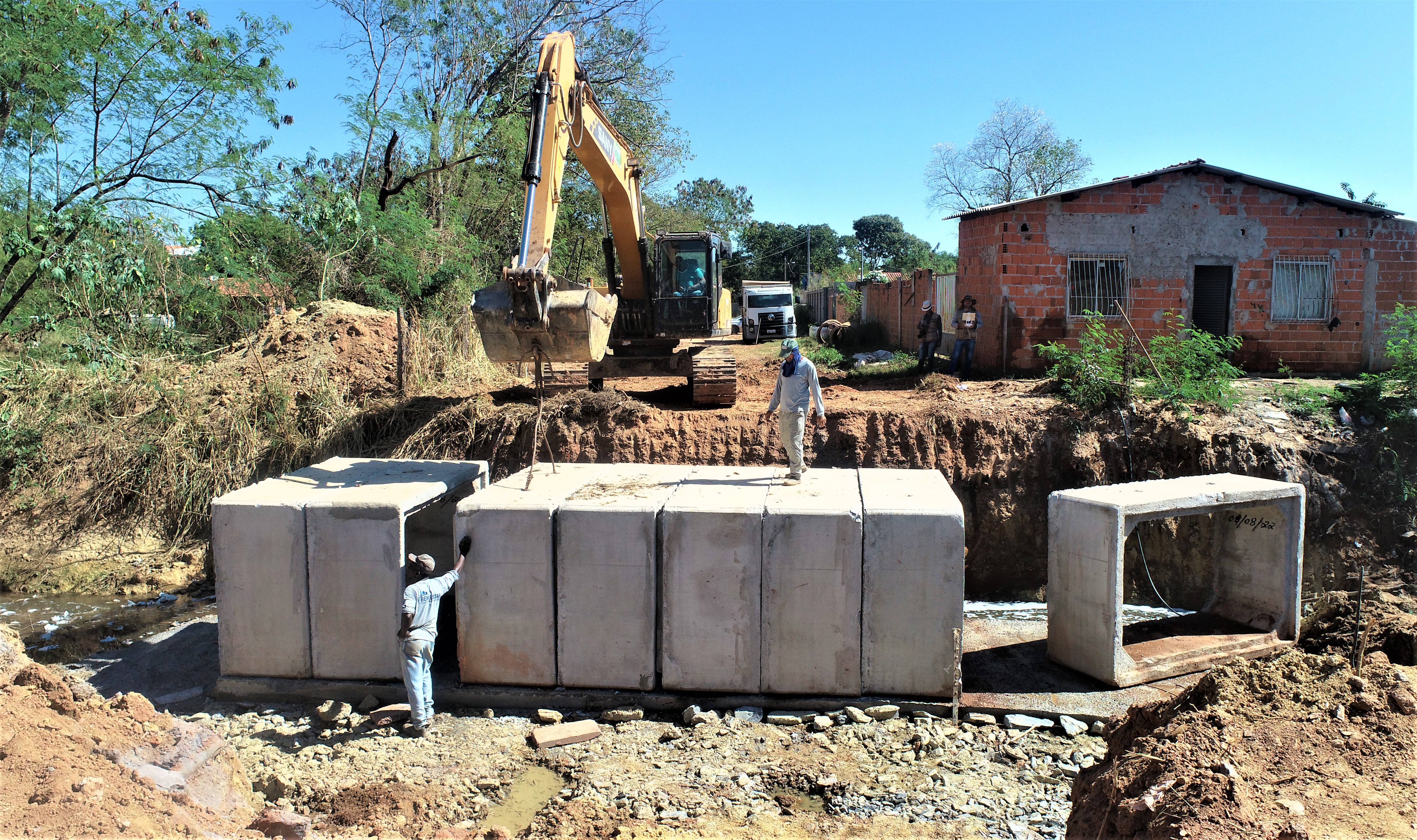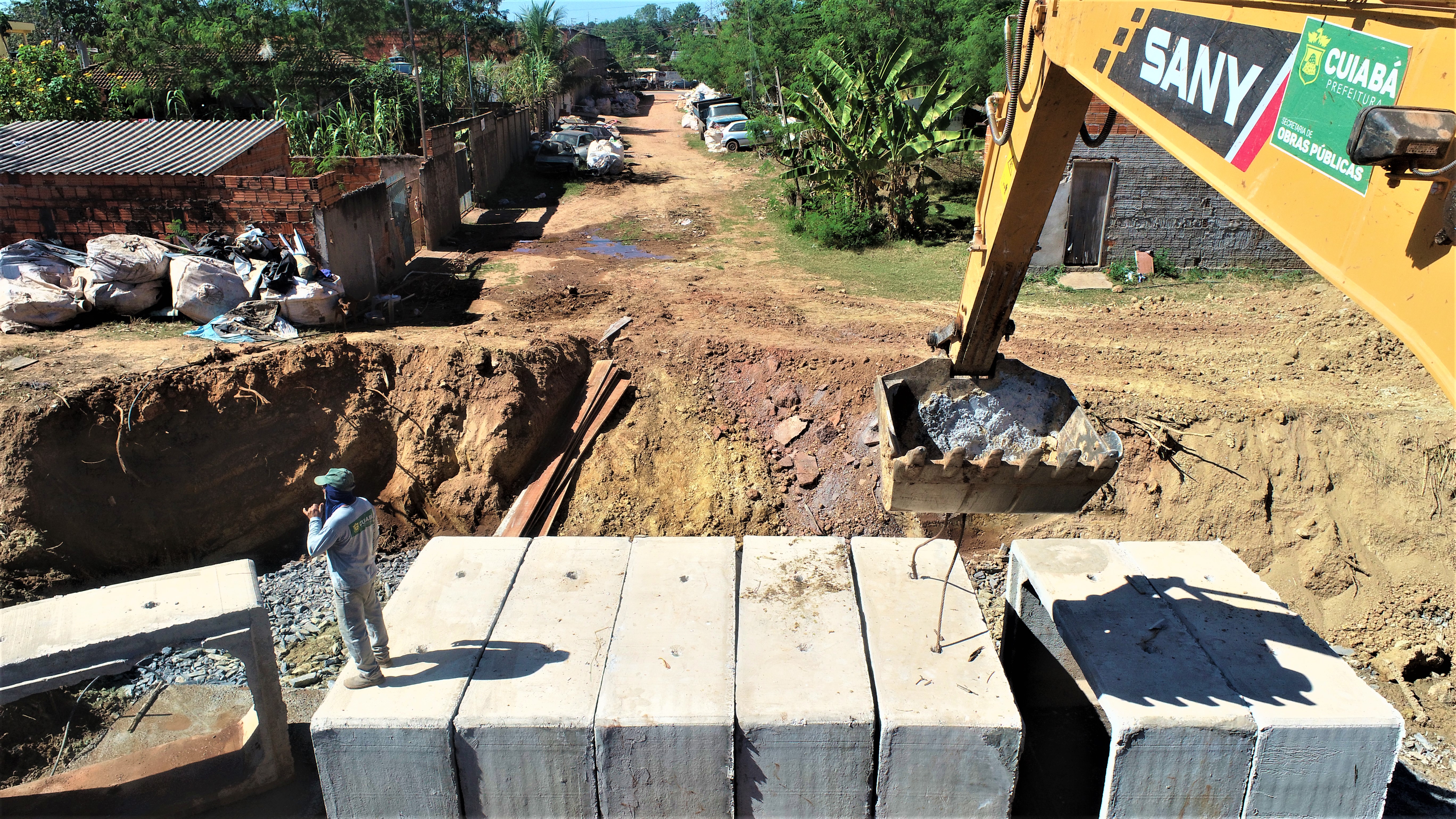 A Prefeitura de Cuiabá, via Secretaria Municipal de Obras Públicas, promove ações de melhorias no bairro Três Barras, em Cuiabá. Nesta segunda-feira (26), as equipes atuam na instalação de dez aduelas na avenida H (ou Imaculada Conceição). A aduela serve para a canalização de córregos, rios e passagem de pontes. Também são utilizadas para a construção e montagem de caixas de retardo ou contenção, que servem para o armazenamento de água em grandes volumes.