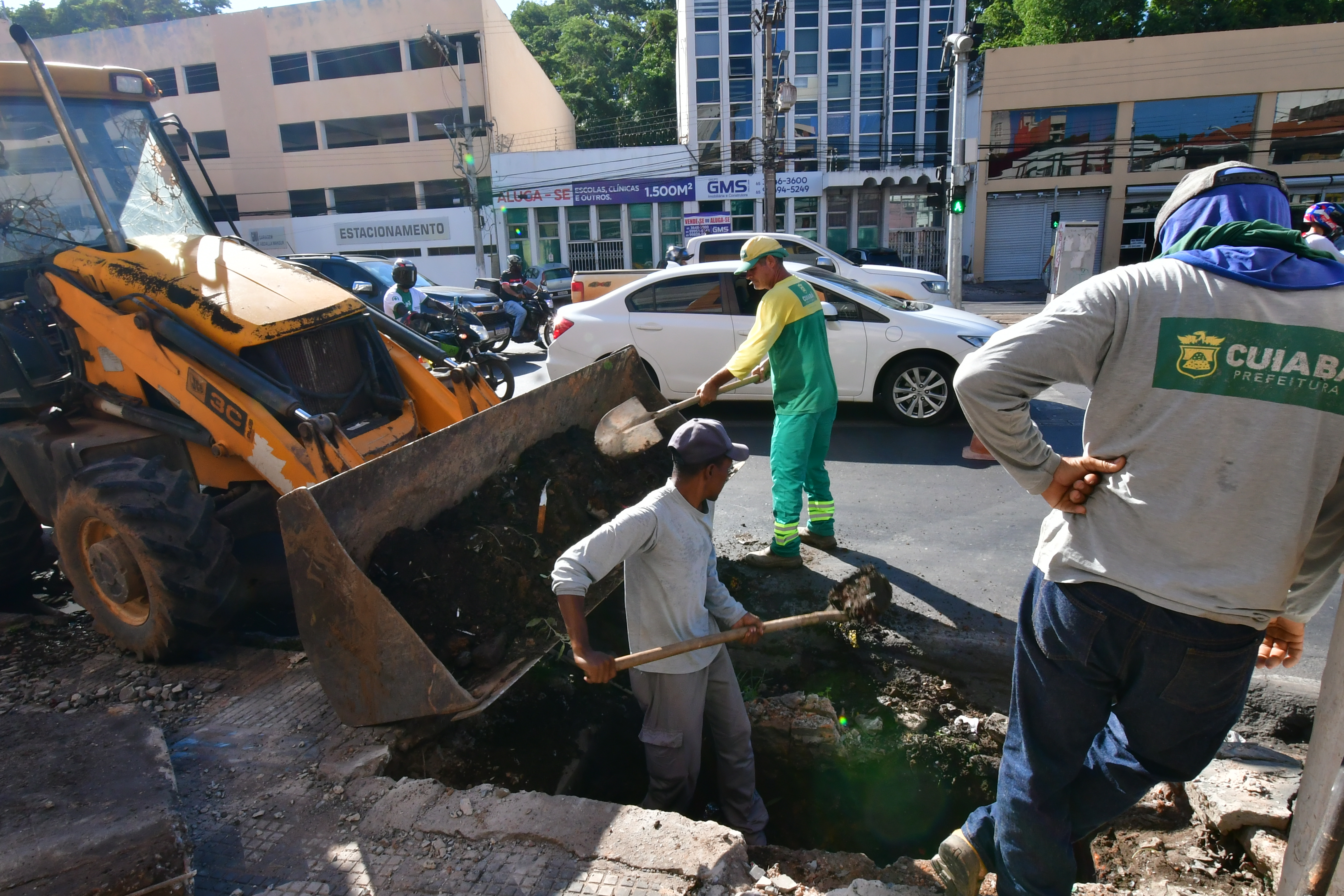 A Prefeitura de Cuiabá, por meio da Secretaria Municipal de Obras, realiza nesta quarta-feira (28) a limpeza de dois bueiros na Avenida Tenente Coronel Duarte (Prainha). O trabalho teve início pela manhã e será finalizado ainda hoje, sem afetar o trânsito. Além da limpeza dos bueiros, a equipe também realizará a limpeza da calçada, removendo o excesso de terra e lodo que se acumulou devido ao entupimento do esgoto.