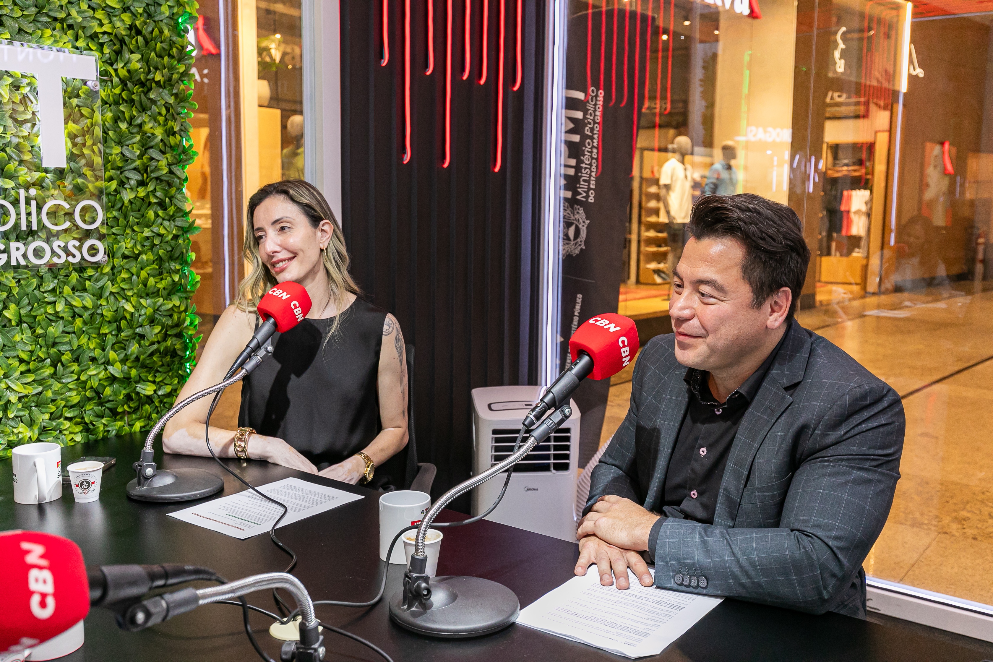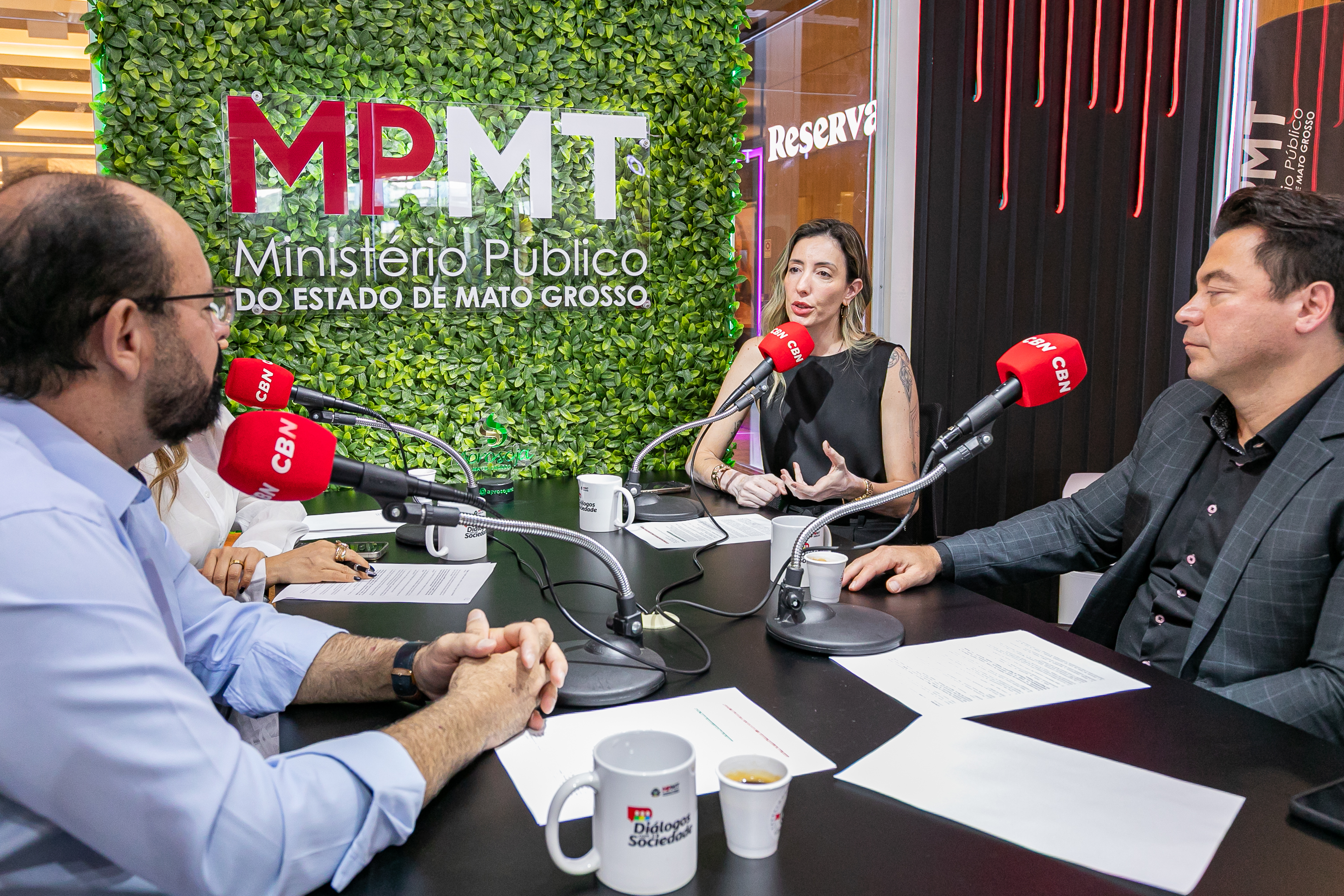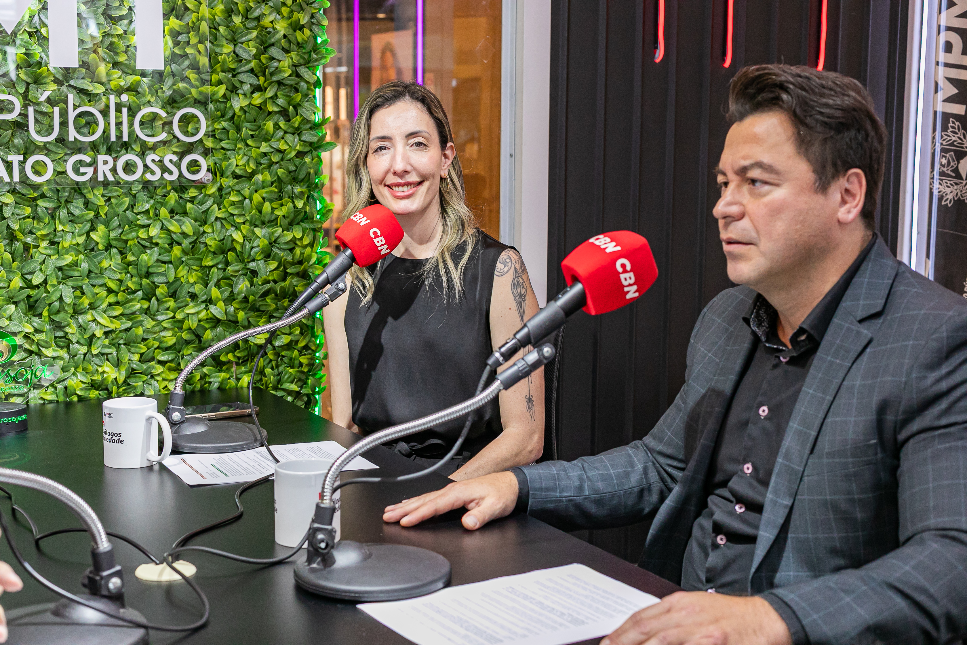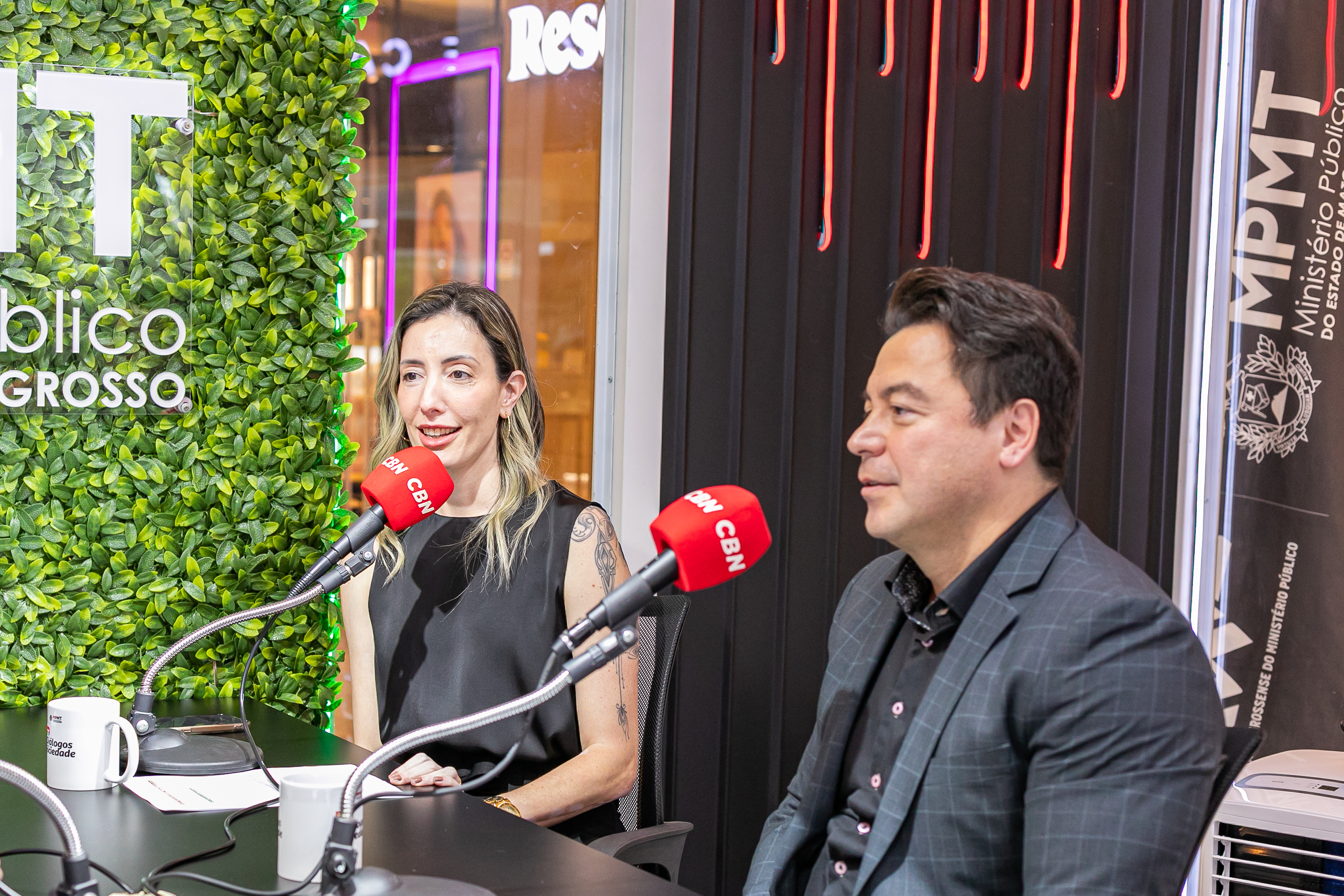 A secretária de Ordem Pública de Cuiabá, Juliana Chiquito Palhares, e o promotor de Justiça Mauro Poderoso de Souza participaram da rodada de entrevistas do projeto “Diálogos com a Sociedade”, promovido pelo Ministério Público de Mato Grosso (MPMT), para discutir a poluição sonora e a perturbação do sossego na capital.