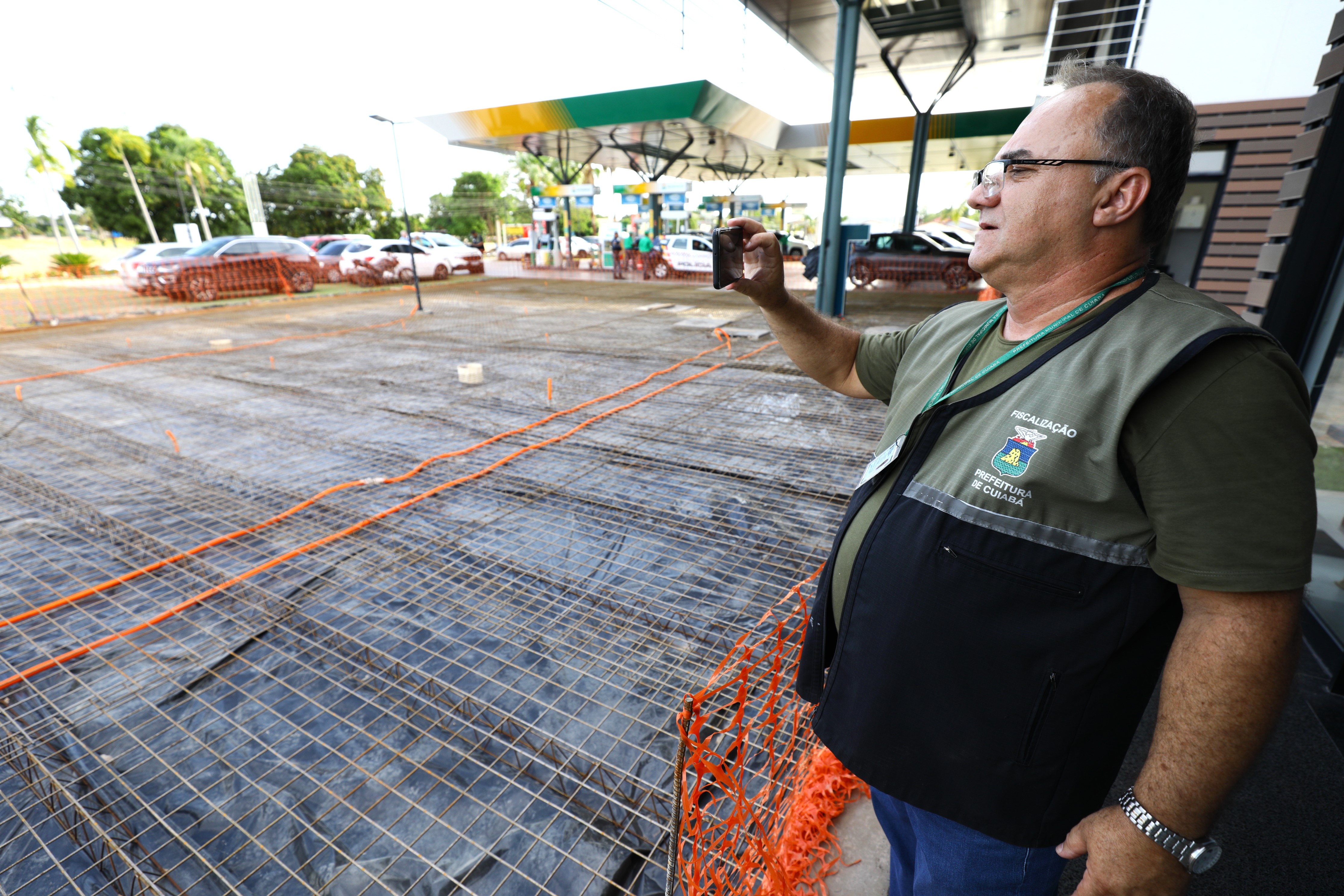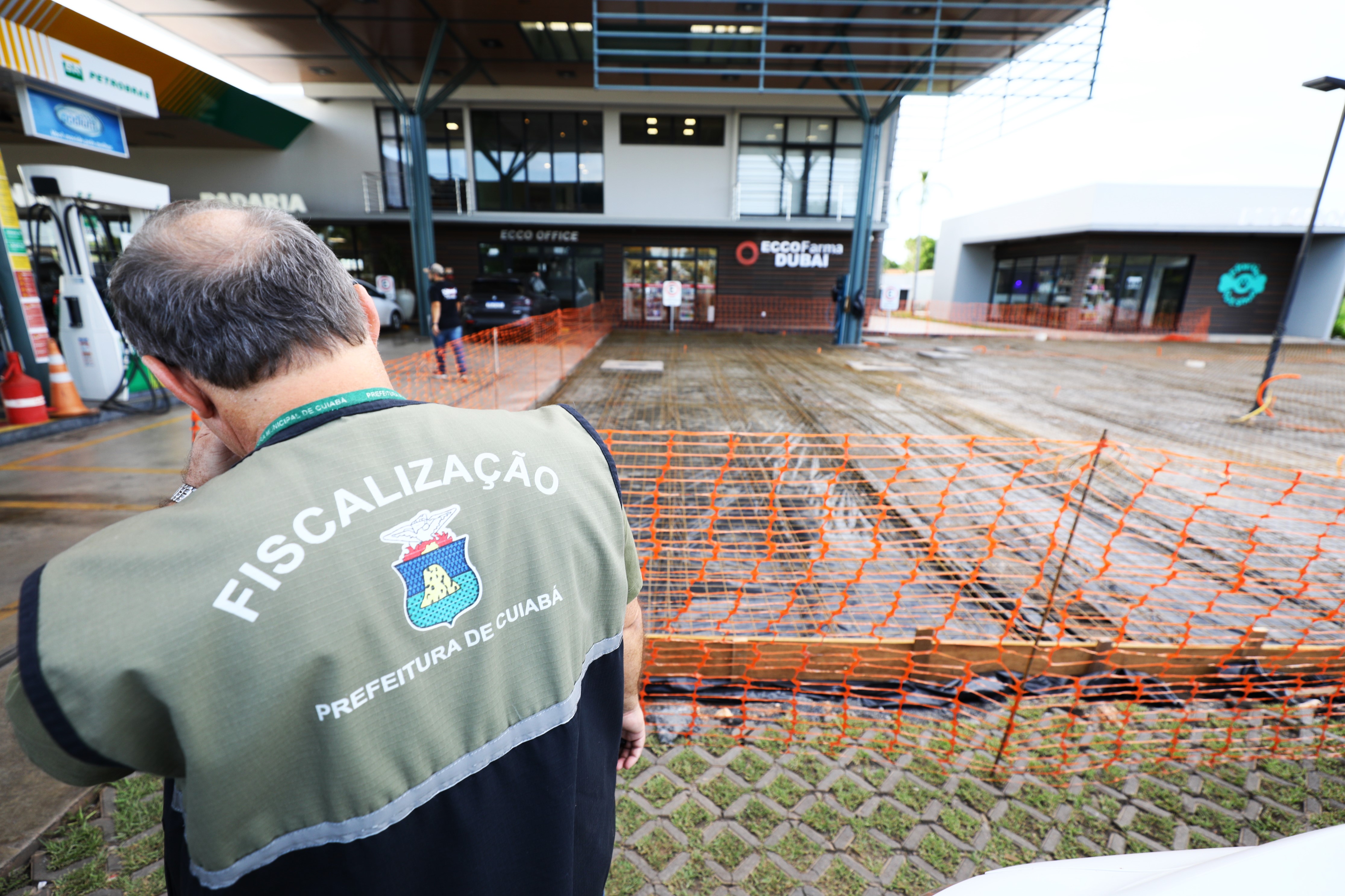 Secretaria de Ordem Pública embarga obra de concretagem externa em posto de combustível em Cuiabá