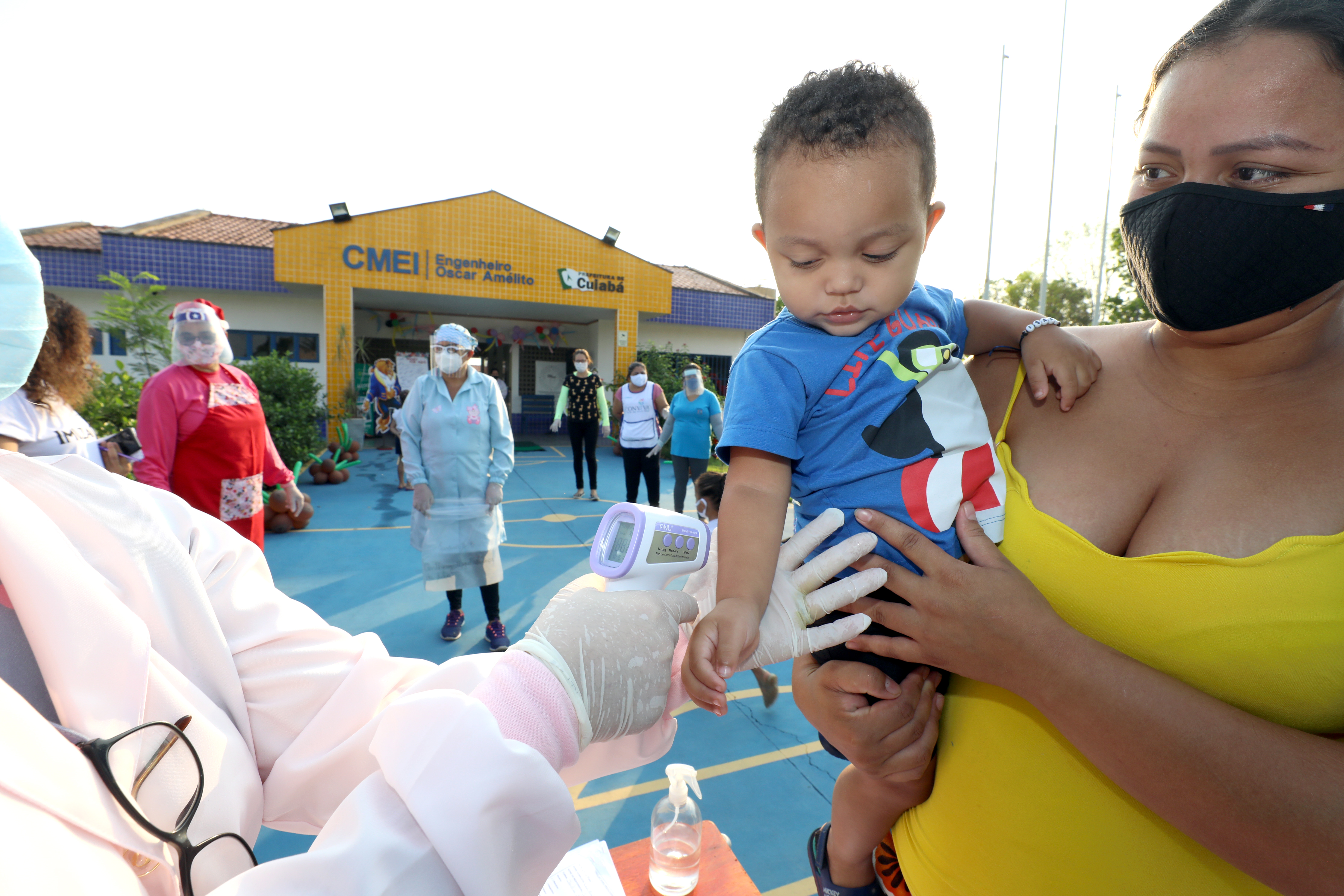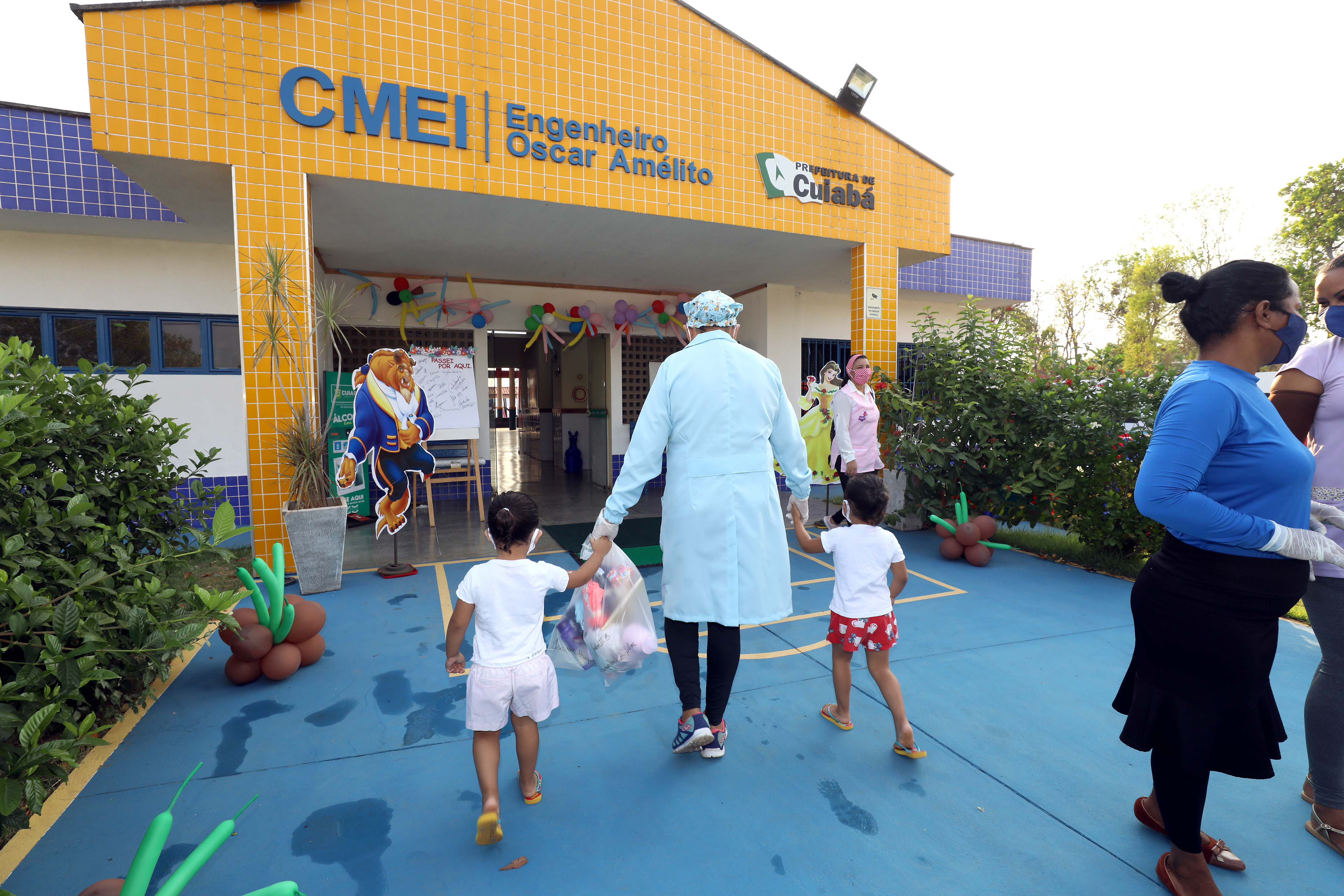 De acordo com a diretora do CMEI Engenheiro Oscar Amélito, Eliane Moura, o primeiro dia de aulas presenciais, no modelo híbrido, foi melhor do que o esperado. As crianças foram recepcionadas no portão da unidade, onde os pais tiveram que responder a um questionário informando se a criança ou algum familiar teve algum sintoma gripal nos últimos dias, houve a aferição de temperatura corporal dos alunos, os pertences de cada criança foram colocados em sacos plásticos separados e identificados e todos os profissionais usavam máscaras, luvas e jalecos. “Os pais aceitaram muito bem as novidades, os protocolos... Obedeceram direitinho, foi tudo muito calmo, foi surpreendente a calma das famílias e das crianças, principalmente. Teve uma que voltou porque estava apresentando sintomas de gripe. Os pais entenderam a situação porque é um cuidado da saúde coletiva e já foram orientados a procurar a unidade de saúde mais próxima e, qualquer coisa, entrar em contato conosco que a unidade vai acompanhar caso a caso, juntamente com a Saúde”, disse.