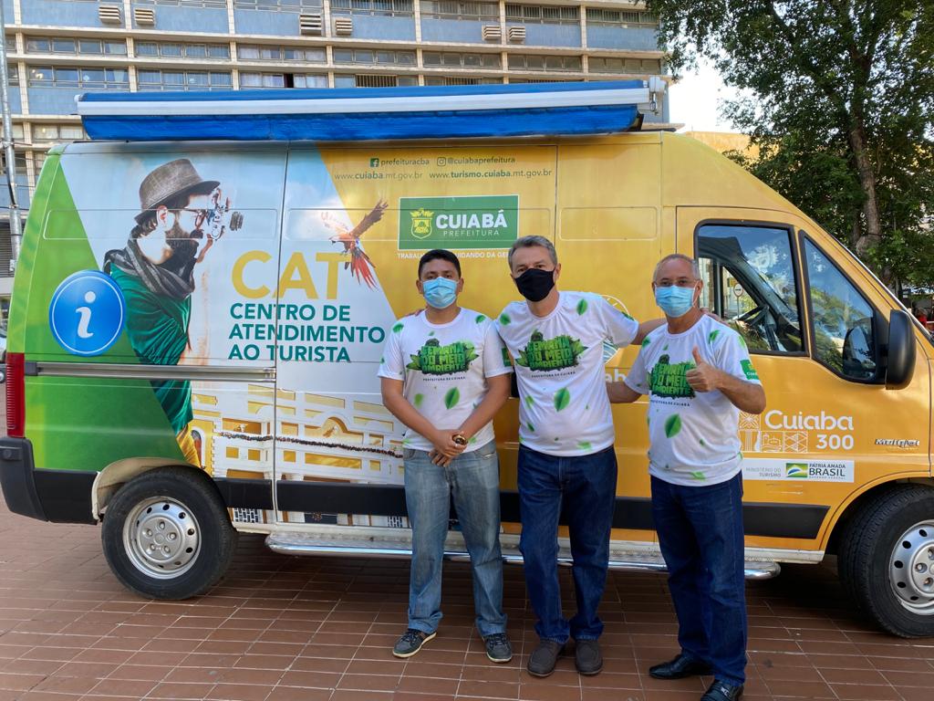 A Secretaria Municipal de Turismo participa das atividades da Semana do Meio Ambiente com a presença do Centro de Atendimento ao Turista- CAT Móvel. Fazendo um city tour pelos pontos das ações em comemoração ao Dia do Meio Ambiente, 5 de junho, as pessoas foram informadas sobre os principais pontos turísticos da capital e parques municipais. O evento está sendo promovido pela Secretaria de Meio Ambiente e Desenvolvimento Urbano Sustentável, em parceria com a Empresa Cuiabana de Limpeza Urbana (Limpurb).