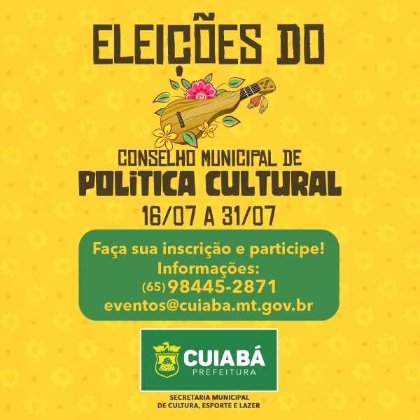 A Secretaria de Cultura, Esporte e Lazer publica nesta quarta-feira (05), a lista oficial de habilitados como delegados e candidatos a conselheiros no processo eleitoral do Conselho Municipal de Política Cultural de Cuiabá. Das 425 inscrições, dentre delegados e conselheiros, para as oito cadeiras representativas, 241 foram homologadas. As eleições acontecem no dia 07 de agosto, com horário para a votação das 8h às 17h.