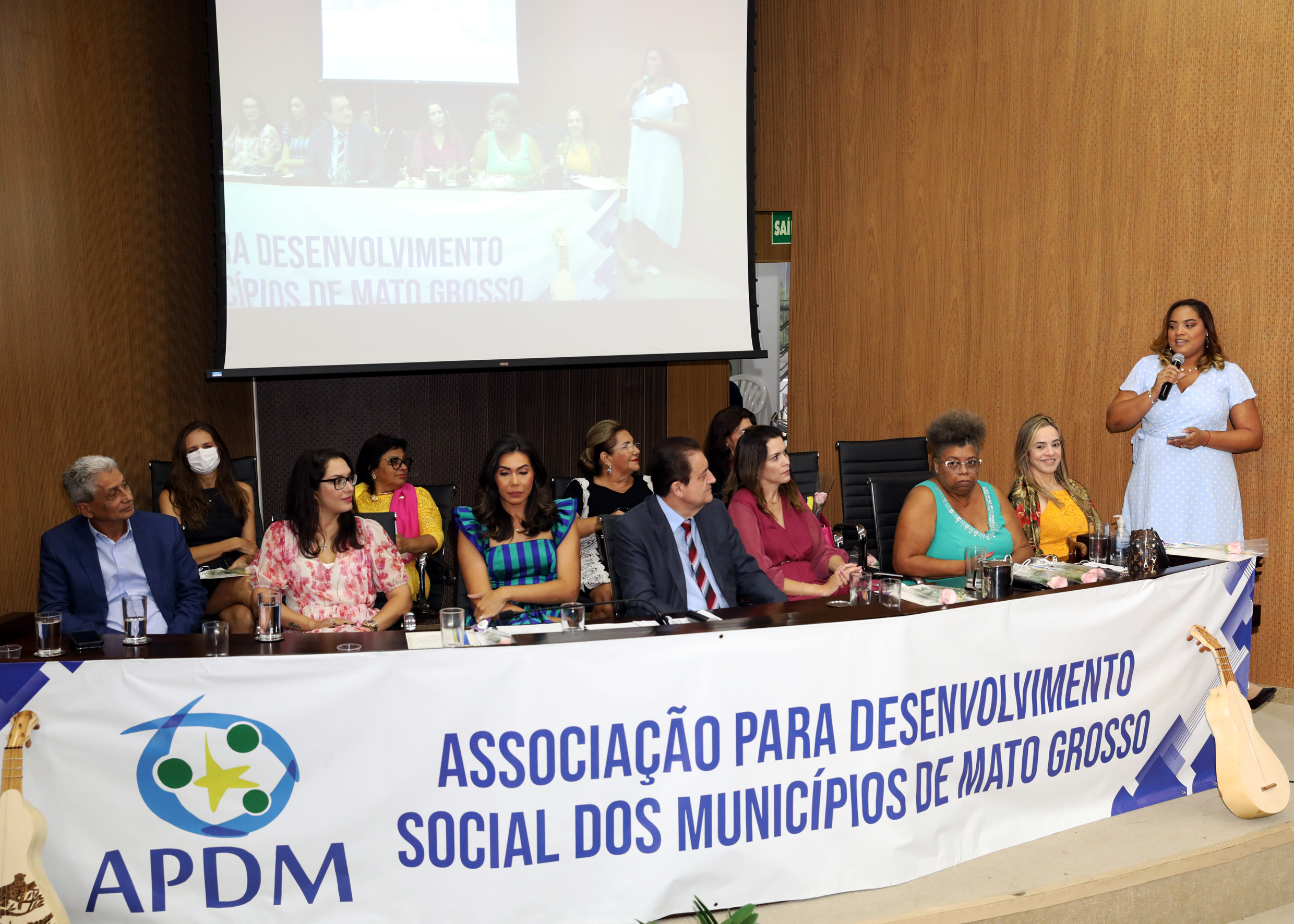A presidente da Associação das Primeiras-Damas de Mato Grosso- APDM, Scheila Pedroso, muito emocionada, disse que a ideia da realização do grandioso evento, alusivo ao Mês de Março, voltado para a Mulher, foi para homenagear as mulheres que estão à frente das políticas públicas e sociais do nosso estado, pelos relevantes trabalhos e ações que fortalecem a promoção de ações socioeducativas voltadas ao combate da violência contra a mulher, pela valorização da mulher, políticas de geração de emprego e renda, combate ao preconceito e ao desrespeito contra as mulheres, e o fortalecimento da mulher em todas as esperas da sociedade. Ninguém constrói um trabalho sozinha. O meu muito obrigada”, ressaltou a presidente da Associação das Primeiras-damas de Mato Grosso, Scheila Pedroso.