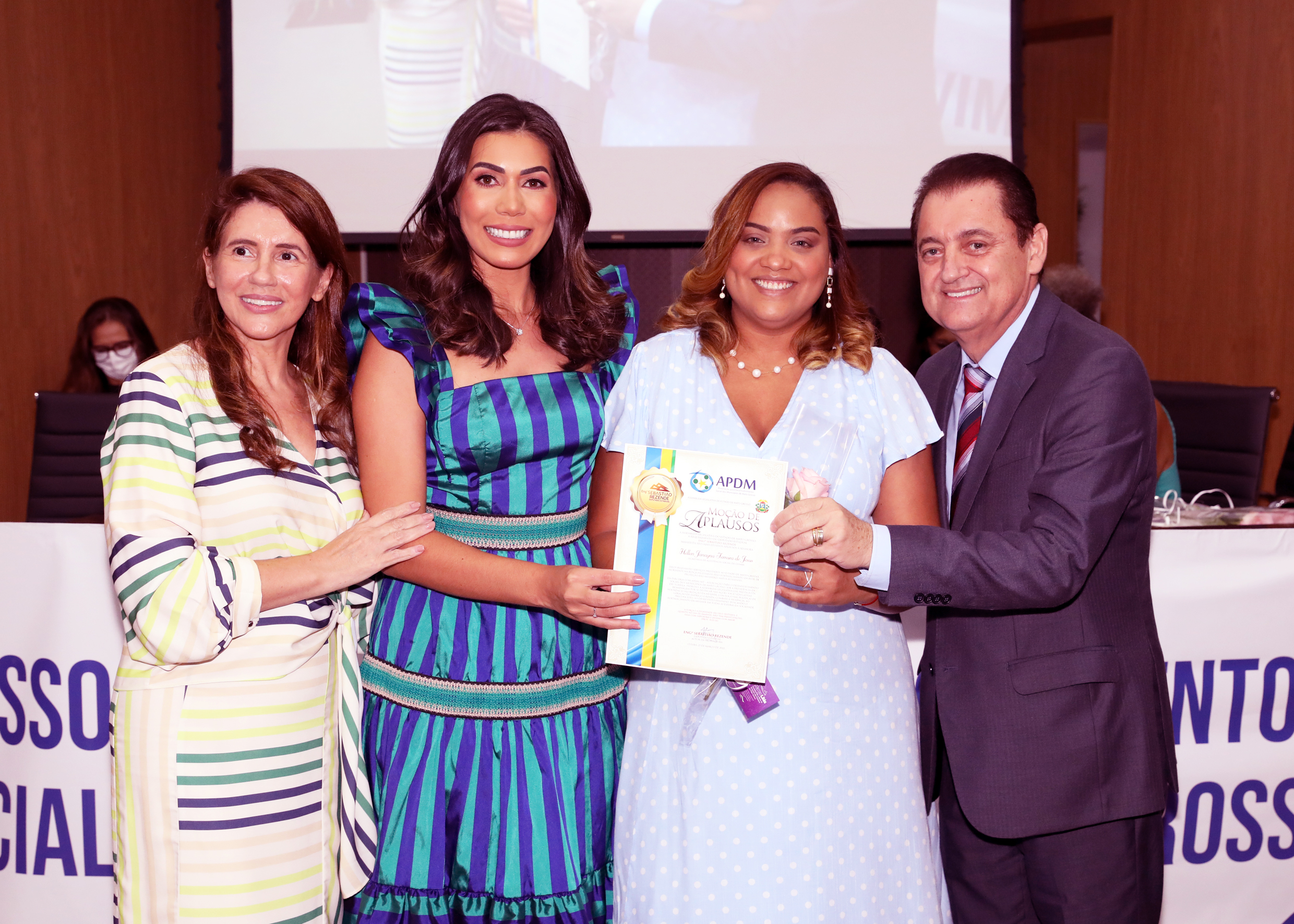 A secretária municipal de Assistência Social, Direitos Humanos e da Pessoa com Deficiência, Hellen Ferreira, foi agraciada com a honraria concedida pelo deputado estadual Sebastião Rezende durante a Sessão Solene realizada na última sexta-feira (25), no auditório da Associação Mato-grossense dos Municípios (AMM). A sessão de entrega das Moções de Aplauso do Legislativo Estadual integrou a comemoração ao Dia Internacional da Mulher: 8 de março, realizado pela Associação das Primeiras-Damas de Mato Gross- APDM. “Aproveitei o evento promovido pela APDM para homenagear as primeiras-damas e secretarias municipais de Assistência Social dos 141 municípios mato-grossenses pelo importante papel executado. È uma forma justa de reconhecer o trabalho dessas mulheres em prol do desenvolvimento do Estado”, mencionou o deputado estadual, Sebastião Rezende.