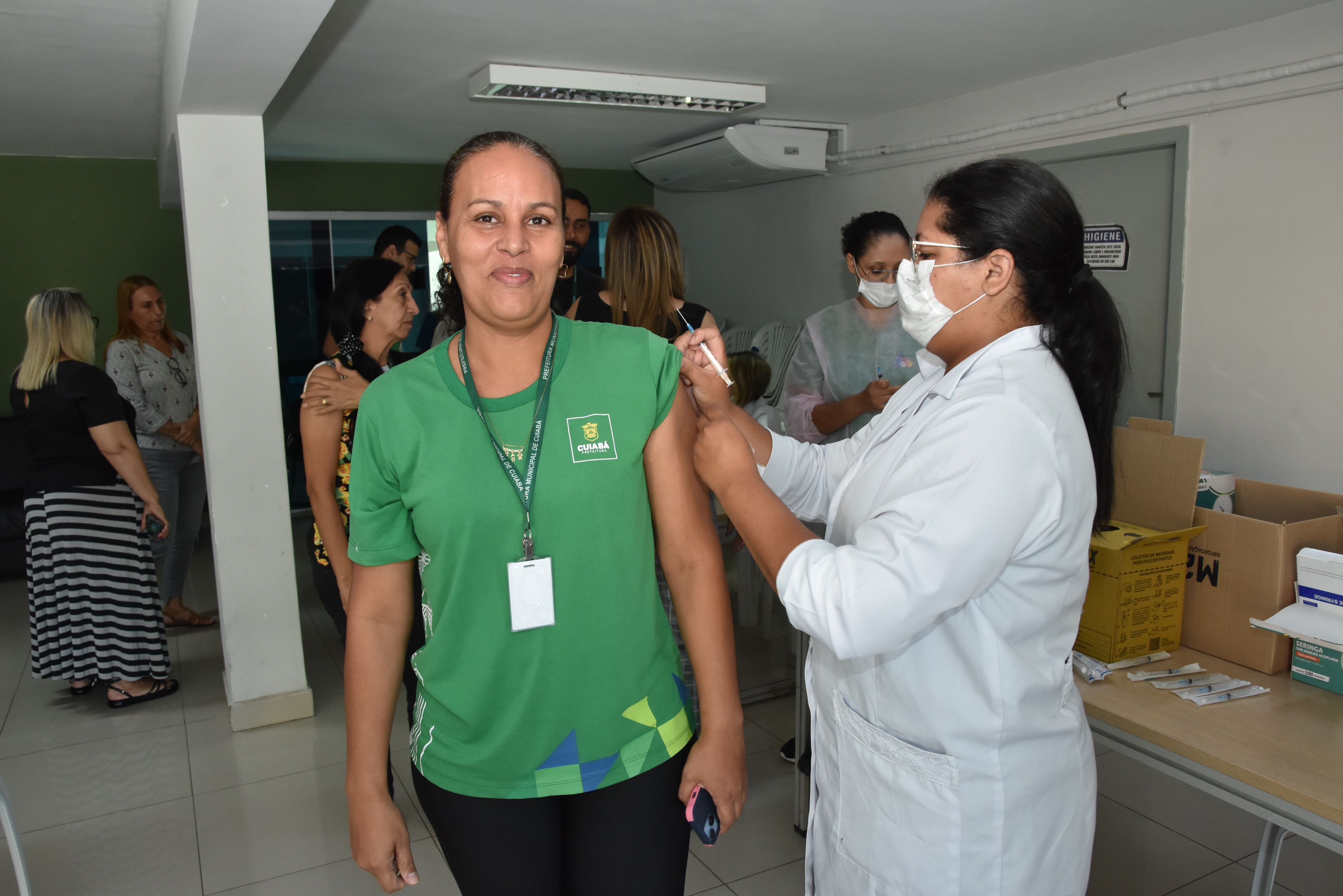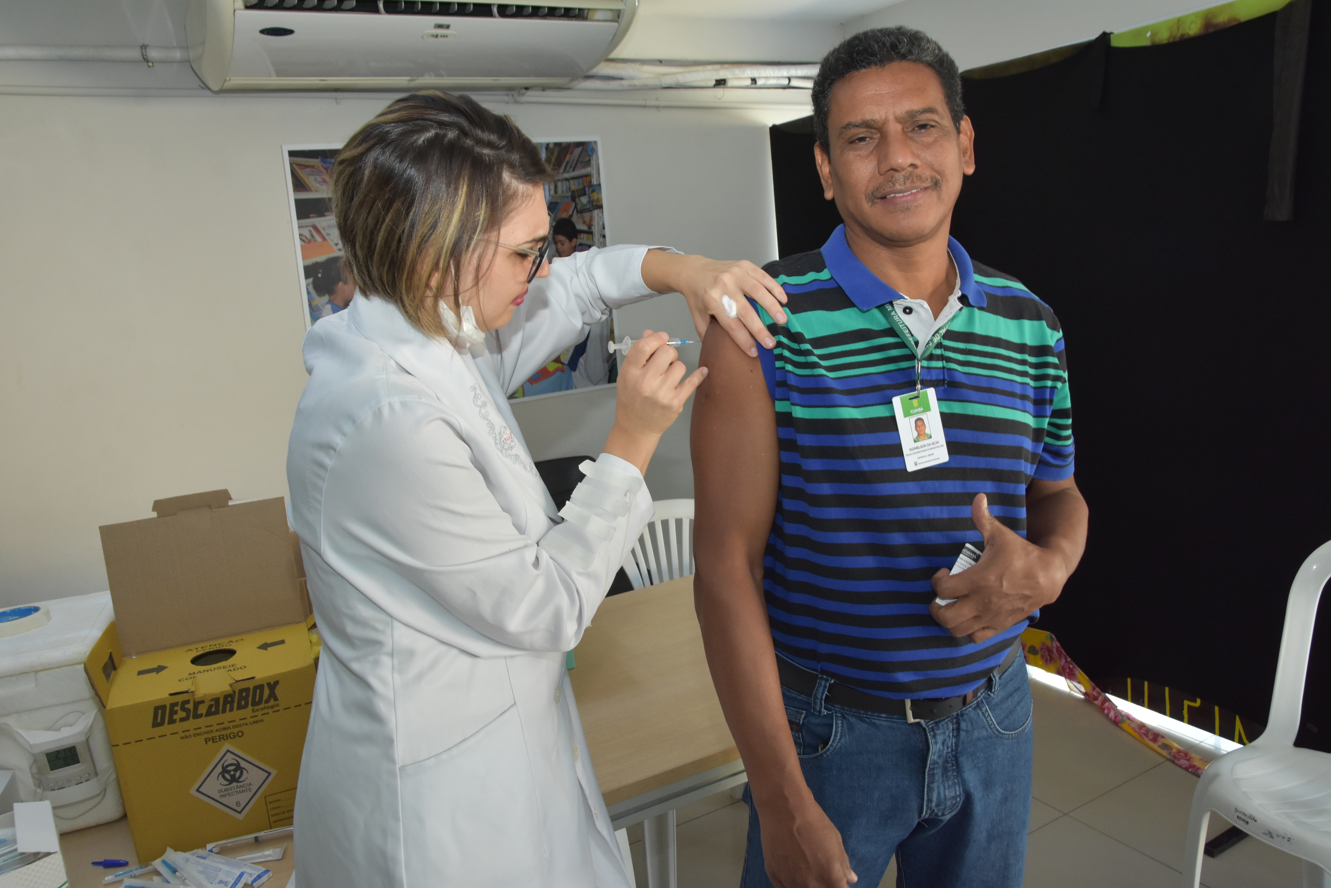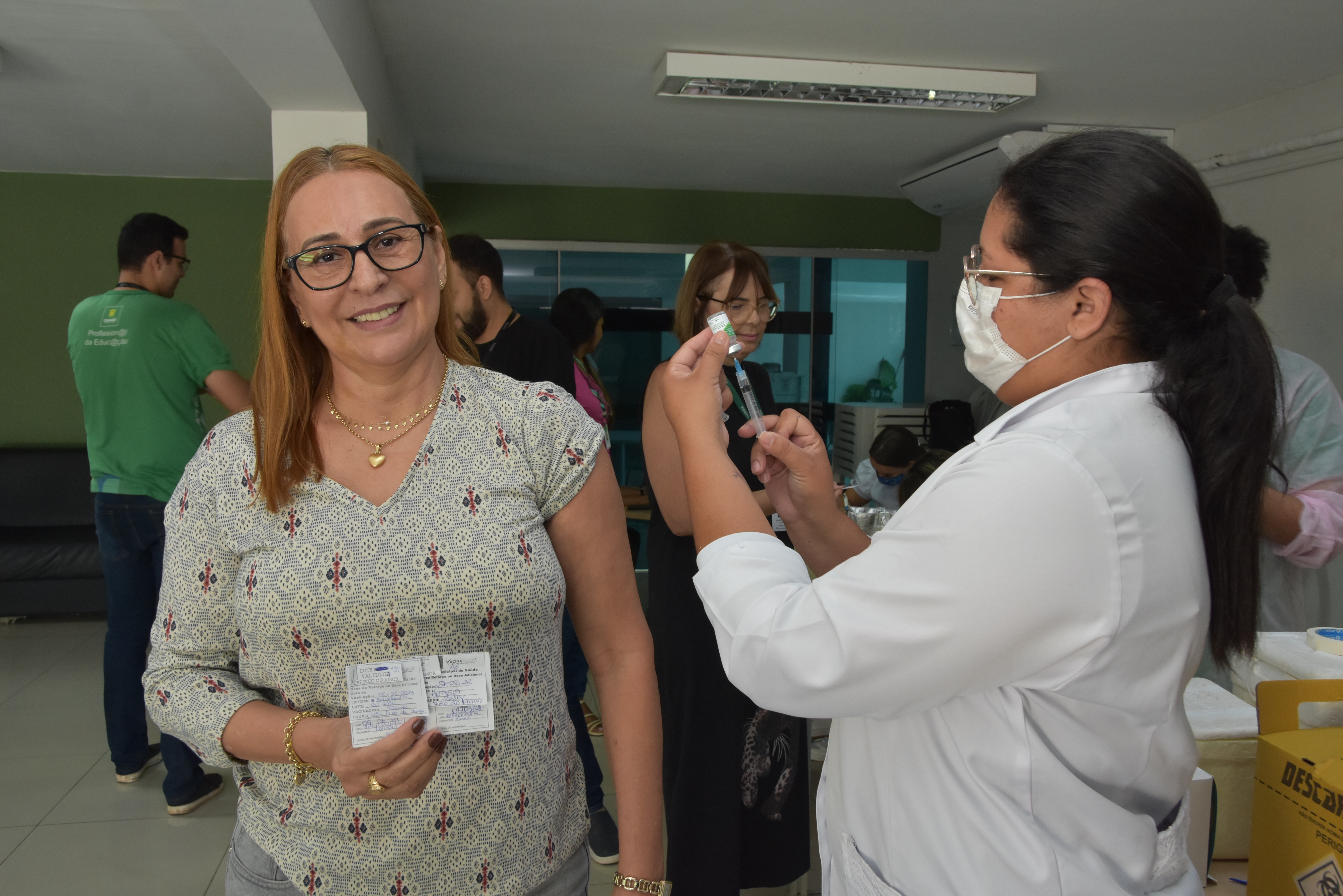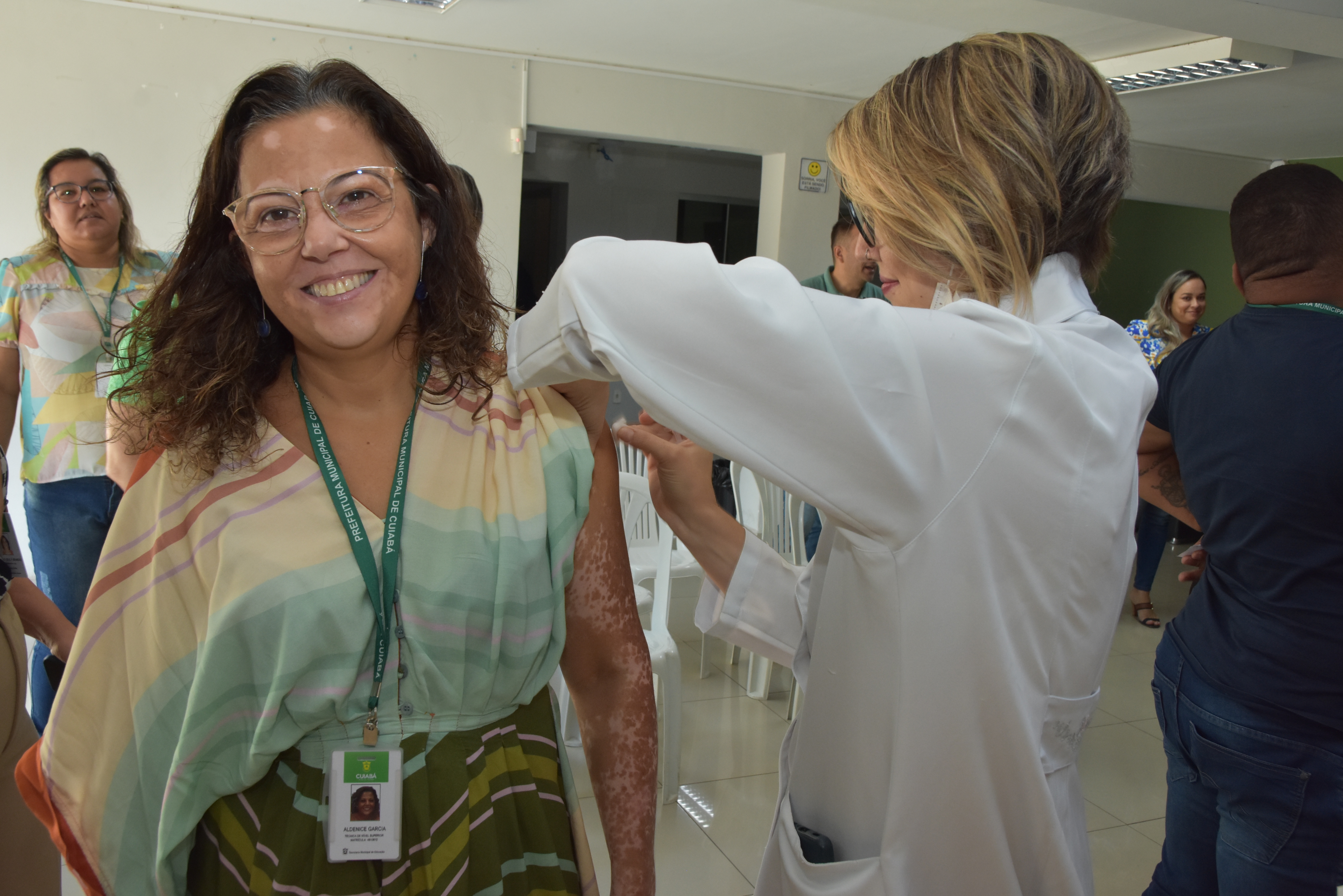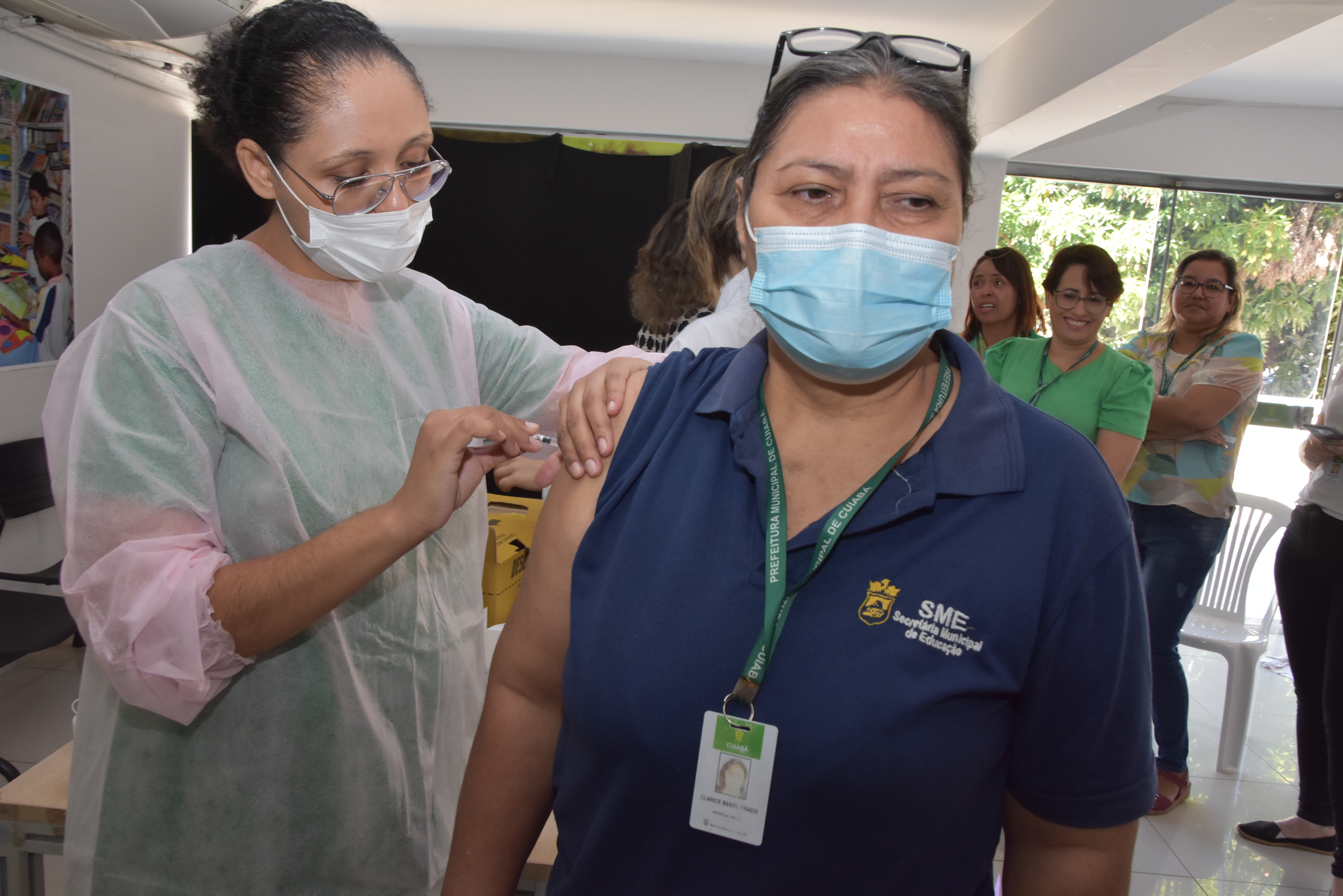 A Secretaria Municipal de Educação realizou nesta segunda-feira (5), uma campanha de vacinação na sede do órgão. A iniciativa foi coordenada pela equipe multidisciplinar do Espaço do Servidor em parceria com os profissionais da Unidade Básica de Saúde (UBS) do bairro Pico do Amor. Foram vacinados 348 profissionais da educação.