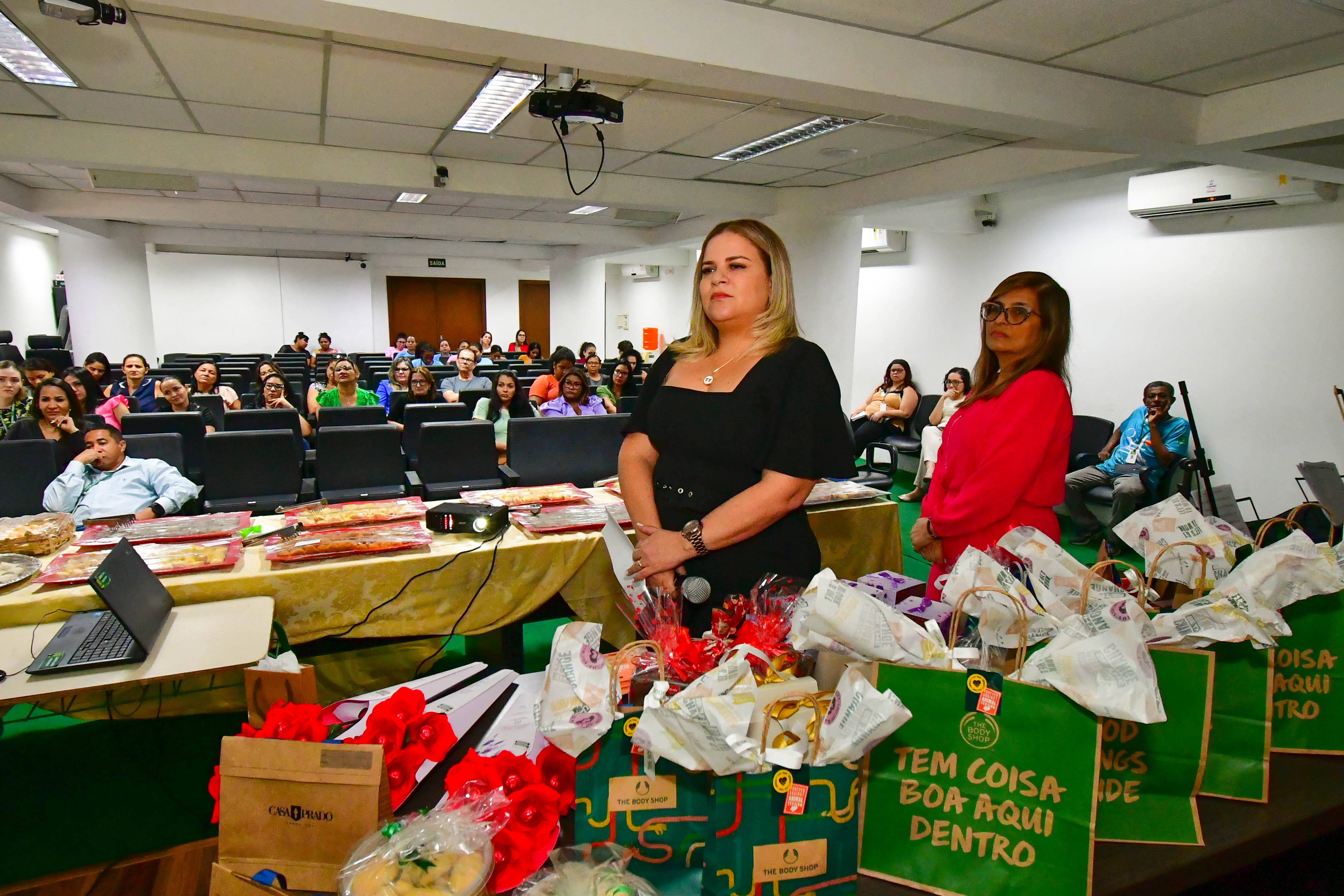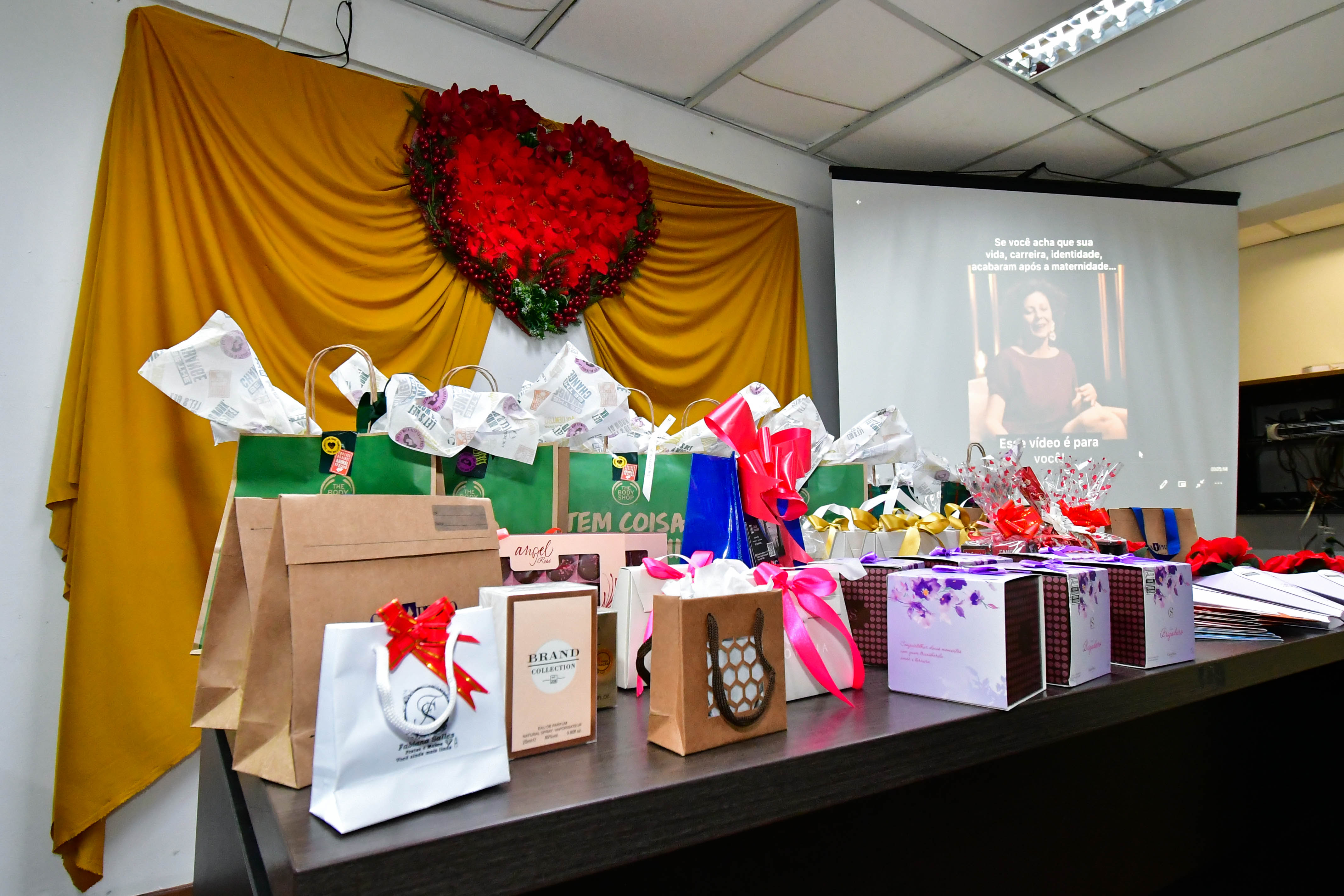 O sorteio de brindes foi um momento muito esperado pelas mães. Todas foram contempladas com algum presente, doados por diversos parceiros da Secretaria de Gestão. A alegria nos rostos das mães era visível, demonstrando o quão especial é ser lembrada e valorizada em datas como essa.