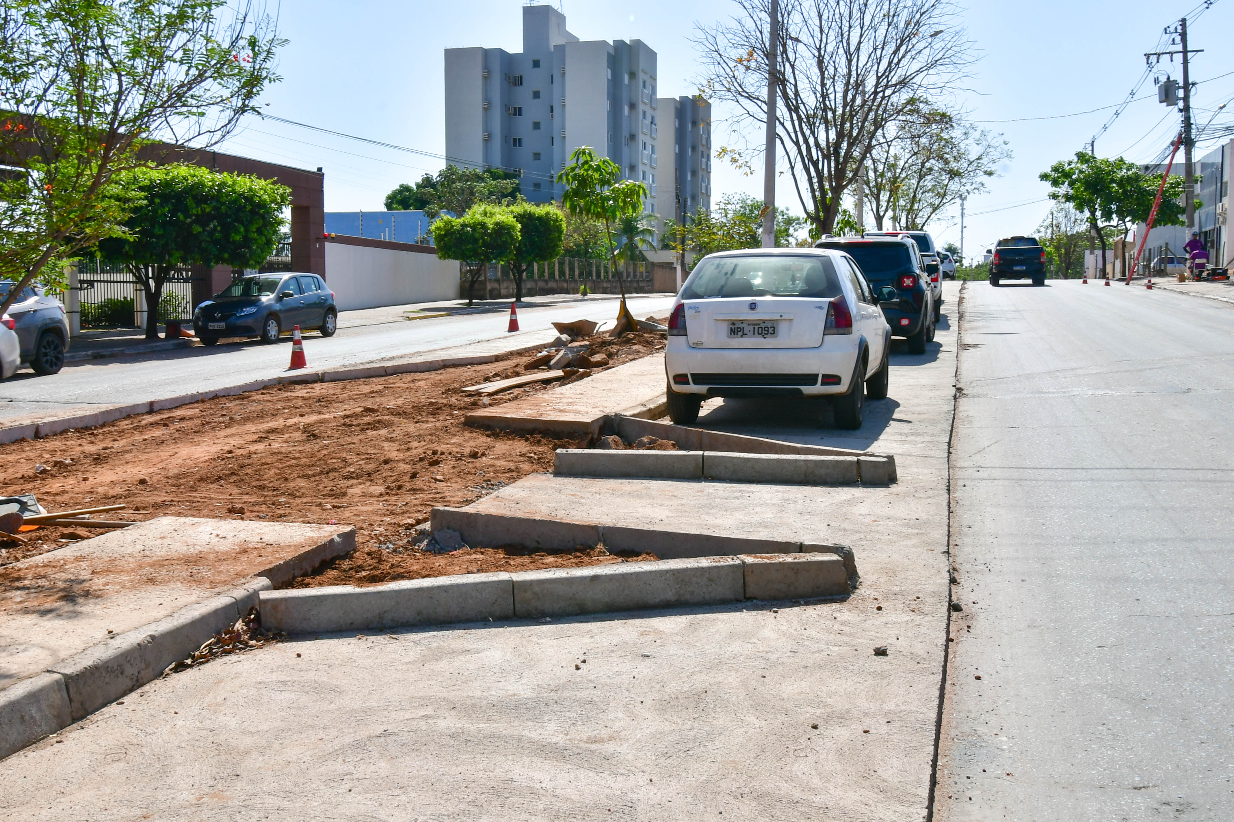 Conforme o projeto, a via recebe desde implantação da rede de drenagem de águas públicas até a recuperação completa de todo pavimento. Neste momento, a atuação está concentrada na etapa de construção de calçada e de vagas de estacionamento ao longo do canteiro central da avenida.