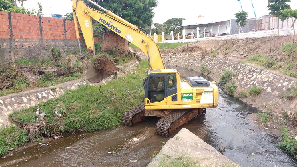 Os trabalhos têm sido conduzidos por uma equipe composta por oito servidores, que contam com o apoio de uma escavadeira hidráulica e cinco caminhões para a desobstrução do córrego e retirada de todo material acumulado. A previsão é de que até a próxima semana os serviços sejam finalizados.