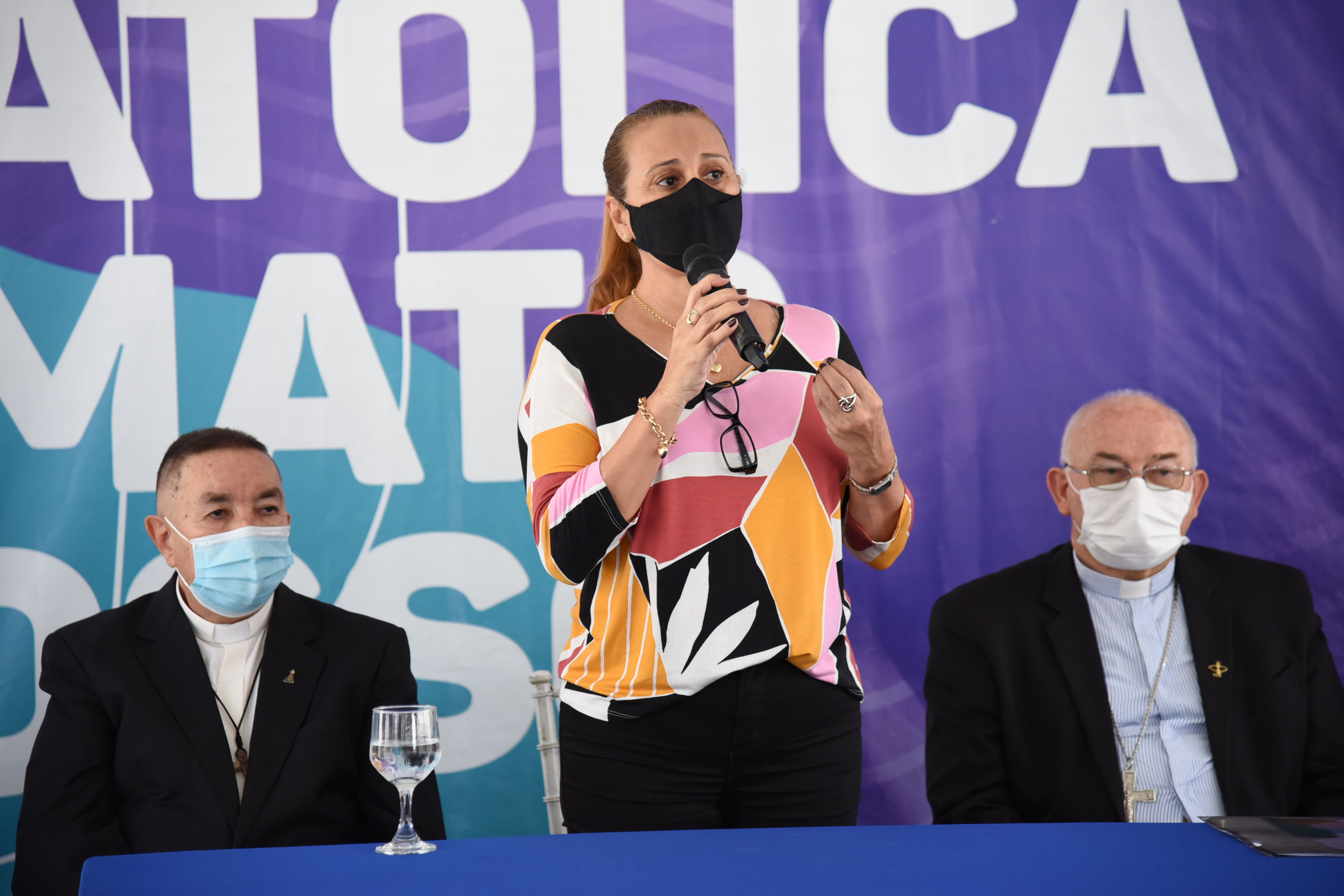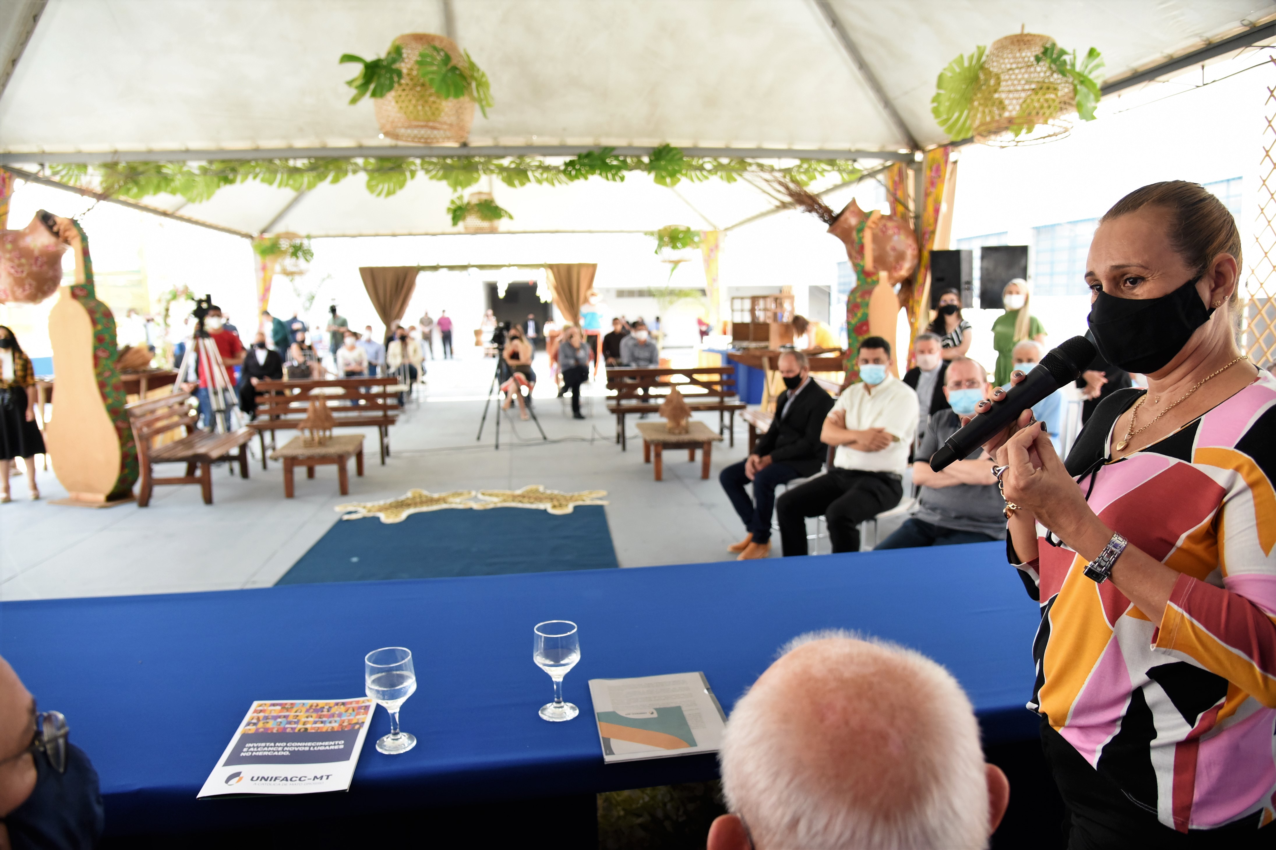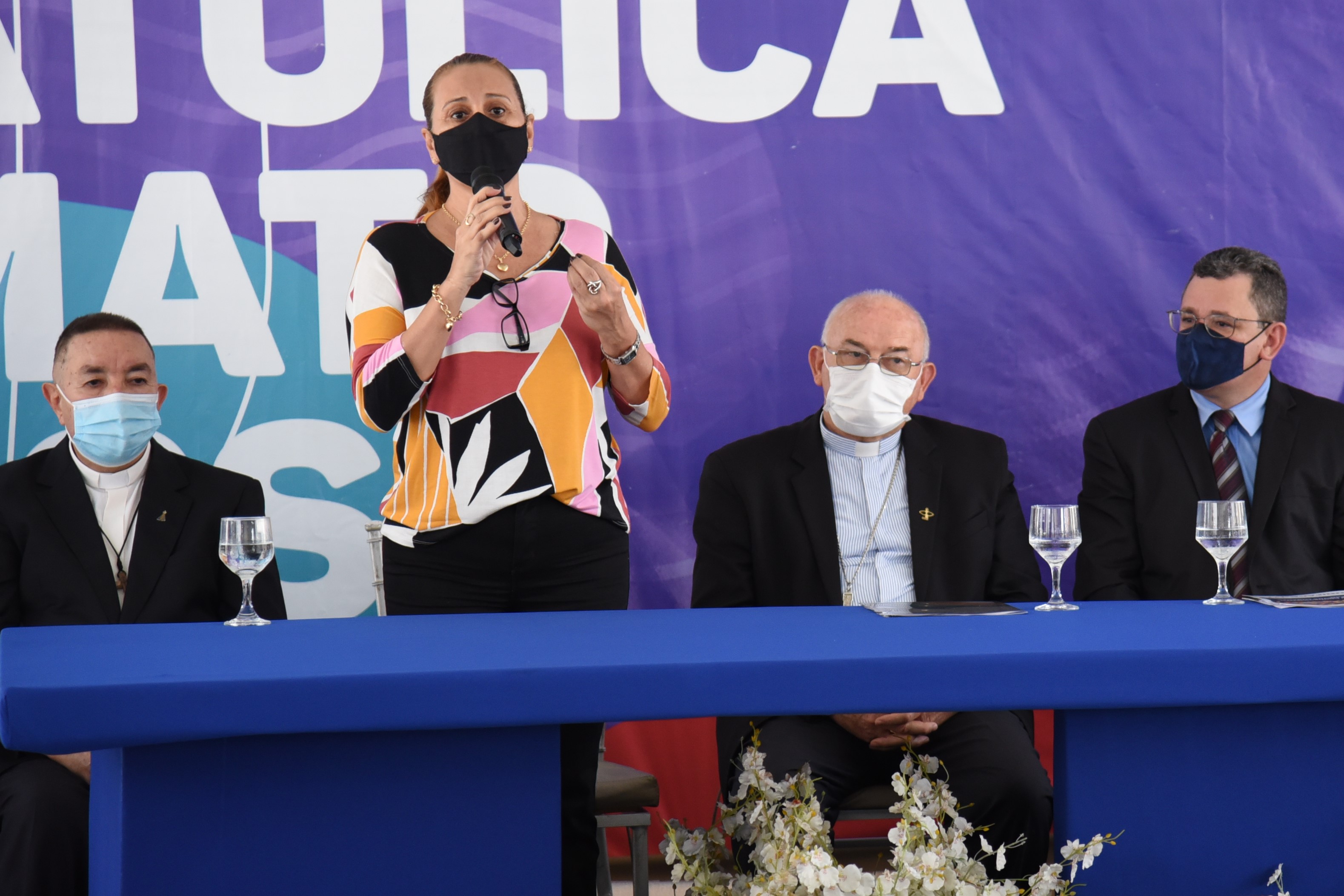 Representando o prefeito Emanuel Pinheiro, a secretária de Educação, Edilene Machado esteve na manhã desta terça-feira (01), em cerimônia de inauguração das novas instalação da União das Faculdades Católicas de Mato Grosso (Unifacc-MT). Na ocasião, a gestora destacou o investimento feito na educação municipal, como entrega de unidades escolares, atendimento de 86% dos alunos durante a pandemia, defesa da vacinação de educadores contra COVID-19 e celebrou a inauguração de mais uma faculdade no Município.