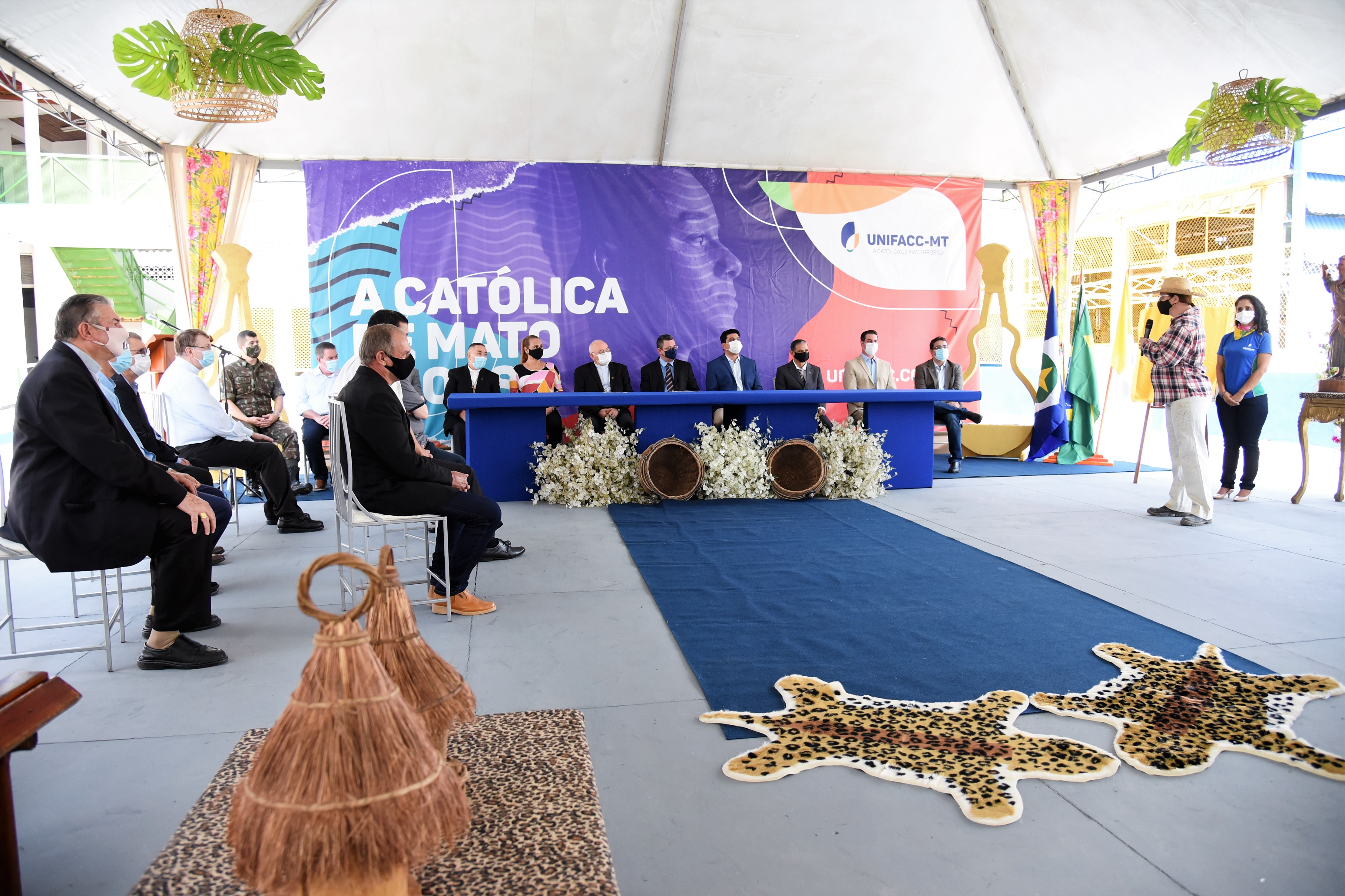 Estiveram presentes na cerimônia de inauguração o prefeito de Várzea Grande, Kalil Baracat, o arcebispo Dom Milton Santos, o reitor da Universidade do Estado de Mato Grosso (Unemat), Rodrigo Bruno Zanin e demais autoridades eclesiásticas. A nova unidade de ensino superior está localizada na Rua Pimenta Bueno, 534, Bairro Dom Aquino, em Cuiabá.
