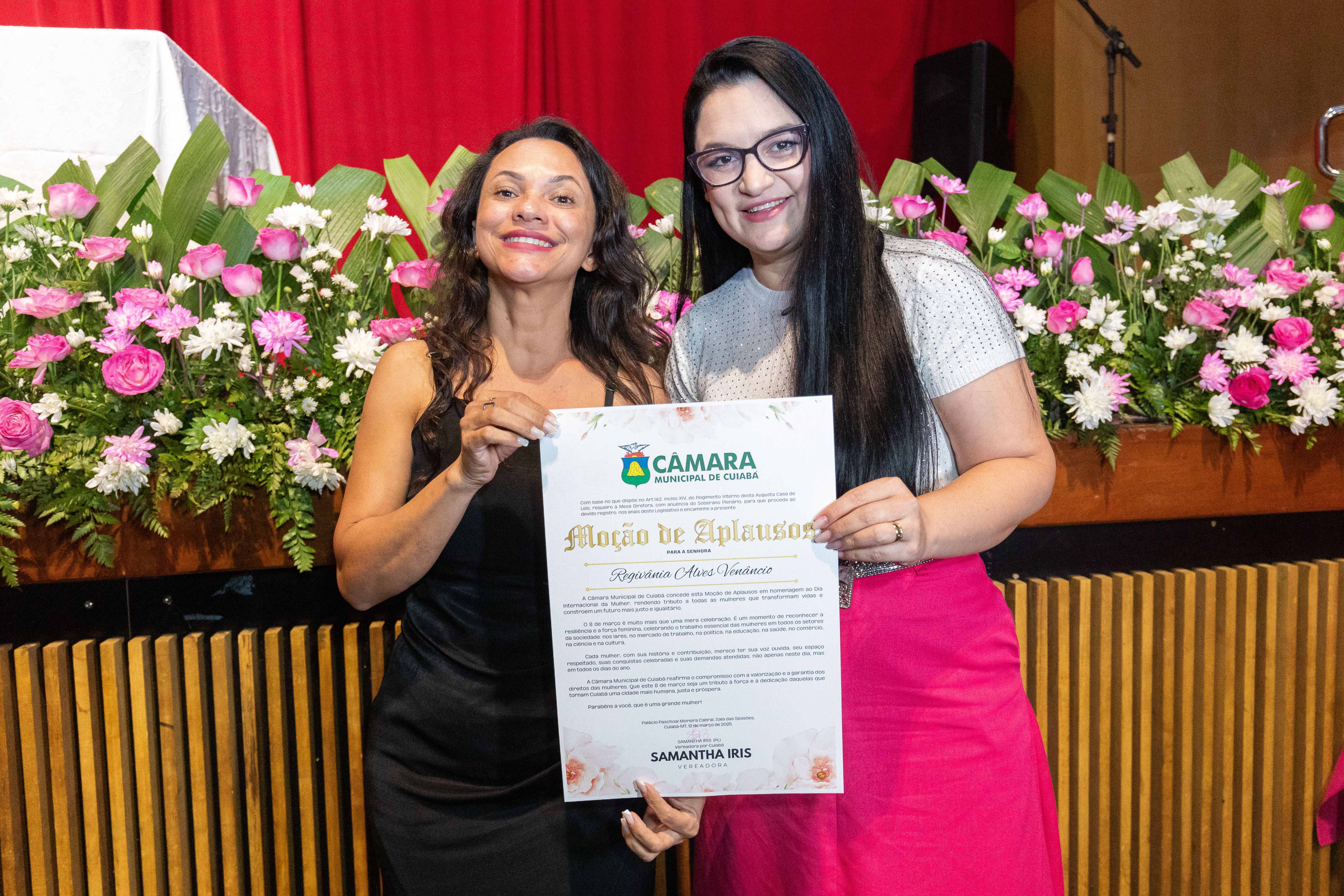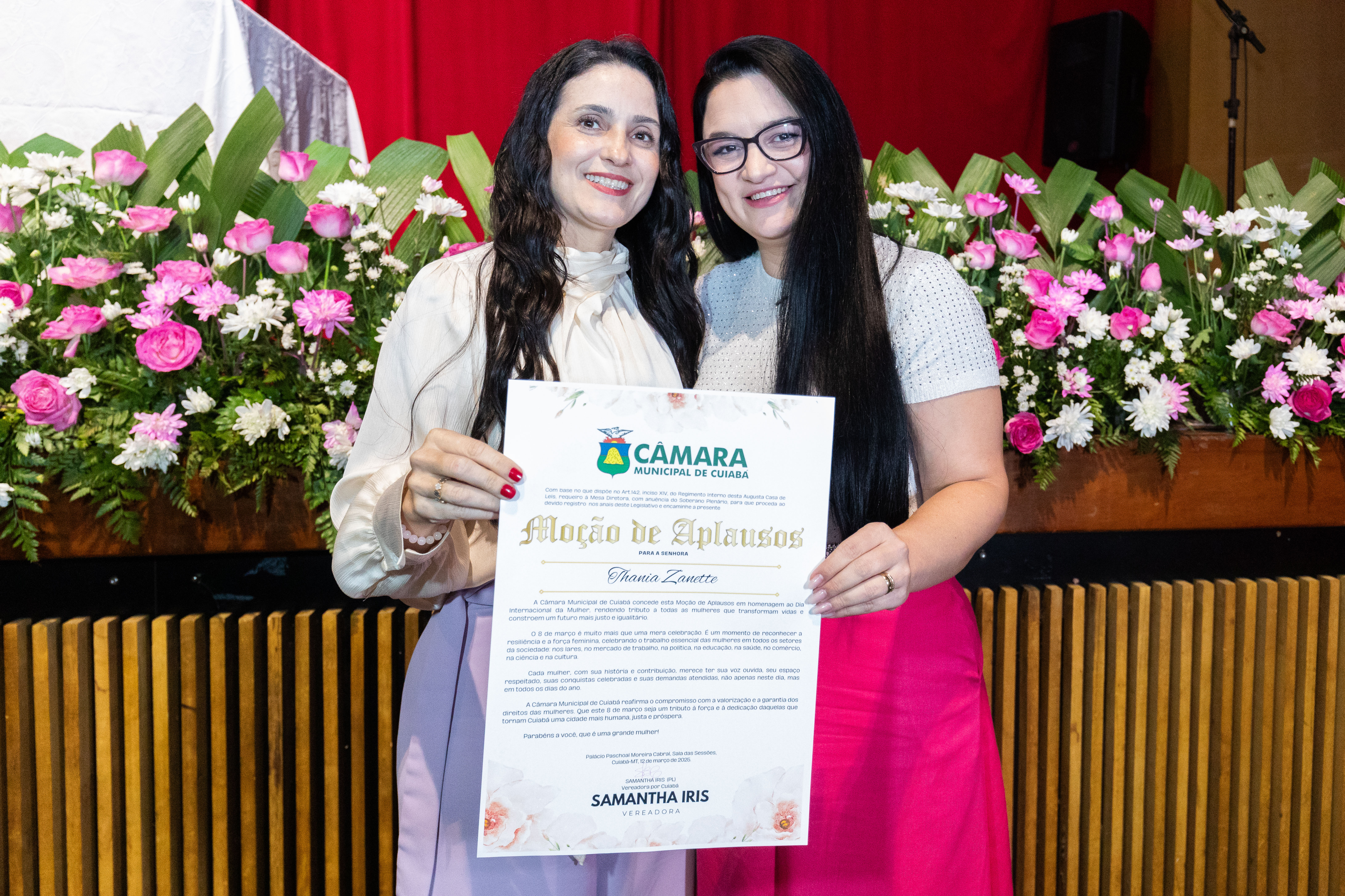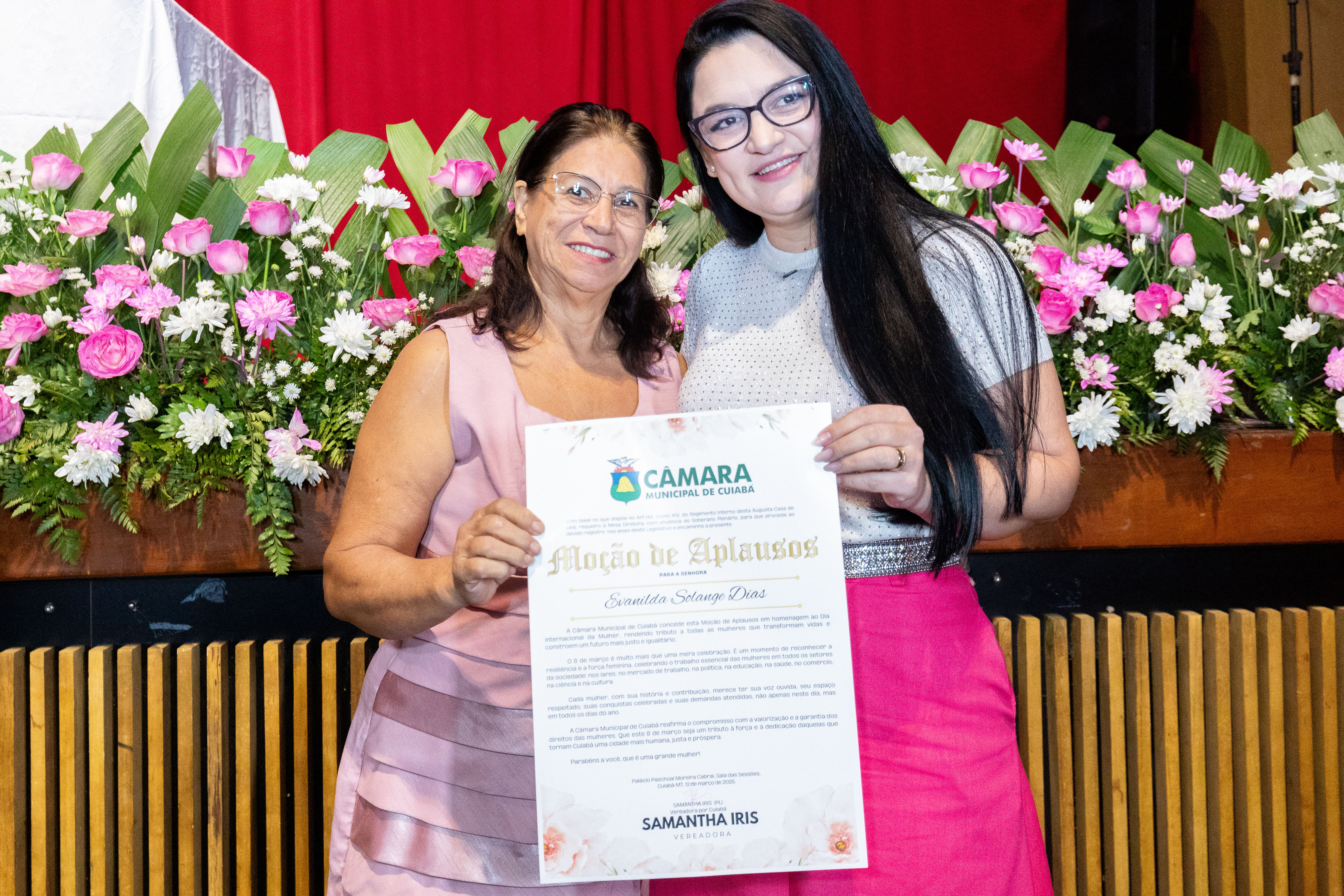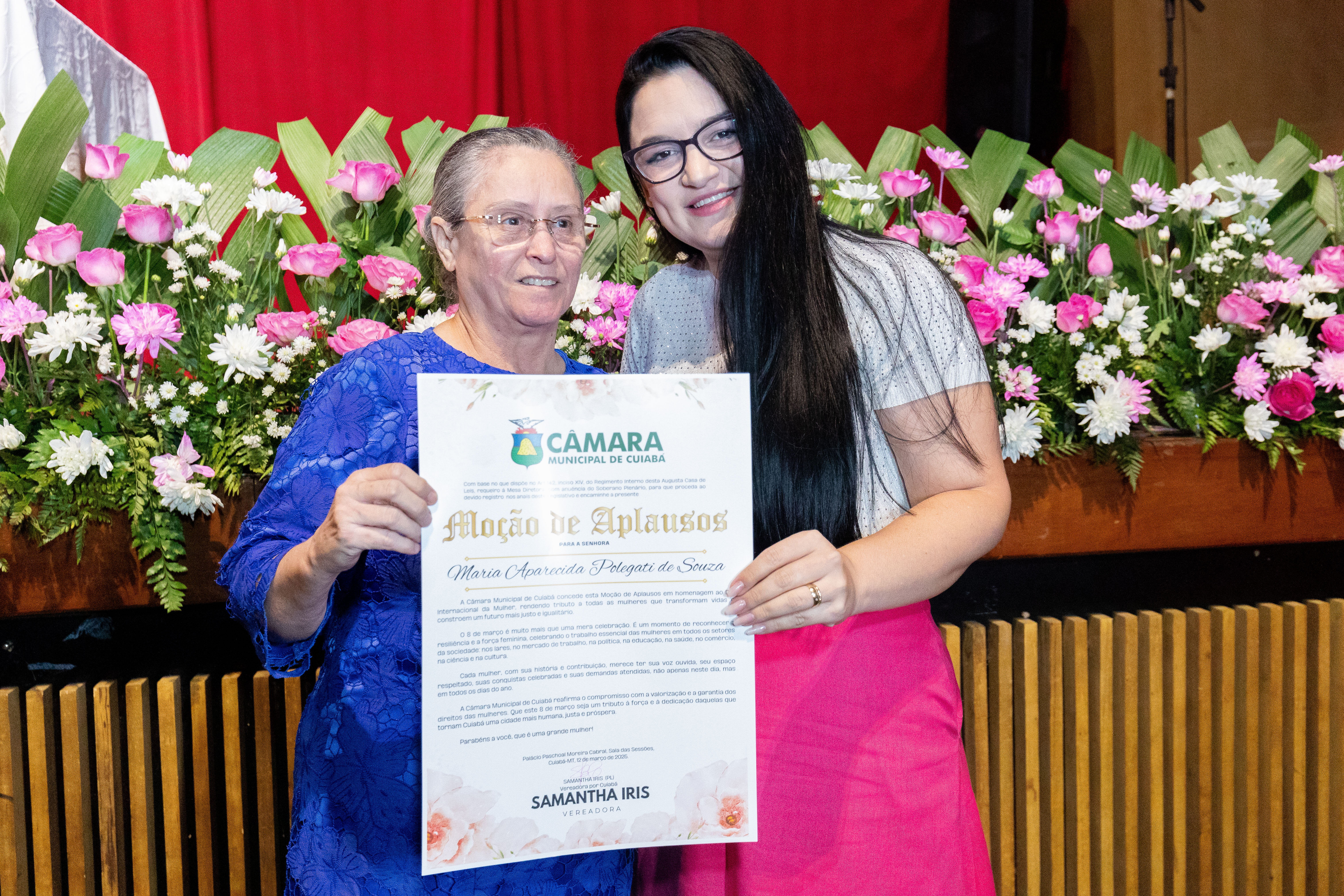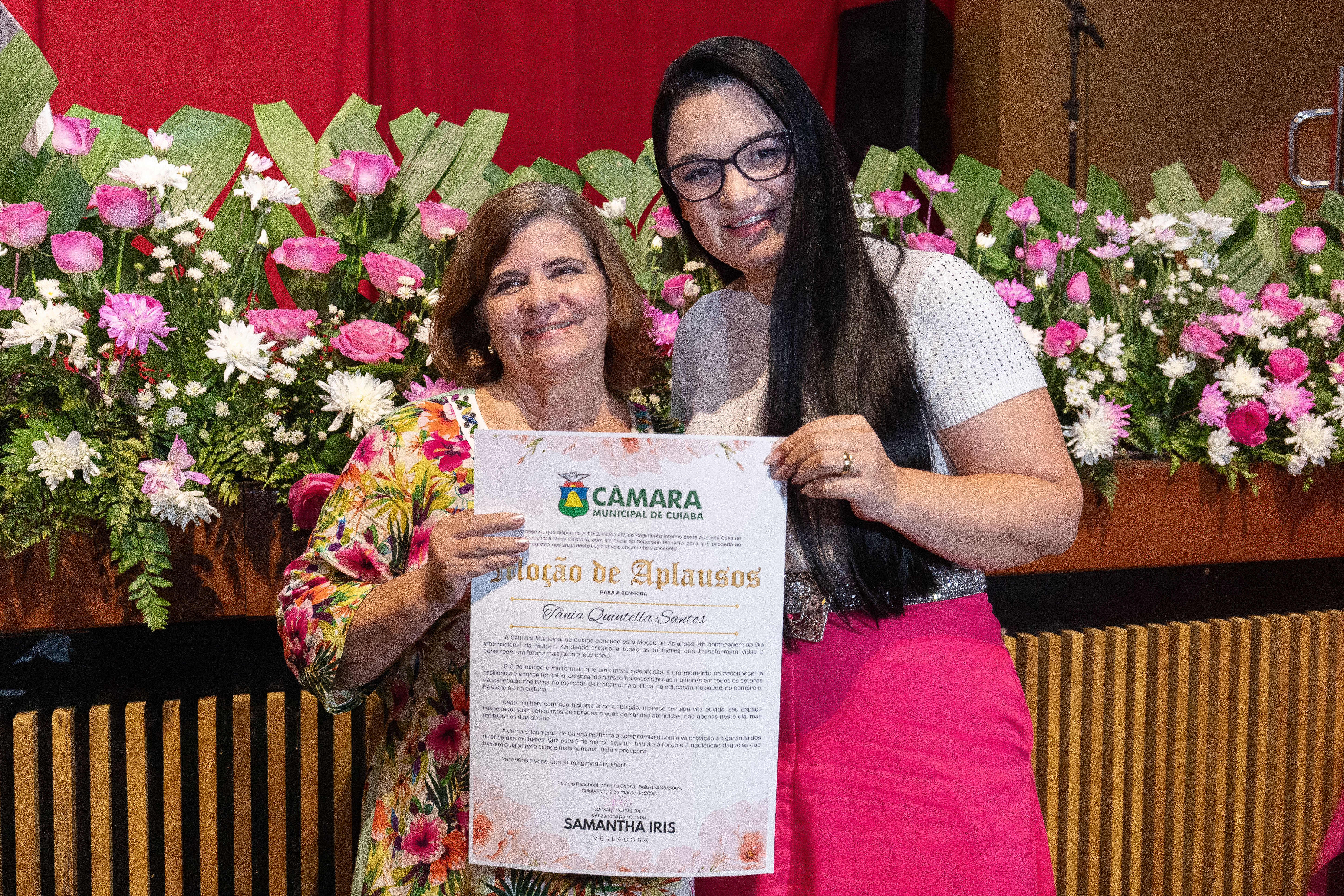 As oito vereadoras da Casa escolheram 40 mulheres para serem homenageadas, considerando tanto personalidades públicas quanto anônimas que contribuem significativamente para a sociedade cuiabana. A vice-prefeita de Cuiabá e secretária de Assistência Social, Vânia Rosa, representou as secretárias do Poder Executivo Municipal.