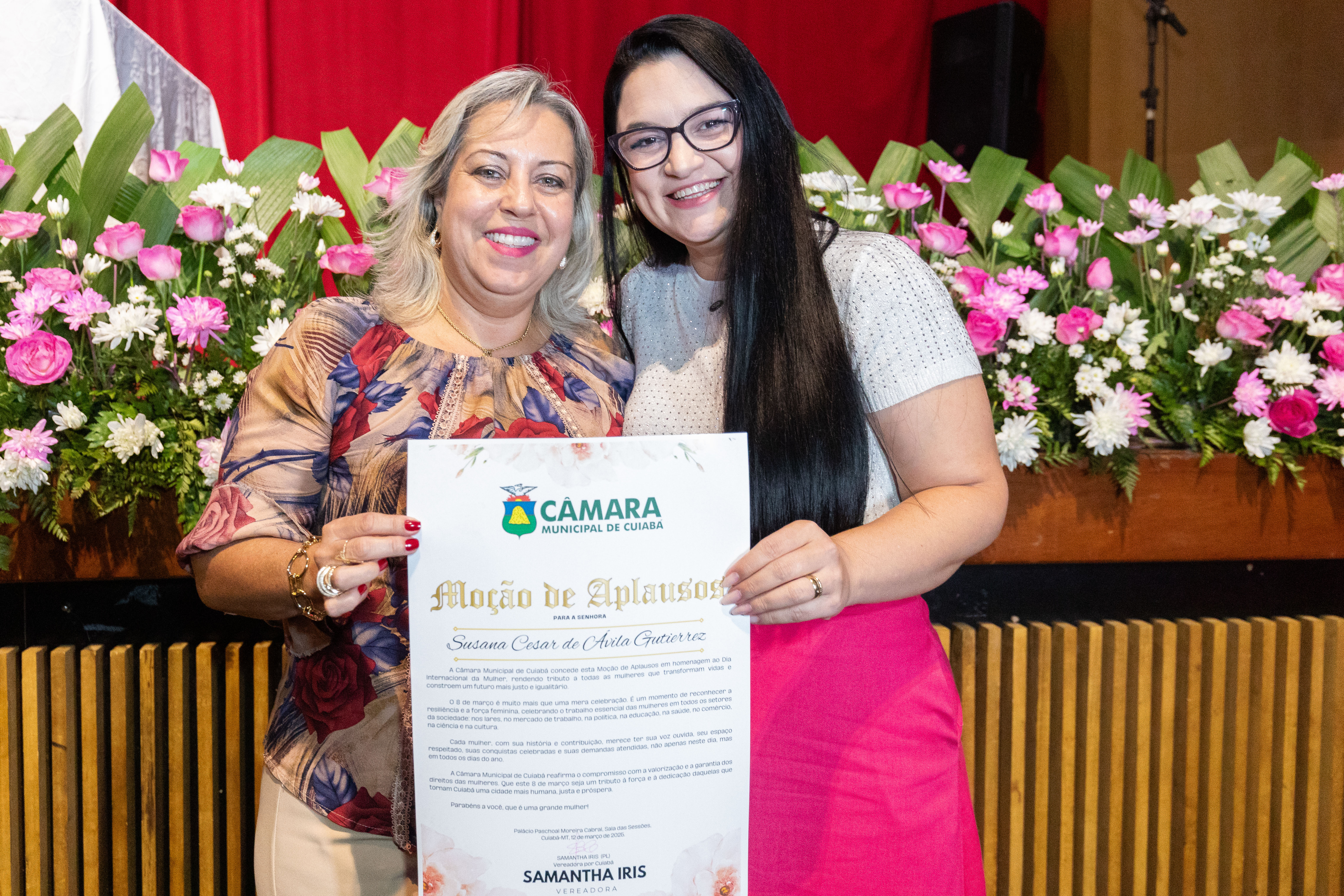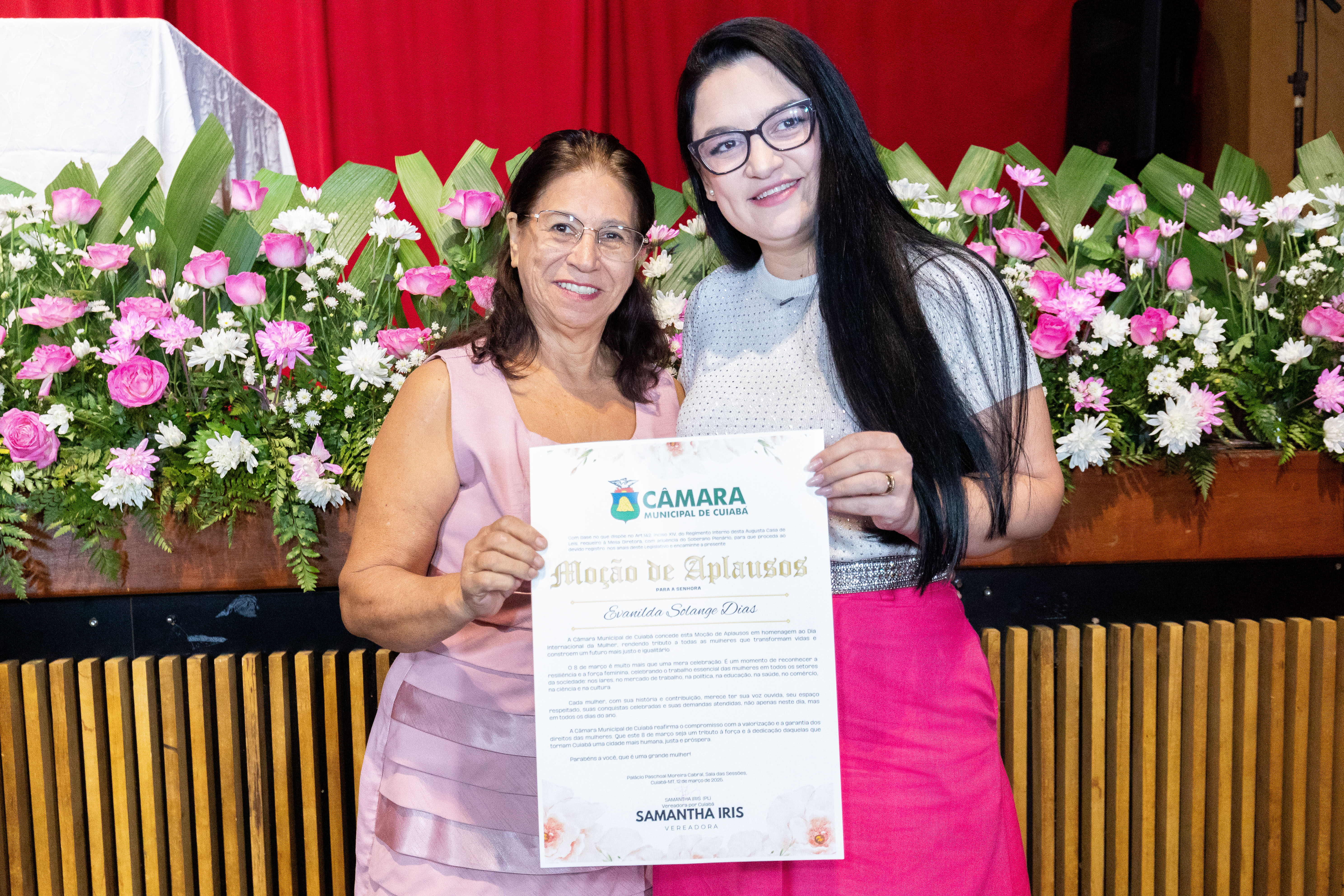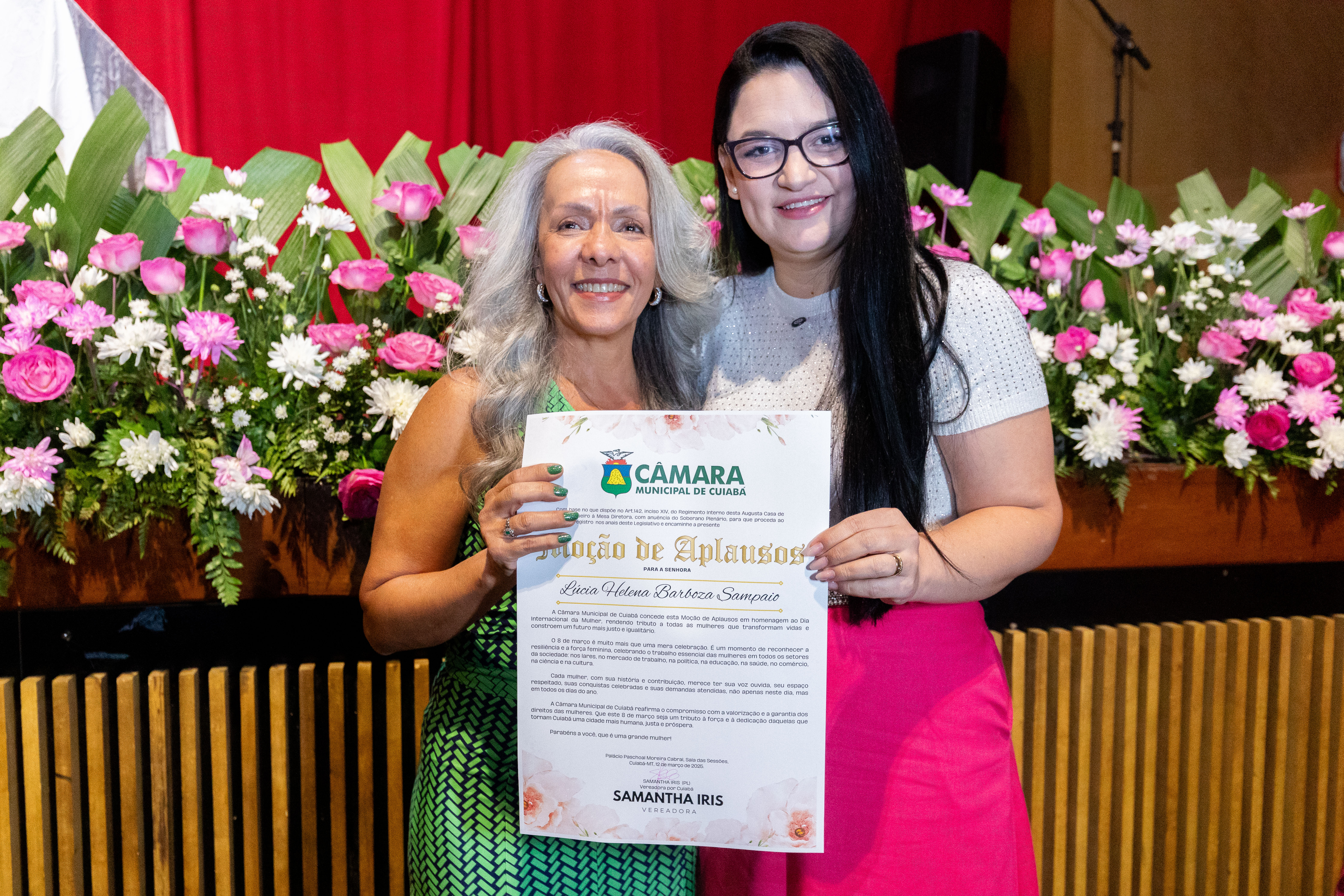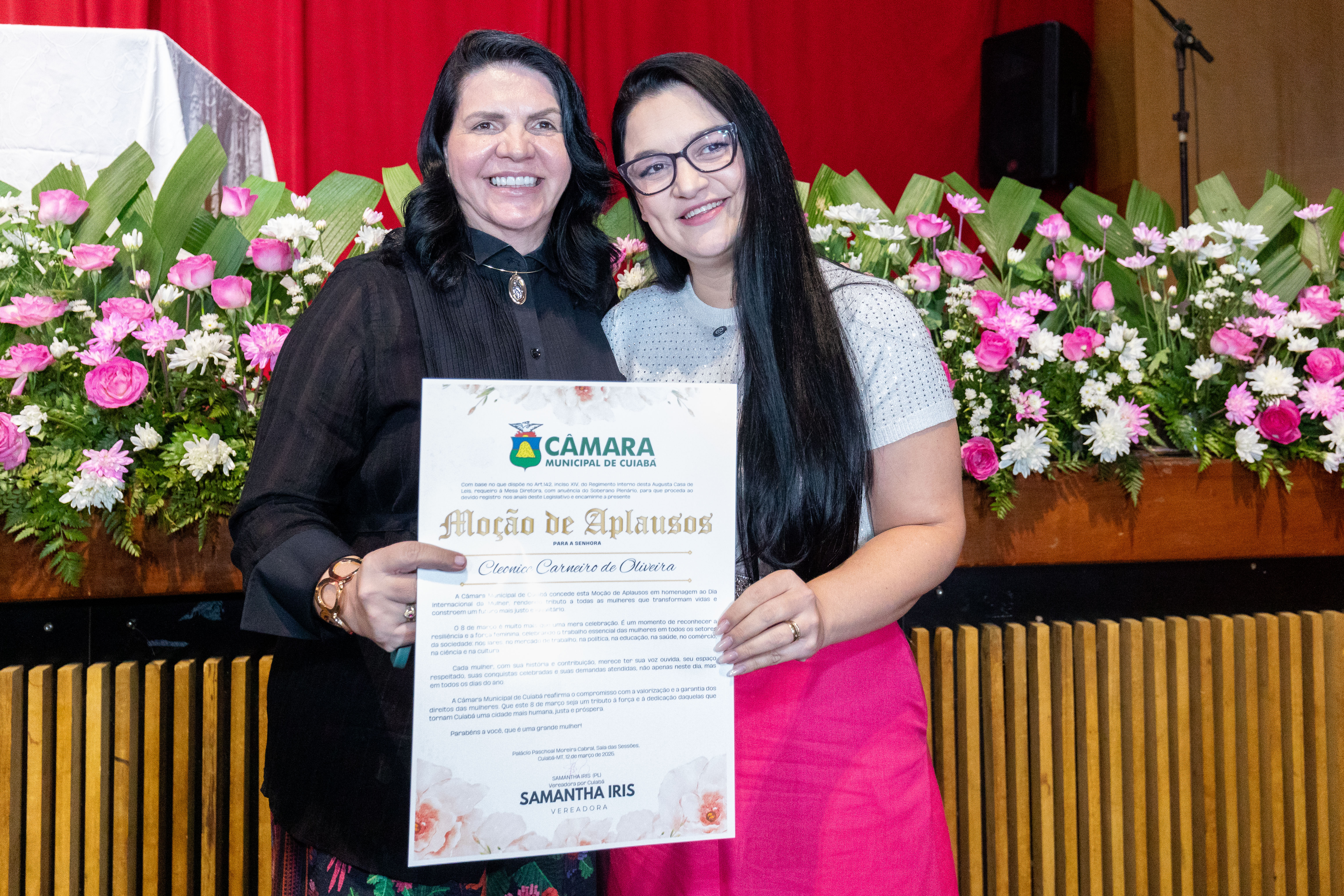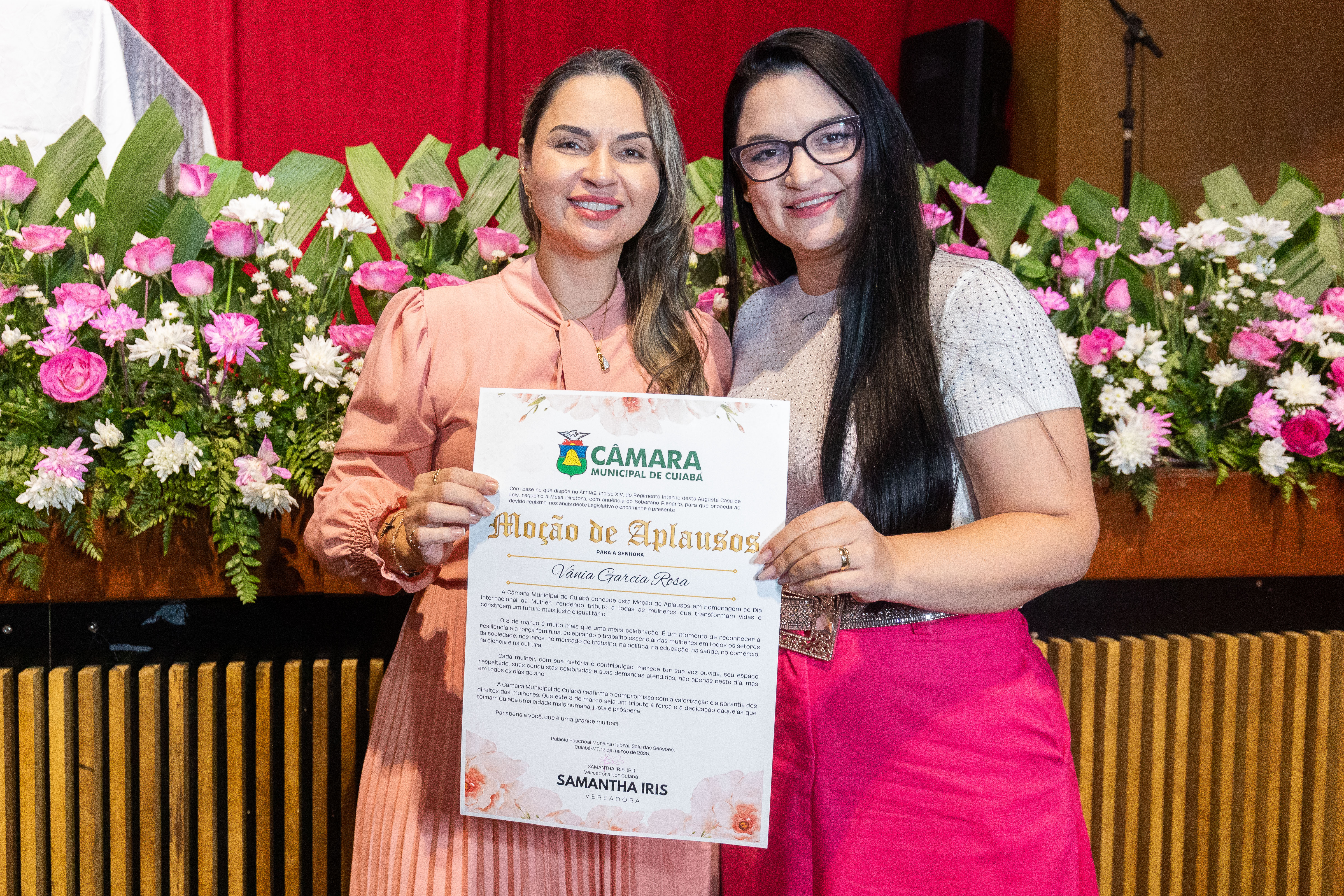 As oito vereadoras da Casa escolheram 40 mulheres para serem homenageadas, considerando tanto personalidades públicas quanto anônimas que contribuem significativamente para a sociedade cuiabana. A vice-prefeita de Cuiabá e secretária de Assistência Social, Vânia Rosa, representou as secretárias do Poder Executivo Municipal.