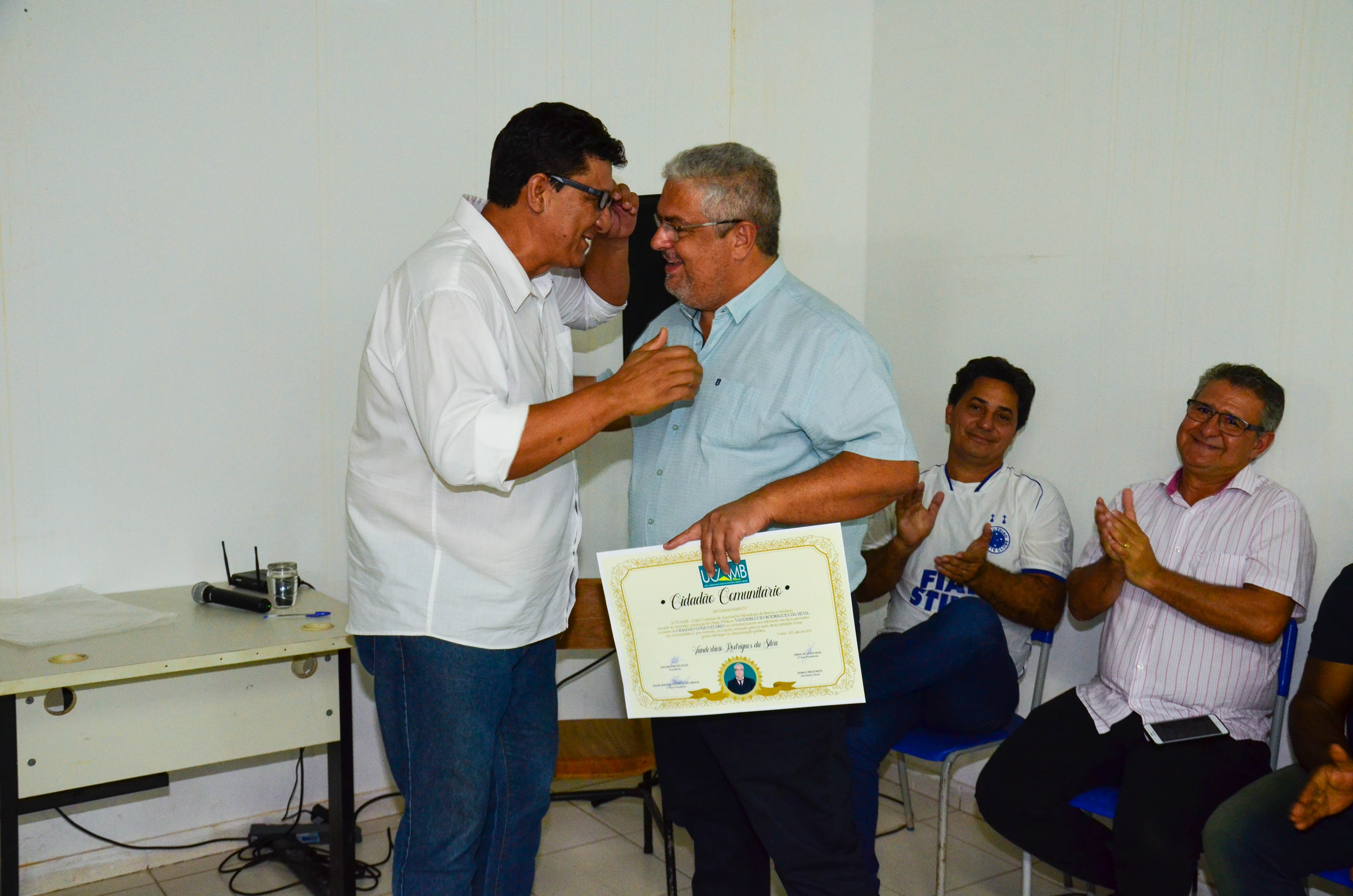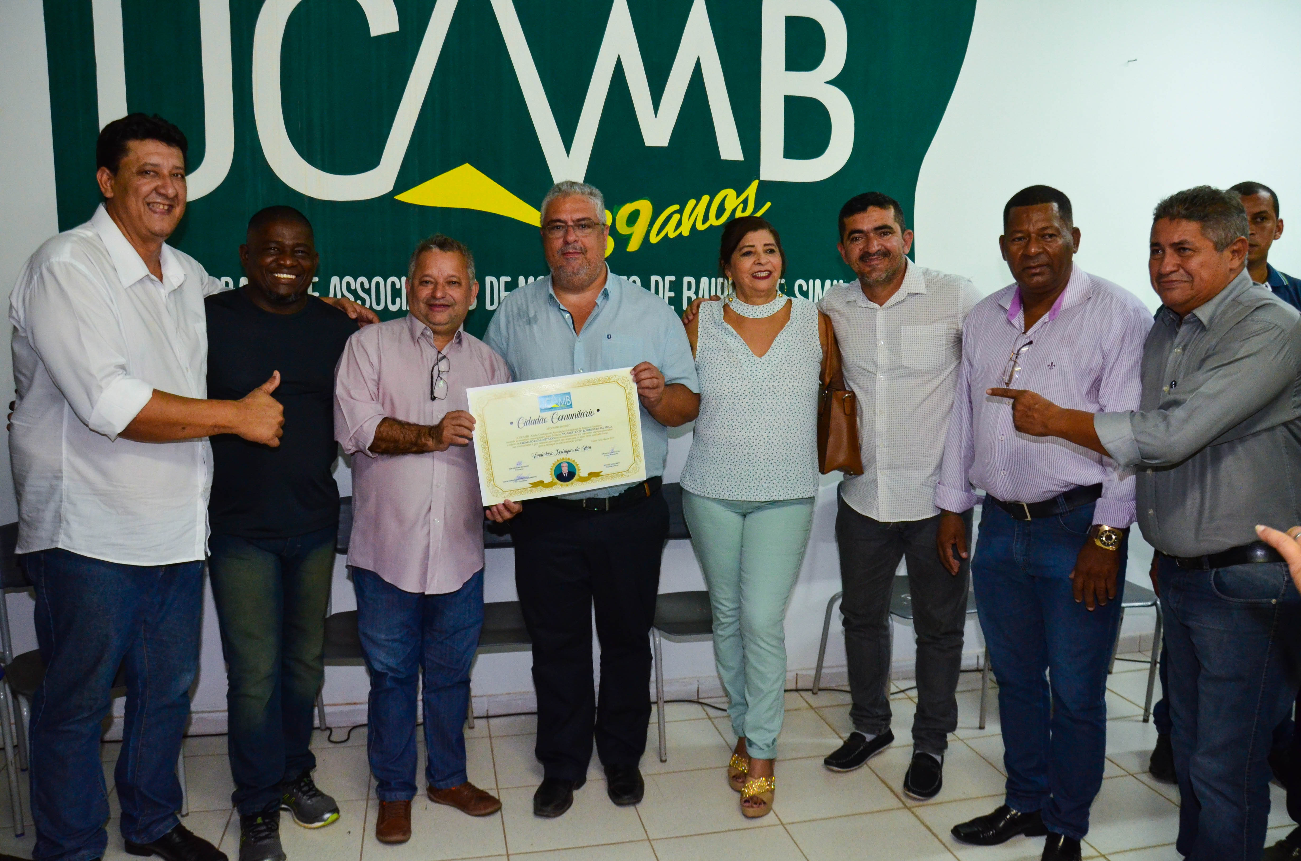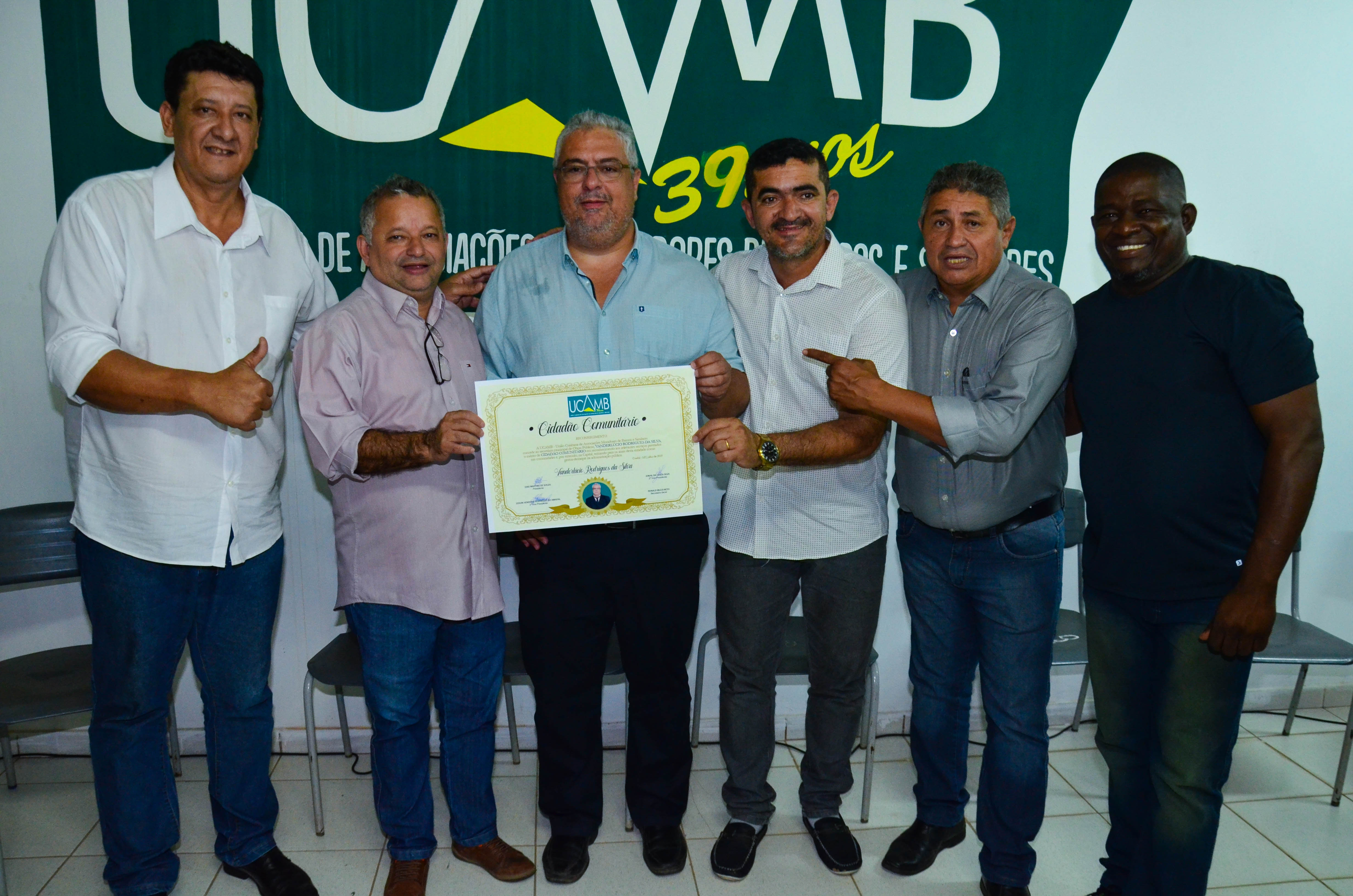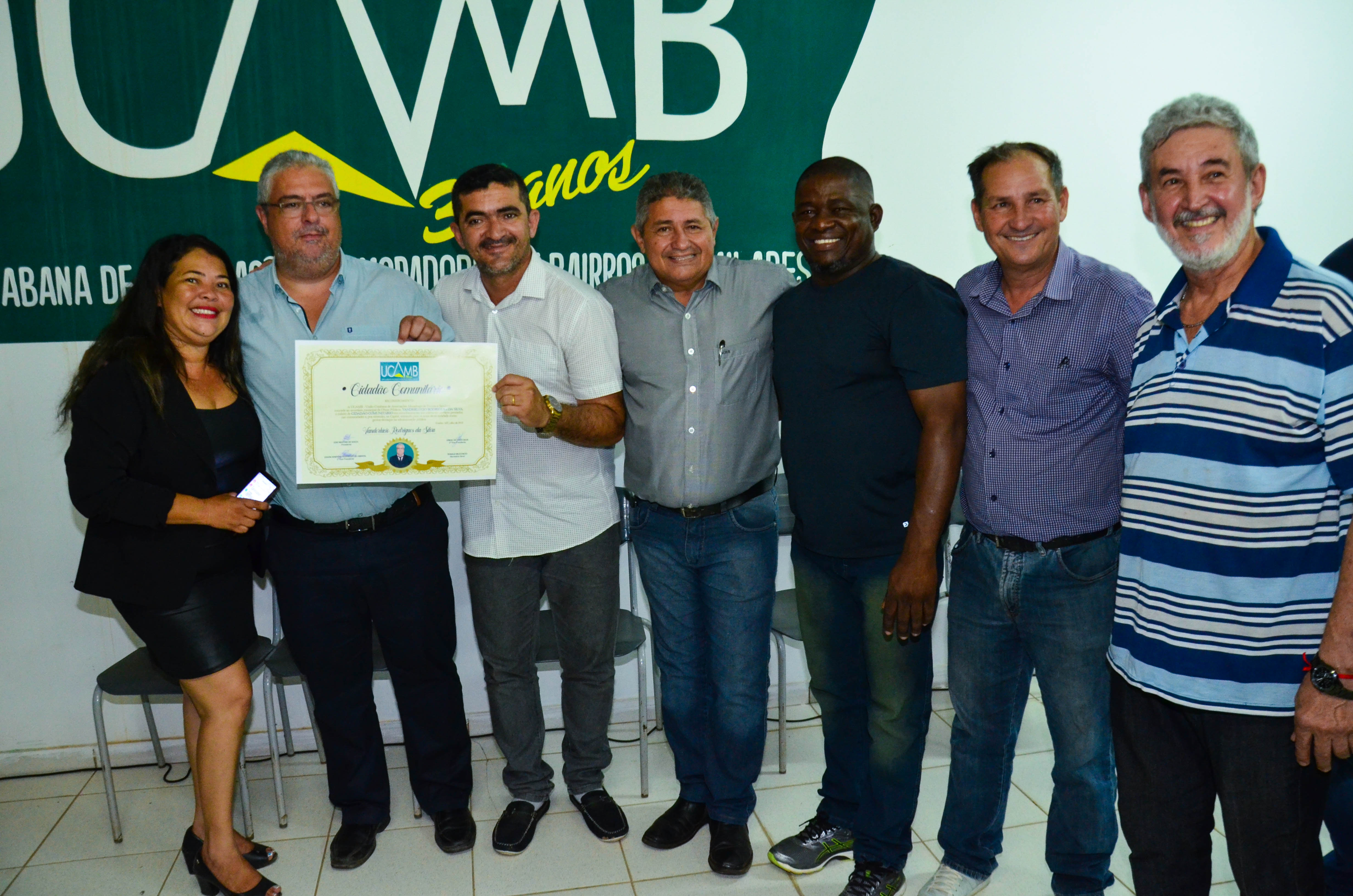 A União Cuiabana de Associações de Moradores de Bairros (Ucamb) concedeu na última sexta-feira (19), o título de Cidadão Comunitário ao secretário municipal de Obras Públicas, Vanderlúcio Rodrigues. A honraria foi cedida ao gestor em reconhecimento aos trabalhos prestados nas comunidades cuiabanas. Também foi adotado como critério pela instituição o atendimento ofertado às lideranças comunitárias e demais cidadãos, que buscam os serviços prestados pela Prefeitura de Cuiabá.