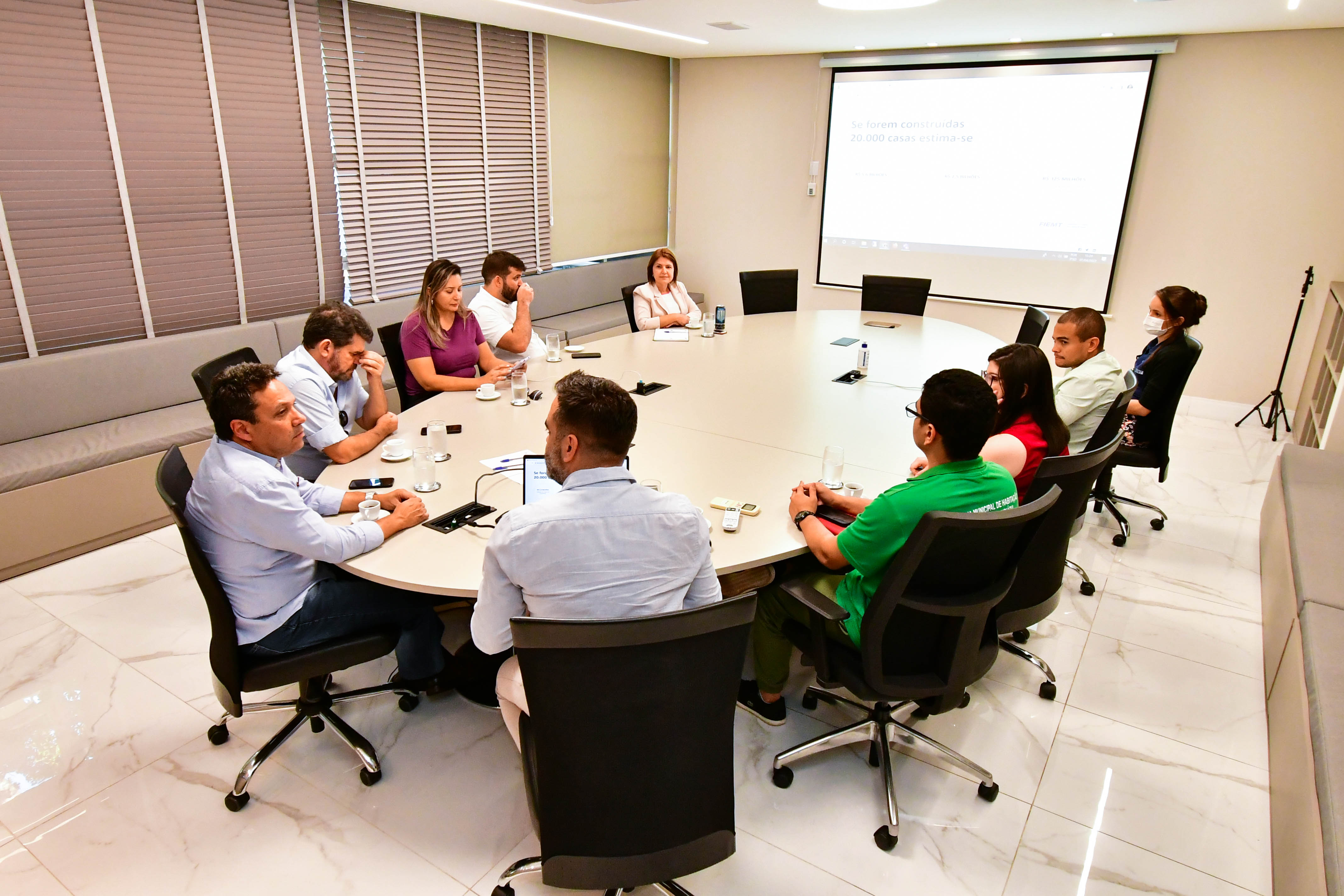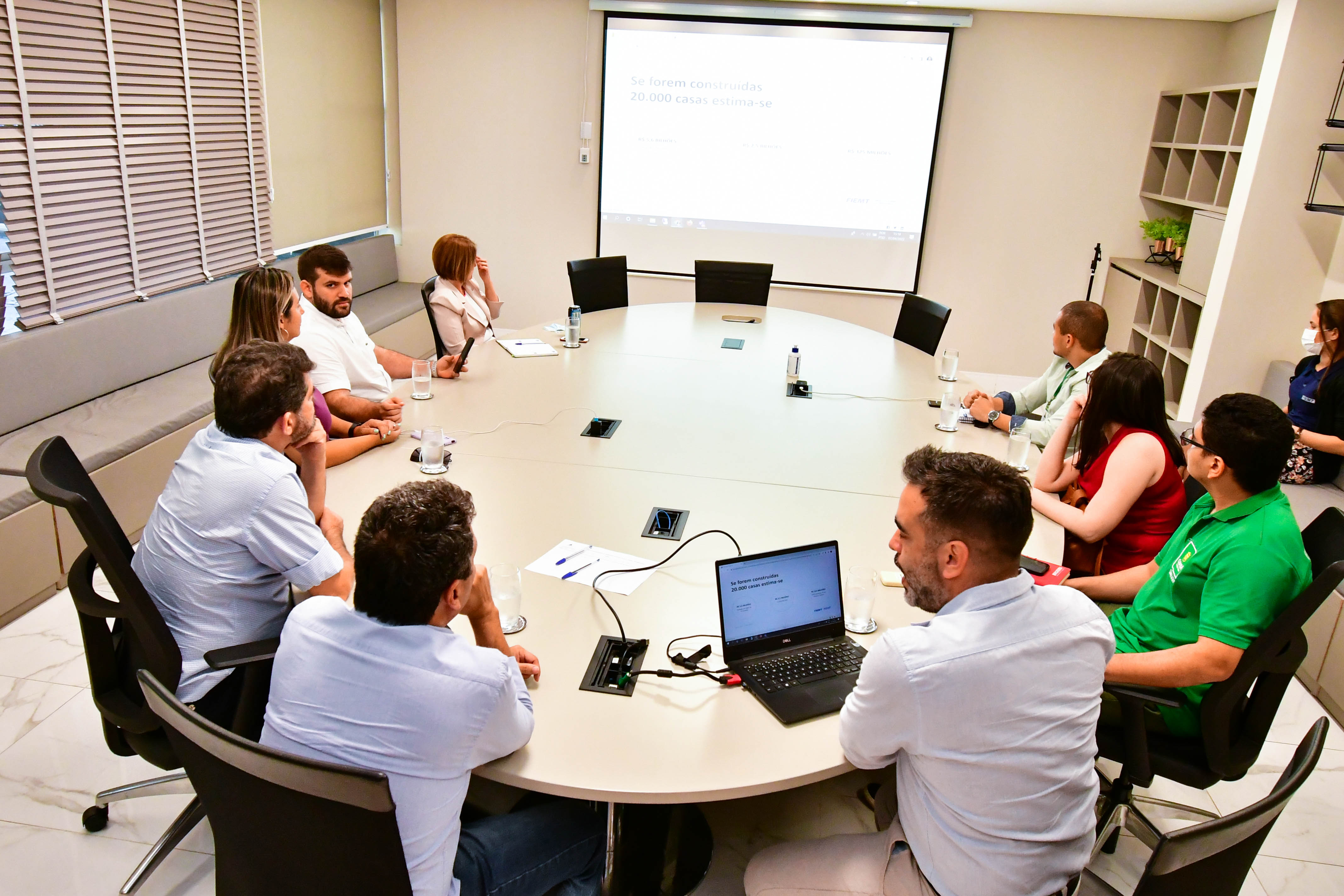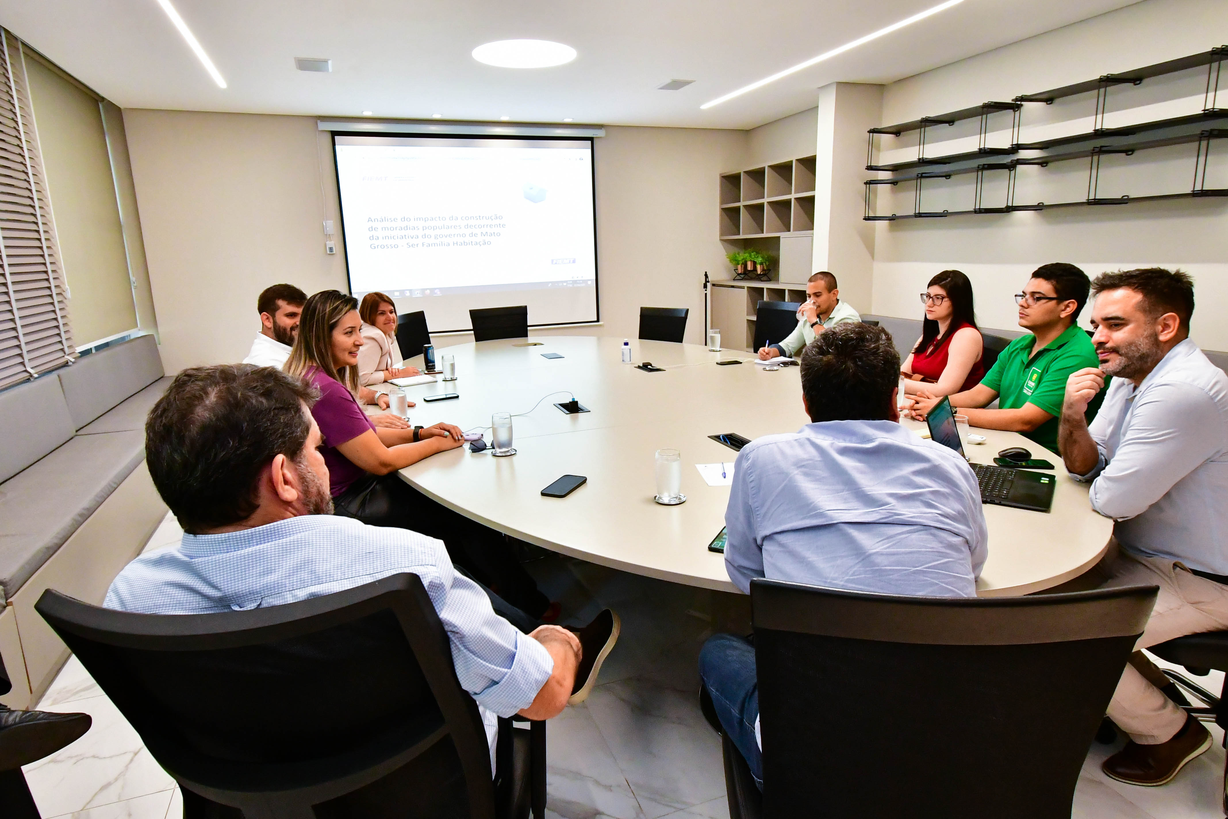 O secretário de Habitação e Regularização Fundiária, Leonardo Leão, e equipe técnica da Pasta conheceram análise do impacto da construção de moradias populares com a apresentação de custo e benefício. Os estudos foram apresentados pelo Sindicato das Indústrias da Construção do Estado de Mato Grosso (Sinduscon) e Federação das Indústrias de Mato Grosso (Fiemt).