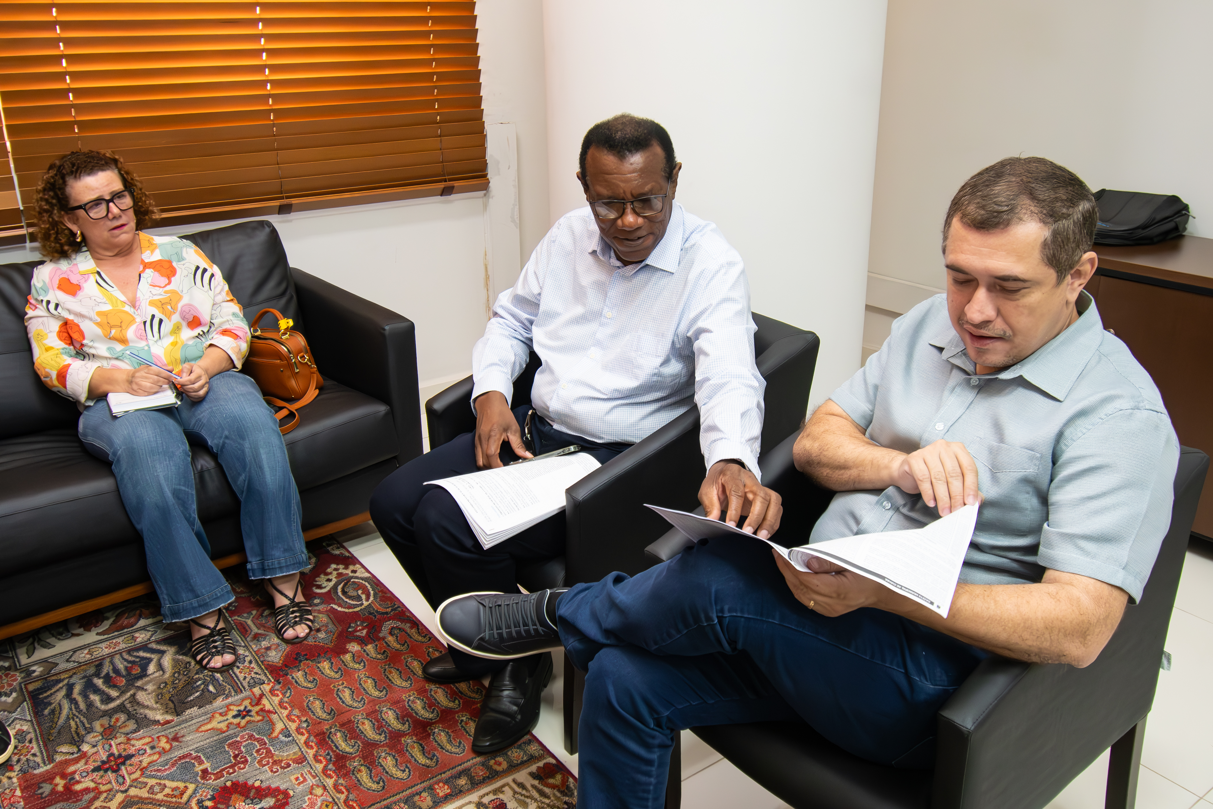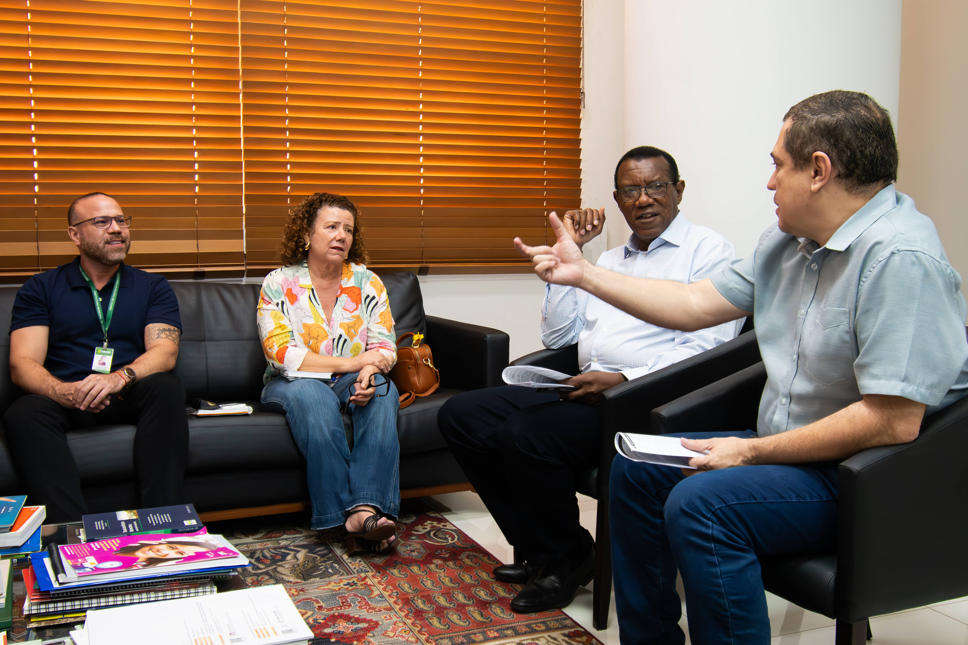 A foto que ilustra a reportagem mostra quatro pessoas conversando numa sala. Todos estão sentados. Na galeria abaixo mostram novas fotos em ambiente de reunião, com mesa e sala ampla e pessoas conversando.